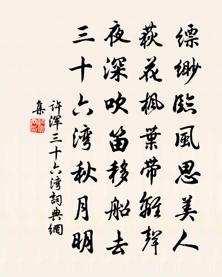 縹緲臨風思美人,荻花楓葉帶離聲。夜深吹笛移船去,三十六灣秋月明。