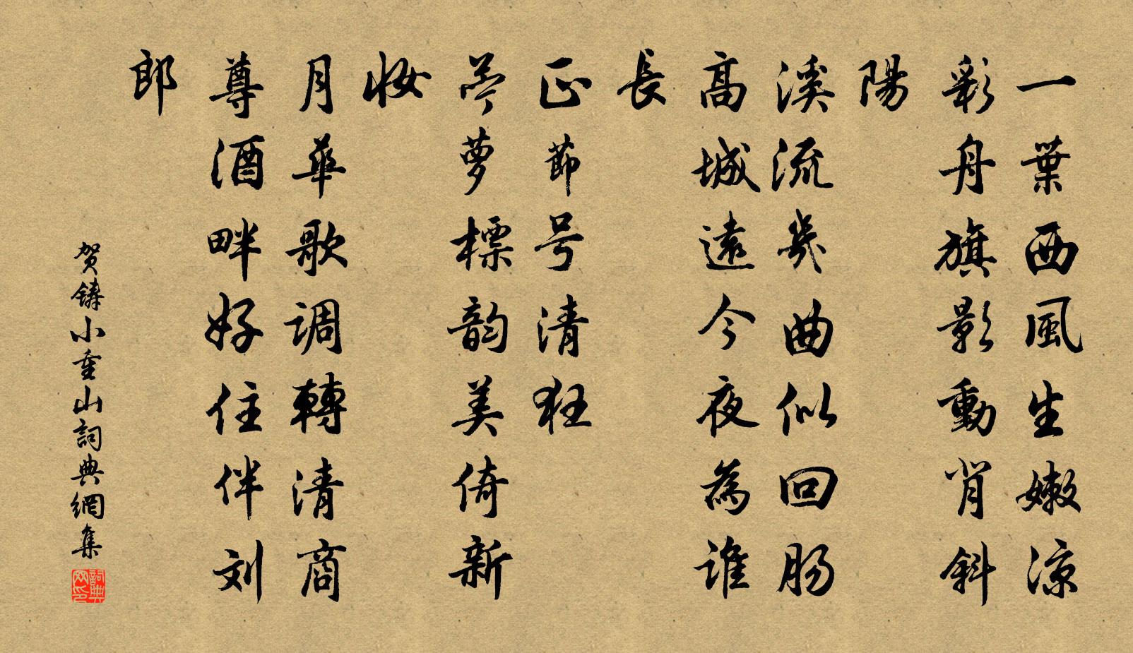 一葉西風生嫩涼。彩舟旗影動,背斜陽。