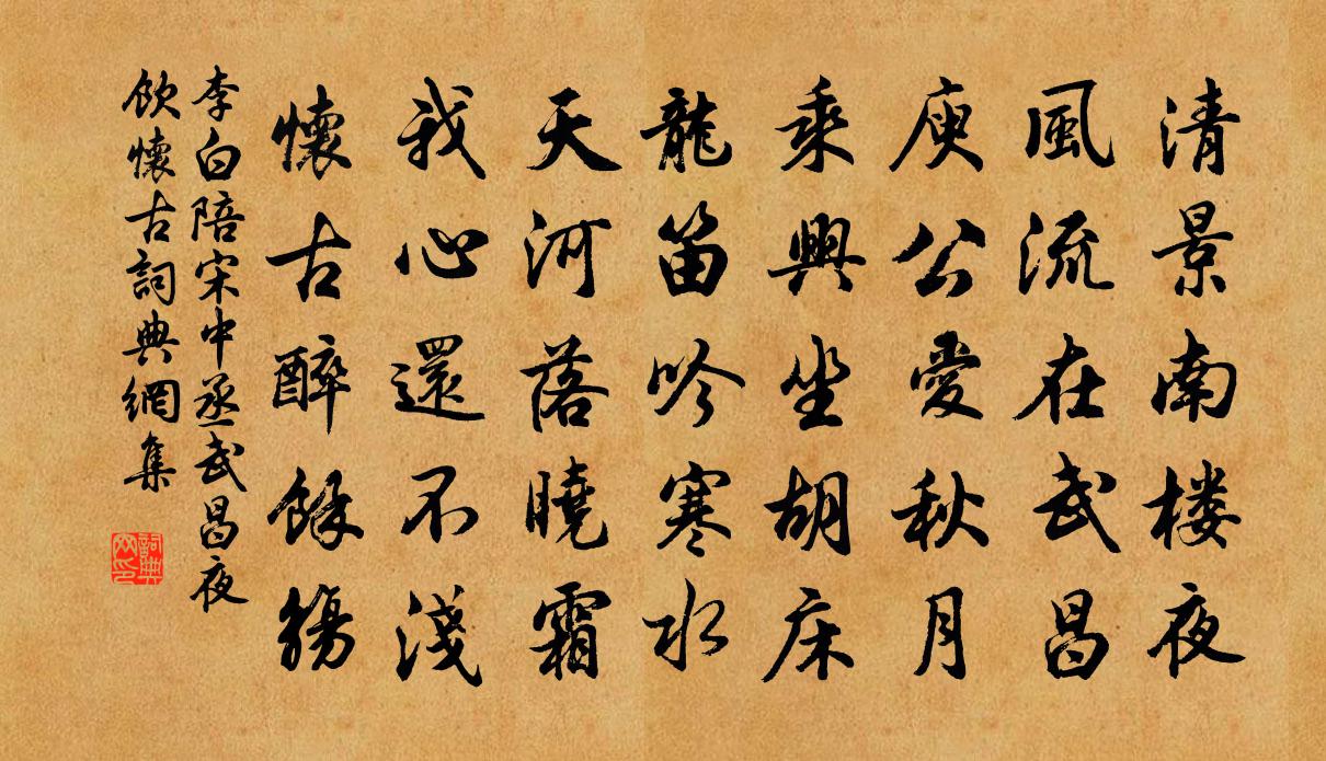 清景南樓夜,風流在武昌。庾公愛秋月,乘興坐胡床。