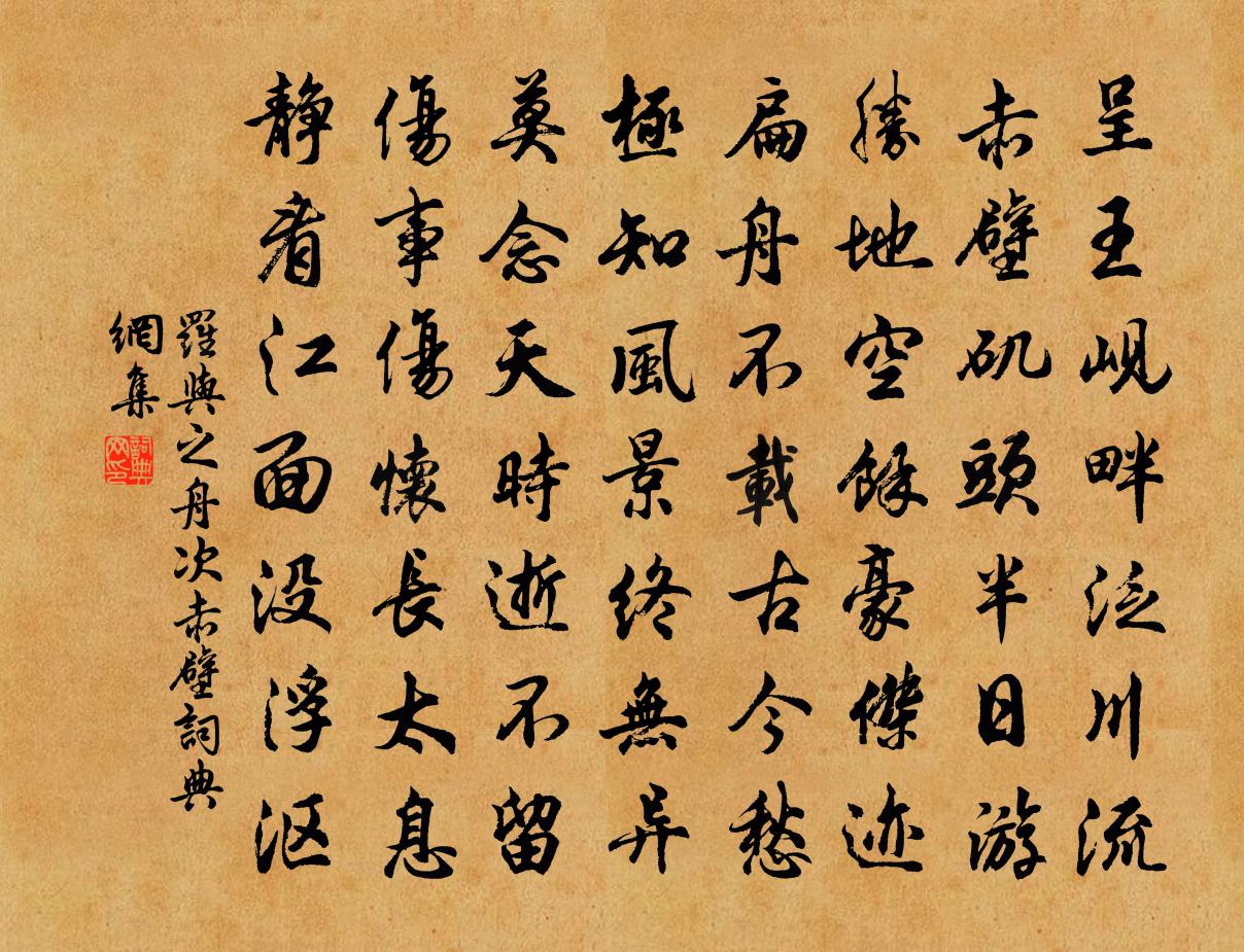 詩詞名句歷史字典書法欣賞書法字典國語詞典說文解字康熙字典古漢語字典標 題 作 者 詩 句 舟次赤壁作者:羅與之 朝代:宋代舟次赤壁原文呈王峴畔泛川流,赤壁磯頭半日游。勝地空餘豪傑跡,扁舟不載古今愁。極知風景終無異,莫念天時逝不留。傷事傷懷長太息,靜看江面沒浮漚。詩詞問答問:舟次赤壁的作者是誰?答:羅與之問:舟次赤壁寫於哪個朝代?答:宋代羅與之舟次赤壁書法欣賞舟次赤壁書法作品詩詞推薦晚行見梅趙蕃〔宋代〕玉立空林一樹梅,向人脈脈似憐才。微波托使為媒去,一被晚風吹又回。虎丘六絕句方丈南窗范成大〔宋代〕鼓板鍾魚徹曉喧,誰雲方外事蕭然。窗間日暮寒煙重,未到齋時我正眠。句李郁〔唐代〕身死為修劉稹表,名高因讓陸洿書。水調歌頭佚名〔宋代〕簫鼓闐街巷,錦繡裹山川。夜來南極,閃閃光射泰階躔。陡覺佳祥翕集,聽得閭閻笑道,蓬島降真仙。香滿琴堂里秋冬之間鄂渚絕市無蟹今日偶得數枚吐沫相濡黃庭堅〔宋代〕勃窣媻跚烝涉波,草泥出沒尚橫戈。也知觳觫元無罪,奈此尊前風味何。棲賢寺李白〔唐代〕知見一何高,拭眼避天位。同觀洗耳人,千古應無愧。秦入司馬光〔宋代〕楚旗獵獵蓋山紅,回首鹹陽一炬空。惆悵秦人虛用意,幾年辛苦得山東。題元注林園李端〔唐代〕謝家門館似山林,碧石青苔滿樹陰。乳鵲眄巢花巷靜,鳴鳩鼓翼竹園深。桔槔轉水兼通藥,方丈留僧共聽琴。獨有和劉後村雜興胡仲弓〔宋代〕近學時妝越樣新,空遺畎畎處忠臣。燭之武老未為老,劉伯龍貧可是貧。造物不應推若輩,江山亦合助詩人。掛冠十二月十九日夜中發鄂渚曉泊漢陽親舊攜酒追送聊為短句黃庭堅〔宋代〕接淅報官府,敢違王事程。宵征江夏縣,睡起漢陽城。鄰里煩追送,杯盤瀉濁清。秪應瘴鄉老,難答故人情。北村吳園雨中賞牡丹主人留飲仇遠〔宋代〕不謂村園見此花,嬌紅數朵眩晴霞。可憐國色天香種,竟落田夫野老家。略具杯盤供筍蕨,已拚杖屨污泥沙。莫愁以二貓送張子賢李璜〔宋代〕家家入雪白於霜,更有欹鞍似鬧裝。便請爐邊叉手坐,從他鼠子自跳梁。絕句張伯端〔宋代〕鑒形閉氣思神法,初出艱難後坦途。倏忽雖能游萬國,奈何棄舊卻移居。頌古十六首釋心月〔宋代〕賓中主,主中賓。在窟獅子,互換嚬呻,相識如今能幾人。吉祥寺賞牡丹蘇軾〔宋代〕人老簪花不自羞,花應羞上老人頭。醉歸扶路人應笑,十里珠簾半上鉤。洗藥源魯宗道〔宋代〕採得千年藥,臨流淨洗藏。至今源里水,猶帶舊時香。論語首序陳普〔宋代〕東魯氣勢已崔嵬,彼婦無端汶上來。天地未開堯舜運,子西晏子亦桓{鬼隹}。贈山庵高士邵棠〔宋代〕山帶寒流無俗聲,通樵一徑鎖清陰。幽人飽臥西風裡,並午醒來黃葉深。初到績溪視事三日出城南謁二祠游石照偶成四蘇轍〔宋代〕行盡清溪到碧峰,陰崖翠壁書杉松。故留石照邀行客,上徹青山最後重。雨開石照正新磨,鳥度猿攀野客過。忽見衛卿叔自青暘寄詩一卷以飲酒果核殽味烹茶齋葛立方〔宋代〕自嘆杖頭無孔方,頭上貂蟬乏金黃。醉鄉遙遙道路長,傲窗新釀汲新涼。指點銀瓶難索嘗,空教金縷唱秋娘。遙想名句推薦朱門酒肉臭,路有凍死骨。杜甫《自京赴奉先縣詠懷五百字 / 自京赴奉先詠懷五百字》 綠池落盡紅蕖卻,荷葉猶開最小錢。楊萬里《秋涼晚步》 露清枕簟藕花香,恨悠揚。顧敻《虞美人·觸簾風送景陽鍾》 君子而詐善,無異小人之肆惡;君子而改節,不若小人之自新。洪應明《菜根譚·概論》 歷冰霜、不變好風姿,溫如玉。陸容《滿江紅·詠竹》 佇立傷神。無奈輕寒著摸人。朱淑真《減字木蘭花·春怨》 我歌君起舞,潦倒略相同。陳師道《除夜對酒贈少章》 是以其財不足以待凶飢、振孤寡,故國貧而民難治也。墨子《墨子·06章 辭過》 若似月輪終皎潔,不辭冰雪為卿熱。納蘭性德《蝶戀花·辛苦最憐天上月》 應憐屐齒印蒼苔,小扣柴扉久不開。葉紹翁《遊園不值》