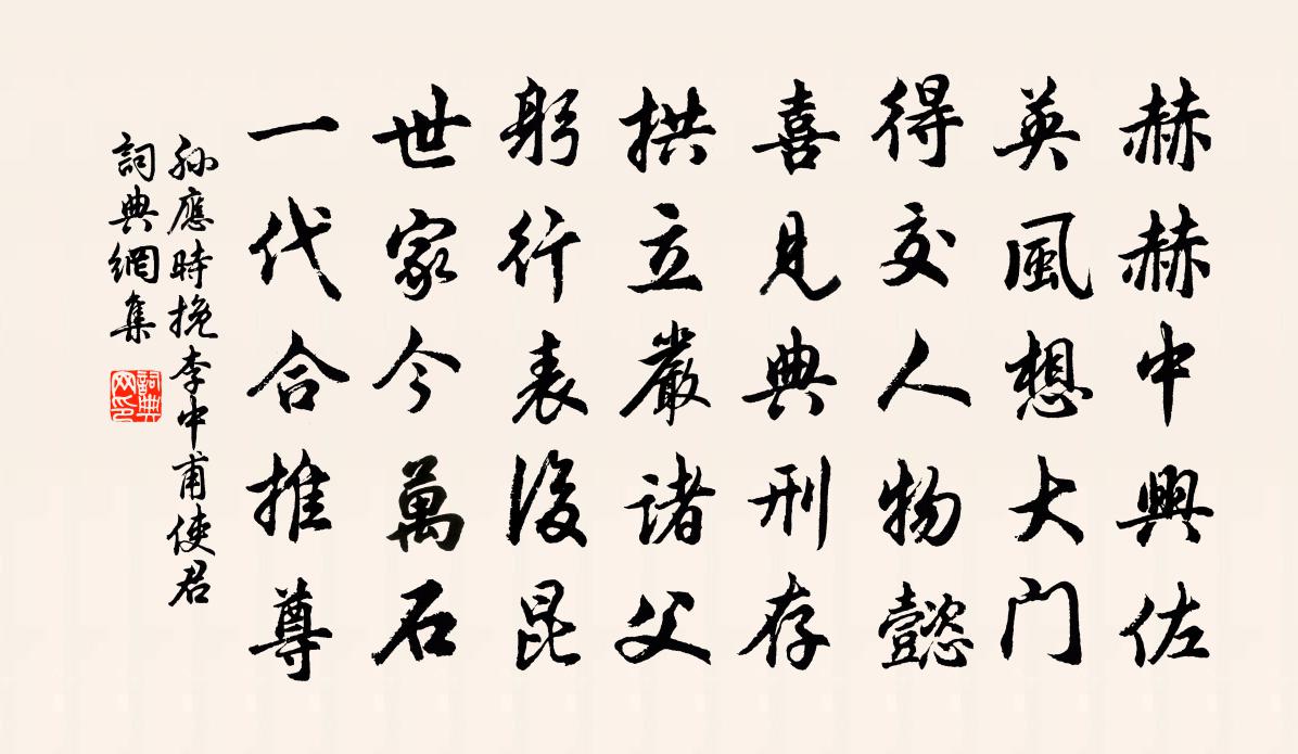 詩詞名句歷史字典書法欣賞書法字典國語詞典說文解字康熙字典古漢語字典標 題 作 者 詩 句 挽李中甫使君作者:孫應時 朝代:宋代挽李中甫使君原文赫赫中興佐,英風想大門。得交人物懿,喜見典刑存。拱立嚴諸父,躬行表後昆。世家今萬石,一代合推尊。詩詞問答問:挽李中甫使君的作者是誰?答:孫應時問:挽李中甫使君寫於哪個朝代?答:宋代孫應時挽李中甫使君書法欣賞挽李中甫使君書法作品詩詞推薦哭女樊元稹〔唐代〕秋天淨綠月分明,何事巴猿不賸鳴。應是一聲腸斷去,不容啼到第三聲。【雙調】湘妃怨_武夷山中落張可久〔元代〕武夷山中落花流水出桃源,暖翠晴雲滿藥田。流金古像開香殿,步虛聲未遠,鶴飛來認得神仙。傍草漫山徑,幽花讀金{左金右卑}集釋行海〔宋代〕白水青山總上心,可憐月色夜沉沉。平生到處無人到,說向人知路轉深。和韋潘前輩七月十二日夜泊池州城下先寄上李使君李商隱〔唐代〕桂含爽氣三秋首,蓂吐中旬二葉新。正是澄江如練處,玄暉應喜見詩人。病起掇黃花數本焚香清坐二首錢時〔宋代〕秋風鵰鶚刷天涯,有底男兒只戀家。病後暫收文字眼,焚香清坐看黃花。早下江寧錢起〔唐代〕暮天微雨散,涼吹片帆輕。雲物高秋節,山川孤客情。霜蘋留楚水,寒雁別吳城。宿浦有歸夢,愁猿莫夜鳴。過韓許州石淙莊蘇轍〔宋代〕飛泉來無窮,發自嵩嶺背。賓士兩山間,偶與亂石會。傾流勢摧毀,泥土久崩潰。堅姿未消釋,截嶭儼相對。居高樓望月納蘭性德〔清代〕戚戚復戚戚,高樓月如雪。二八正嬋娟,月明翡翠鈿。由來工織錦,生小倚朱弦。朱弦豈解愁,素手似雲浮。一聲初夏丘葵〔宋代〕當春一脈生生意,直到如今始潔齊。千樹向榮知靖節,一庭交翠見濂溪。柳塘花塢心應懶,葵扇櫟笙手自攜。猶自秋日郊居郭秉哲〔宋代〕一葉驚初下,煩襟喜復清。雲邊開岫色,風外送漲聲。菊引陶潛興,蓴牽張翰情。迎眸秋色遠,頓覺杖藜輕。江南道中王之道〔宋代〕江回山崦兩三家,招颭東風酒旆斜。羸馬送曛行自急,峭寒欺客晚還加。日邊雁足應傳信,竹外梅梢合放花。指點題李斯傳韋莊〔唐代〕蜀魄湘魂萬古悲,未悲秦相死秦時。臨刑莫恨倉中鼠,上蔡東門去自遲。棲遲釋文珦〔宋代〕棲遲嚴壑間,所尚不同俗。窗下列芳蘭,門前藝修竹。崖屋夏中寒,石田秋後熟。委質於自然,陶然意常足。恭和御製賜進士韻馬廷鸞〔宋代〕熙朝道化聿求成,龍袞天臨策俊英。清問詳延敷迺聽,嘉猶入告底於行。堯章焜燿欣承渥,湯訓丁寧戒近名。聖主頌證道歌證道歌釋印肅〔宋代〕誰無念,誰無生,過現未來心不停。一念不生地我所,即是彌陀親老兄。道室雜詠陸游〔宋代〕莫怪先生閱事多,人間何處不經過。天山八月霜枯草,陽穀三更日浴波。酒熟春風歸掌握,丹成神物共誰何。散人滿庭芳方千里〔宋代〕山色澄秋,水光融日,浮萍飄碎還圓。數行征雁,分破白鷗煙,高下回塘暗谷,寫幽思、終日濺濺。閒凝望,殘霞閔子騫金朋說〔宋代〕名稱大才世這難,襖絮蘆花豈耐寒。寧使一身甘凍死,肯教三子受衣單。滿庭芳(泛梅)葛立方〔宋代〕庾信何愁,休文何瘦,范叔一見何寒。梅花酷似,索笑畫檐看。便肯嫣然一笑,疏籬上、玉臉冰顏。須勤賞,莫教西江月向子諲〔宋代〕紅退小園桃杏,綠生芳草池塘。誰教芍藥殿春光。不似酴醿官樣。翠蓋更蒙珠幰,薰爐剩熨沈香。娟娟風露滿衣賞名句推薦日長睡起無情思,閒看兒童捉柳花。楊萬里《閒居初夏午睡起》 朝屯雪山下,暮宿青海旁。韋元甫《木蘭歌》 大廈將顛,非一木所支也。王通《中說·卷三·事君篇》 父兮生我,母兮鞠我。佚名《蓼莪》 強本而節用,則天不能貧。荀子《荀子·天論》 暗相思,無處說,惆悵夜來煙月。韋莊《應天長·別來半歲音書絕》 舉頭忽見衡陽雁。千聲萬字情何限。陳達叟《菩薩蠻·舉頭忽見衡陽雁》 一粥一飯,當思來處不易;半絲半縷,恆念物力維艱。朱柏廬《朱子家訓·全文》 風煙俱淨,天山共色。吳均《與朱元思書》 流年莫虛擲,華發不相容。方乾《送從兄郜 / 韋郜 / 途中別孫璐》