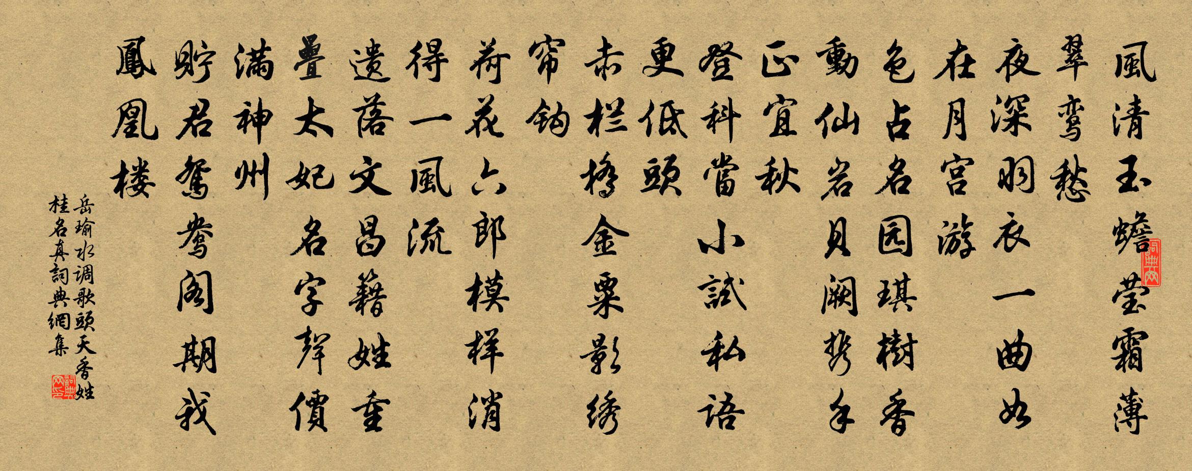 詩詞名句歷史字典書法欣賞書法字典國語詞典說文解字康熙字典古漢語字典標 題 作 者 詩 句 水調歌頭 天香姓桂名真作者:岳瑜 朝代:元代水調歌頭 天香姓桂名真原文風清玉蟾瑩,霜薄翠鸞愁。夜深羽衣一曲,如在月宮游。色占名園琪樹,香動仙岩貝闕,攜手正宜秋。登科當小試,私語更低頭。赤欄橋,金粟影,繡簾鉤。荷花六郎模樣,消得一風流。遺落文昌籍姓,重疊太妃名字,聲價滿神州。貯君鴛鴦閣,期我鳳凰樓。詩詞問答問:水調歌頭 天香姓桂名真的作者是誰?答:岳瑜問:水調歌頭 天香姓桂名真寫於哪個朝代?答:元代問:水調歌頭 天香姓桂名真是什麼體裁?答:詞岳瑜水調歌頭 天香姓桂名真書法欣賞水調歌頭 天香姓桂名真書法作品詩詞推薦觀荷李呂〔宋代〕適當寒沼上,更在月明中。露重鮫珠濕,天高奩鏡空。參差千蓋綠,淡竚數枝紅。華發秋風裡,持杯屬老翁。句釋惠崇〔宋代〕人歸岡舍迥,雁遇諸田遙。如夢令王哲〔元代〕九四寒風似箭。威勢遍行方便。射退這群魔,吉慶嘉祥得見。堪羨。堪羨。隱顯晴光一片。青雀歌王縉〔唐代〕林間青雀兒,來往翩翩繞一枝。莫言不解銜環報,但問君恩今若為。簡趙紫芝葛天民〔宋代〕紫芝雖漫仕,五字已專城。清坐有仙骨,苦吟無宦情。囊因詩句重,分與酒杯輕。所好煎茶外,燒香過一生。送沈莊可趙師秀〔宋代〕清事貧人占,斯言恐是虛。與花方作譜,為米又持書。時節寒相近,山林拙未除。西江波浪急,送子一愁予。偈頌一百零四首釋紹曇〔宋代〕乾非上,坤非下。一畫先天,包含八卦。推窮爻象,凶吉不分,說盡繫辭,疑難未解。吉凶分,疑難解。阿魏無真僧房陳必復〔宋代〕結廬修竹里,身外世緣輕。滑幾淨如拭,小窗低更明。夜深留佛火,人靜聽鐘聲。共撥爐灰坐,跏趺對短檠。忠侍者自隱靜來既歸覓詩因述其意以贈之自可吳芾〔宋代〕上人手持隱靜書,示我刊成送行句。飄忽如雲不可留,又歸隱靜山中去。自謂為僧亦有緣,獲事老師非易遇。第念楊漢公輓詞二首陳長方〔宋代〕今世稱能吏,如君第幾人。銅章恩屢易,象板命惟新。華表歸無日,泉台冷不春。承家在諸子,勉力紹前塵。次李侍郎見贈韻白玉蟾〔宋代〕家居瓊館海山隅,腹內包藏三教書。明月清風為活計,蓬頭跣足走寰區。玉爐丹熟斟瓊醑,金闕朝回唱步虛。要識過鄖鄉寒食日張嵲〔宋代〕蒼茫雲樹渺相迎,山縣燒余祗故城。雞犬不聞仍禁火,經過轉見亂離情。邊思釋文珦〔宋代〕十年辛苦戍邊城,朔漠漫漫萬里平。厭聽胡兒吹曉角,聲聲都是斷腸聲。與成父自信同舟到饒分路而別以詩送之三首趙蕃〔宋代〕向來三復渭陽詩,羨汝此行親見之。若問乃兄何樣似,家徒四壁更書痴。伯益以玉舟相酬酢席上口占二絕劉學箕〔宋代〕新年殊未有吟搜,美酒醺人不自由。多謝主人情意厚,玉舟三度轉船頭。寄趙青山同舍檔四首汪元量〔宋代〕謝傅東山喜劫棋,劉生南嶽怕聯詩。君侯自有通身膽,用舍行藏且順時。迎春樂 春日王哲〔元代〕茲晨瑞氣陽和早。泥牛示古農曹。風充采杖輕輕考。誰似我、重耕道。賞宴懷中珍和寶。滋味廣餐芝草。便許結金聽歌六絕句。想夫憐白居易〔唐代〕玉管朱弦莫急催,容聽歌送十分杯。長愛夫憐第二句,請君重唱夕陽開。湖莊雜詩曹彥約〔宋代〕萬頃蒼茫外,三年種植初。路回深吠犬,藻密暗游魚。舊酒春同盎,新茶雪不如。稍修遺老傳,忘答故人書。和澄齋劉制乾過蕪湖渭陽宅有感韻張榘〔宋代〕興言陟屺駐征艎,丘水依然亦故鄉。萱草夢寒詩思遠,梅花月冷角聲長。暫辭小隱從三聘,況值清時已一陽。朝籍名句推薦嘶馬搖鞭何處去?曉禽霜滿樹。牛希濟《謁金門·秋已暮》 葉暗乳鴉啼,風定老紅猶落。蔣元龍《好事近·葉暗乳鴉啼》 穗帷飄井幹,樽酒若平生。謝朓《同謝諮議詠銅雀台》 花褪殘紅青杏小。燕子飛時,綠水人家繞。蘇軾《蝶戀花·春景》 桐葉落,蓼花殘。雁聲天外寒。張淑芳《更漏子·秋》 鴻雁不堪愁里聽,雲山況是客中過。李頎《送魏萬之京》 而今燈漫掛。不是暗塵明月,那時元夜。蔣捷《女冠子·元夕》 精誠由中,故其文語感動人深。王充《論衡·卷十三·超奇篇》 三萬里河東入海,五千仞岳上摩天。陸游《秋夜將曉出籬門迎涼有感》 淇水昨送淚沾巾,紅妝宿昔已應新蕭子顯《春別詩四首·其三》