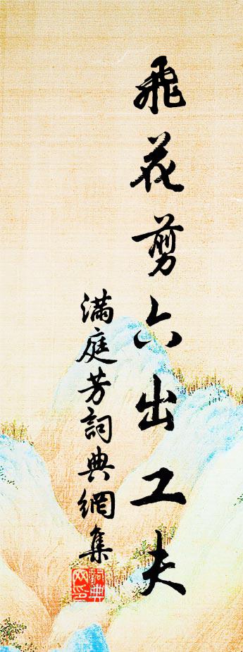 詩詞名句歷史字典書法欣賞書法字典國語詞典說文解字康熙字典古漢語字典標 題 作 者 詩 句 滿庭芳作者:佚名 朝代:宋代滿庭芳原文飛花剪、六出工夫。詩詞問答問:滿庭芳的作者是誰?答:佚名問:滿庭芳寫於哪個朝代?答:宋代問:滿庭芳是什麼體裁?答:詞問:佚名的名句有哪些?答:佚名名句大全佚名滿庭芳書法欣賞滿庭芳書法作品詩詞推薦送徐處士歸江南李頻〔唐代〕行行野雪薄,寒氣日通春。故國又芳草,滄江終白身。游歸花落滿,睡起鳥啼新。莫惜閒書札,西來問旅人。雨作二首曹勛〔宋代〕千峰注雨作微涼,寶殿留陰忽夕陽。入夏暄寒曾莫測,雷聲猶震碧雲傍。青石阻雨李新〔宋代〕茅屋陰多麥化蛾,西山雲重雨流禾。未聞因也改其樂,解道虞兮奈若何。身與前村孤堠遠,淚隨流水一溪多。文章烽火台馬之純〔宋代〕此到西陵路五千,烽台列置若星連。欲知萬騎還千騎,只看三煙與兩煙。不用赤囊來塞下,可須羽檄報軍前。如何初秋戲作山居雜興俳體十二解楊萬里〔宋代〕卓午從他火繖張,先生別有睡為鄉。竹床多遍兩頭冷,瓦枕翻來四面涼。逍遙詠宋太宗〔宋代〕乾關萬象審消停,子母相傳日月精。產藥要教千日化,玄門全藉五行清。靈胎脫體方知聖,鉛汞梯媒不是名。金鼎文宗嗜蛤蜊釋了惠〔宋代〕螺師蚌蛤類,大唐天子心。嗜好即深信,南無觀世音。游秀峰寺劉無降〔宋代〕曉乘輕舸出江城,晚上籃興欲倦行。盡日松風鄉岩石,小窗聽作泉聲。寄陳用晦四首陳造〔宋代〕詩翁磊塊胸,大邑佳麗地。瓊也領蝤蠐,懿也目秋水。清歌酹碧筒,粗足令公喜。醉呼翩欲仙,誰要卿料理。舟檥娥祠敬留二絕吳潛〔宋代〕雖然墟墓一拳上,泰華衡常未必侔。感動行人忠孝淚,滄江不斷水東流。登如方山賀鑄〔宋代〕楚郊十月尚聞蟬,傍道黃華亦可憐。特上西山最高處,長安應在夕陽邊。京城寓居春日吳龍翰〔宋代〕春城庭院柳風輕,簾影玲瓏愛曉晴。紅日半窗吟夢覺,咿啞牆外賣花聲。答金元鼎喜雨韓元吉〔宋代〕幾日雲陰合又開,良田秋近起黃埃。一觴未致靈祠禱,半夜先欣好雨來。政拙自知容我懶,詩清要是得君催。不妨與成父弟自嚴礲同入城晚宿黃岩趙蕃〔宋代〕昔人重離合,感慨思功名。我今迫貧賤,乃作分袂驚。徘徊未能別,崎嶇復同行。捫蘿到黃岩,倚杖日已傾。摩挲袁公濟和劉景文登介亭詩複次韻答之蘇軾〔宋代〕昏昏墮醉夢,奈此六月溽。君詩如清風,吹我朝睡足。登臨得佳句,江白照湖淥。袖手獨不言,默稿已在腹。是時送韓仲文奉使梅堯臣〔宋代〕往使匈奴國,持節豈辭遙。朔北正苦寒,風汝與雪飄。燕山何處是,漢銘應已銷。前車渡冰河,後騎鳴金鑣。行行南歌子陳克〔宋代〕北固煙中寺,西津雨後山。看公英氣兩眉間。如在林霏、江月襲人寒。展翼聲名久,占熊福艾全。風流不是地行仙滿庭芳 贈湖口王先生馬鈺〔元代〕山侗謹勸,名利人人。只知富貴安身。豈悟吾門一著,出世根因。虎龍交馳鳳闕,更無中、嬰奼成親。誰信道,並凌虛台蘇軾〔宋代〕才高多感激,道直無往還。不如此台上,舉酒邀青山。青山雖雲遠,似亦識公顏。崩騰赴幽賞,披豁露天慳。落日雨陸游〔宋代〕映空初作繭絲微,掠地俄成箭鏃飛。紙帳光遲饒曉夢,銅爐香潤覆春衣。池魚鱍鱍隨溝出,梁燕翩翩接翅歸。惟有名句推薦德彌盛者文彌縟,德彌彰者人彌明。王充《論衡·卷二十八·書解篇》 重唱梅邊新度曲,催發寒梢凍蕊。吳文英《金縷歌·陪履齋先生滄浪看梅》 重岩疊嶂,隱天蔽日。酈道元《三峽》 數回細寫愁仍破,萬顆勻圓訝許同杜甫《野人送朱櫻》 木謂之華,草謂之榮。佚名《爾雅·釋草》 唯有閒愁將不去,依舊住,伴人直到黃昏雨。段克己《漁家傲·詩句一春渾漫與》 清風明月無人管,並作南樓一味涼。黃庭堅《鄂州南樓書事》 不知何處火,來就客心然。沈佺期《寒食》 小樓昨夜又東風,故國不堪回首月明中。李煜《虞美人·春花秋月何時了》 此時卻羨閒人醉,五馬無由入酒家。白居易《早冬》