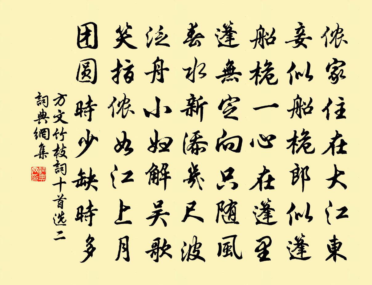 詩詞名句歷史字典書法欣賞書法字典國語詞典說文解字康熙字典古漢語字典標 題 作 者 詩 句 竹枝詞(十首選二)作者:方文 朝代:清代竹枝詞(十首選二)原文儂家住在大江東,妾似船桅郎似篷。船桅一心在篷里,篷無定向只隨風。春水新添幾尺波,泛舟小婦解吳歌。笑指儂如江上月,團圓時少缺時多。詩詞問答問:竹枝詞(十首選二)的作者是誰?答:方文問:竹枝詞(十首選二)寫於哪個朝代?答:清代方文竹枝詞(十首選二)書法欣賞竹枝詞(十首選二)書法作品詩詞推薦織婦詞元稹〔唐代〕織婦何太忙,蠶經三臥行欲老。蠶神女聖早成絲,今年絲稅抽征早。早征非是官人惡,去歲官家事戎索。征人戰苦華亭百詠思齊堂許尚〔宋代〕伊昔弦歌治,能聲著海隅。升堂想遺蹟,勵志欲齊驅。觀王文之所藏荊公帖趙蕃〔宋代〕余行江左路,曾涉蔣山椒。野逸思乘蹇,儀型想冠貂。帖窺藏五世,詩續詠前朝。永日欣無斁,巾欹膝屢搖。送文慧師歸眉山司馬光〔宋代〕至人心如雲,去住叭所適。飄搖涉四海,豈復校喧寂。朅來王城游,紅塵暖晨夕。忽思還故峰,不可留宿昔。離合聯句佚名〔唐代〕珠簾半床月,青竹滿林風。 ——楊女何事暮春被病感書強至〔宋代〕孤直難知己,才華反誤身。流年銷壯節,多病對殘春。酒到心如達,花空眼亦貧。賢愚通塞理,誰與問洪鈞。題謝艮齋畫笥四首王炎〔宋代〕玉軸錦囊無此景,何年天巧出丹青。艮齋收得供詩眼,勝看鸞台十二屏。歸途嘆高登〔宋代〕孫吳攄將略,申甫翰王家。腐儒要底用,歸種東陵瓜。送滎陽魏主簿歐陽修〔宋代〕卓犖東都子,姓名聞十年。窮冬雪塞空,千里至我門。子足未及閾,我衣驚倒顛。仆童相視疑,寮吏或不然。俛首登汝州等慈閣二絕句宋庠〔宋代〕像閣岧嶢出翠陰,有人憑檻看嵩岑。方袍更語閩天舊,且取歸心付佛心。所苦之中無以遣悶更堤題新竹別獻五章幸賜披李至〔宋代〕蓽為扉闔槿為籓,不似公家地盡寬。階下才容數片席,窗前也種十餘竿。蝸牛舍畔幽叢小,行馬門中翠影寒。應似游佑七年丁未十一月朔蔡久軒自江東提刑歸抵王撝〔宋代〕嵯峨武夷山,中有梁棟姿。鳳凰鳴高崗,隱見視其時。孰若阿房宮,下容五丈旗。孰奏簫韶樂,和聲召來儀。才大將過單于許棠〔唐代〕荒磧連天堡戍稀,日憂蕃寇卻忘機。江山不到處皆到,隴雁已歸時未歸。行李亦須攜戰器,趨迎當便著戎衣。并州短歌行鄭起〔宋代〕覽鏡摩挲,歲月蹉跎。道長命窄,憂慮如何。何以消除,非酒莫祛。醉來不見,醒復如初,跖躍鏘鏘,孔孟皇皇。和仁仲孱陵有感胡寅〔宋代〕奸雄乘亂謀稱帝,不暇從容問傳器。荀公死坐靳殊錫,文舉誅因白畿地。金根曲蓋乘五時,謬以踞火尤吳兒。懸知列岫亭用范伯升韻韓元吉〔宋代〕自我來南溪,池塘幾春草。結茅依雲端,愛此山回抱。奇峰七十二,羅列景逾好。豈殊謝公窗,澄江更縈繞。孤城有感陸游〔宋代〕雲崦重重不易尋,庖廚性命走山林。但令有月同幽夢,更用何人識苦心。流輩漸稀知死近,鬢毛無色覺愁侵。平生次韻林郎中龔宗簿陳造〔宋代〕散人擁書茅屋底,只合下澤居鄉里。浪指青冥期策足,端復滄浪規洗耳。林侯坐分韓席半,龔侯天才寧羽慣。瓢酌偈頌一百二十三首釋祖欽〔宋代〕插一莖草建梵剎,捏雙空手豎僧堂。古今相去知多少,七尺單前自較量。南柯子王哲〔元代〕白鷺江心立,烏龜水底鑽。紅雞悲翠竹間攢。四件將來,鍋內練成丹。五味調和美,重樓信任餐。充盈六腑得寧康名句推薦胭脂淚,相留醉,幾時重。李煜《相見歡·林花謝了春紅》 元嘉草草,封狼居胥,贏得倉皇北顧。辛棄疾《永遇樂·京口北固亭懷古》 破帽遮顏過鬧市,漏船載酒泛中流。魯迅《自嘲》 綠池芳草滿晴波,春色都從雨里過。高啟《春暮西園》 倚篷窗無寐,引杯孤酌。張元乾《滿江紅·自豫章阻風吳城山作》 天下無難事,只怕有心人。曹雪芹《紅樓夢·第四十九回》 將順其美,匡救其惡,故上下能噲親也司馬遷《史記·管晏列傳》 羞日遮羅袖,愁春懶起妝。魚玄機《贈鄰女 / 寄李億員外》 直道相思了無益,未妨惆悵是清狂。李商隱《無題·重幃深下莫愁堂》 子規啼,不如歸,道是春歸人未歸。關漢卿《大德歌·春》