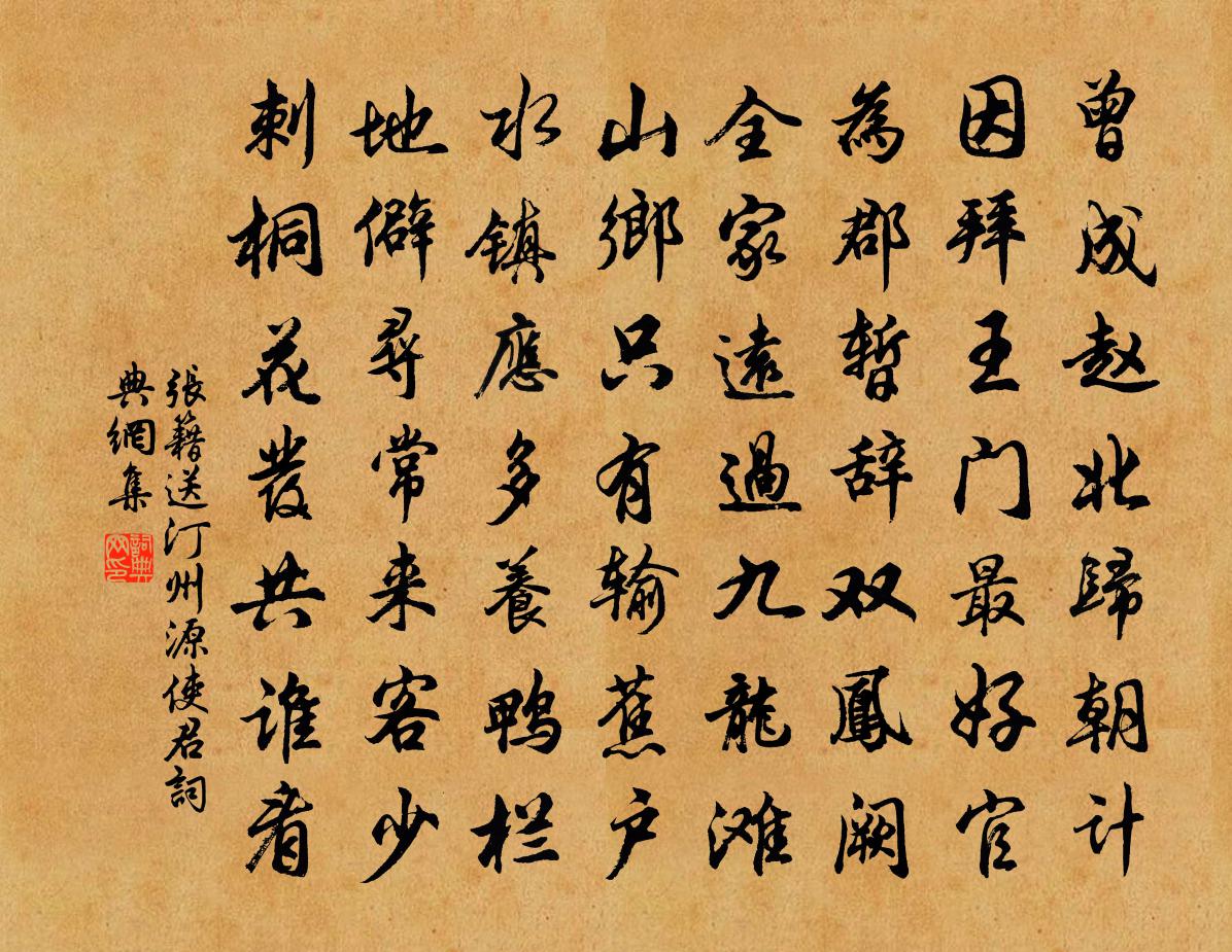 張籍送汀州源使君書法欣賞