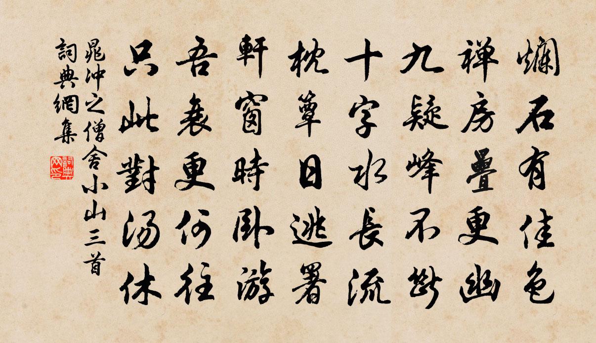 爛石有佳色,禪房疊更幽,九疑峰不斷,十字水長流。枕簟日逃署,軒窗時臥遊。