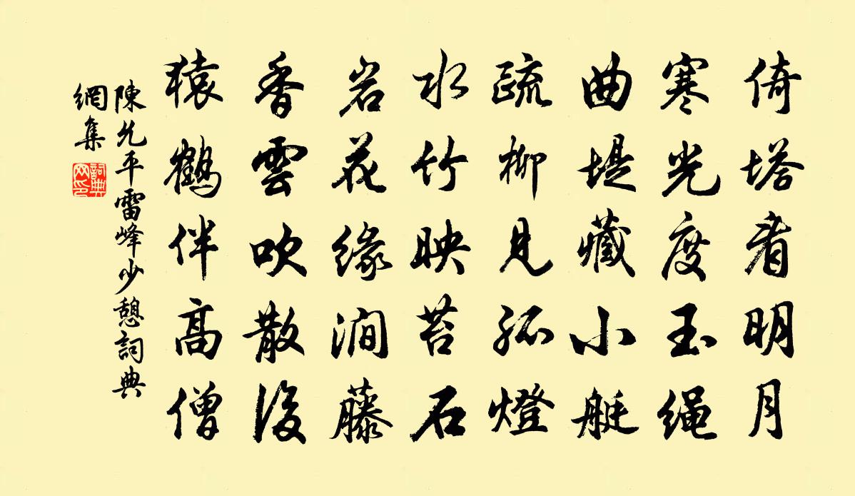 詩詞名句歷史字典書法欣賞書法字典國語詞典說文解字康熙字典古漢語字典標 題 作 者 詩 句 雷峰少憩作者:陳允平 朝代:宋代雷峰少憩原文倚塔看明月,寒光度玉繩。曲堤藏小艇,疏柳見孤燈。水竹映苔石,岩花緣澗藤。香雲吹散後,猿鶴伴高僧。詩詞問答問:雷峰少憩的作者是誰?答:陳允平問:雷峰少憩寫於哪個朝代?答:宋代陳允平雷峰少憩書法欣賞雷峰少憩書法作品詩詞推薦代宋州將淮上乞師耿湋〔唐代〕唇齒幸相依,危亡故遠歸。身輕百戰出,家在數重圍。上將堅深壘,殘兵斗落暉。常聞鐵劍利,早晚借餘威。雜詩四首王中立〔宋代〕雲葉粼粼皺碧空,笙簫遞響入天風。忽驚風浪耳邊急,不覺形神來世中。食新茶釋永頤〔宋代〕自回山中來,泉石足幽弄。茶經猶太人掛壁,庭草積已眾。拜先俄食新,香凝雲乳動。心開神宇泰,境豁謝幽夢。廬山戴復古〔宋代〕擁鼻行吟上下廊,今宵又宿贊公房。松搖半夜風聲壯,桂染中秋月色香。白石清泉聞笑語,名山大澤出文章。老夫送劉仲子就試方岳〔宋代〕小枝文章道未尊,入時新樣更難論。鵠袍才脫須重讀,六籍久為場屋昏。浪淘沙杜安世〔宋代〕後約無憑。往事堪驚。秋蛩永夜繞床鳴。展轉尋思求好夢,還又難成。愁思若浮雲。消盡重生。佳人何處獨盈盈。萬丈潭杜甫〔唐代〕青溪合冥莫,神物有顯晦。龍依積水蟠,窟壓萬丈內。跼步凌垠堮,側身下煙靄。前臨洪濤寬,卻立蒼石大。山色酒中十詠酒城皮日休〔唐代〕萬仞峻為城,沈酣浸其俗。香侵井幹過,味染濠波淥。朝傾逾百榼,暮壓幾千斛。吾將隸此中,但為閽者足。新荷出水岳珂〔宋代〕貼水初翻紫玉團,忽驚矗立傍闌乾。瑤池七日來青鳥,玉鑒孤奩舞翠鸞。曉露走盤珠顆瑩,晚風颭蓋雪衣寒。從今次韻和次道學士獻贈留台吳侍郎洛水泛舟之作宋庠〔宋代〕歲晚風清洛霧開,有人沿泝避囂埃。莊談解辯觀濠樂,潘興能添作賦才。蘭菊分洲爭向背,鳧鷖隨棹罷驚猜。留都游黃山石應孫〔宋代〕山川形勝雄江東,九華輝映天都峰。傳聞早已湯胸臆,恨不插翼長相從。朅來隨牒官秋浦,城郭賓士厭塵土。絜家鄂渚送友武元衡〔唐代〕雲帆淼淼巴陵渡,煙樹蒼蒼故郢城。江上梅花無數落,送君南浦不勝情。春雪焦郁〔唐代〕散漫天涯色,乘春四望平。不分殘照影,何處斷鴻聲。繚繞先經塞,霏微近過城。因風低未斂,帶雨重還輕。乾呂友人話別李頻〔唐代〕論交雖不早,話別且相親。除卻棲禪客,誰非南陌人。半生都返性,終老擬安貧。願入白雲社,高眠自致身。秋夜聽搗衣楊凝〔唐代〕砧杵聞秋夜,裁縫寄遠方。聲微漸濕露,響細未經霜。蘭牖唯遮樹,風簾不礙涼。雲中望何處,聽此斷人腸。客中感懷唐彥謙〔唐代〕客路三千里,西風兩鬢塵。貪名笑吳起,說國嘆蘇秦。托興非耽酒,思家豈為蓴。可憐今夜月,獨照異鄉人。蝦蟆碚陸游〔宋代〕不肯爬沙桂樹邊,朵頤千古向岩前。巴東峽里最初峽,天下泉中第四泉。齧雪飲冰疑換骨,掬珠弄玉可忘年。清游送汪掾史王冕〔元代〕莫怪遲遲把酒杯,留君故爾強徘徊。市橋楊柳不堪折,江路梅花無數開。從此計程趨畫省,更期拾級上烏台。底用從丁家洲避風行小港,出荻港大江三首楊萬里〔宋代〕蘆揮塵尾話清秋,柳弄腰支舞綠洲。引得江風顛入骨,戲拋波浪過於樓。十程擬作一程快,一日翻成十日留。未到挽商元鼎喻良能〔宋代〕舉世方貪祿,斯人只自怡。一官如涕唾,半世足遨嬉。心地陂千頃,生涯灑一卮。唯應郭有道,吾不愧為碑。名句推薦誰忍窺河漢,迢迢問鬥牛。孟浩然《他鄉七夕》 人之愛子,罕亦能均;自古及今,此弊多矣。顏之推《顏氏家訓·教子篇》 為政之要,惟在得人。用非其才,必難致治。吳兢《貞觀政要·卷七·崇儒學》 烏絲闌紙嬌紅篆,歷歷春星。納蘭性德《紅窗月·燕歸花謝》 悵然孤嘯,青山故國,喬木蒼苔。倪瓚《人月圓·傷心莫問前朝事》 出犯繁花露,歸穿弱柳風溫庭筠《清明日》 蓋世的功勞,當不得一個矜字;彌天的罪過,當不得一個悔字。洪應明《菜根譚·概論》 溪上桃花無數,花上有黃鸝。黃庭堅《水調歌頭·遊覽》 投策命晨裝,暫與園田疏。陶淵明《始作鎮軍參軍經曲阿作》 孟夏草木長,繞屋樹扶疏。陶淵明《讀山海經·其一》