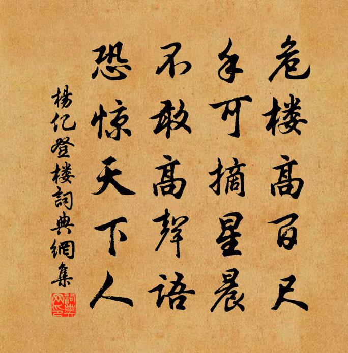詩詞名句歷史字典書法欣賞書法字典國語詞典說文解字康熙字典古漢語字典標 題 作 者 詩 句 登樓作者:楊億 朝代:宋代登樓原文危樓高百尺,手可摘星晨。不敢高聲語,恐驚天下人。詩詞問答問:登樓的作者是誰?答:楊億問:登樓寫於哪個朝代?答:宋代楊億登樓書法欣賞登樓書法作品詩詞推薦葉茂卿寄詩卷賦此以謝之陳文蔚〔宋代〕正念交情舊,忽來詩卷新。既能賒酒餘,寧作賣書貧。計想尋窗下,閒須過澗濱。為言田舍樂,花鳥亦情真。屏居北郊自秋涉冬絕省人事觸緒有感吒之諷吟程公許〔宋代〕宿嗜本幽間,世途倦馳聘。迫芘門戶吒,強把冠佩整。如手誤一來,麾退諒予警。寬恩假郡寄,靜俟亦天幸。橐空自笑敖陶孫〔宋代〕抱瓮終焉與世迷,斬輪久矣嘆吾衰。江南未必無佳士,海內何由得二兒。不共施梁爭折角,卻思陶謝與同時。歌成示嚴君趙蕃〔宋代〕酒債未忘索,詩狂無用嗔。年華猶是臘,風日已如春。我鬢蕭蕭白,庭柯濯濯新。晚來暄暖劇,還遣振懸鶉。江行七日阻風至繁昌,舍舟出陸二首楊萬里〔宋代〕日日江行怖殺儂,逆風惡浪打船蓬。只今判卻肩與去,遮莫掀天浪與風。昭如長老請釋祖欽〔宋代〕海印發光,照然如日。曾對大元聖主,默說不二法門。默而說,說而默。中興大仰叢林,天下第一法窟。蝶戀花辛棄疾〔宋代〕何物能令公怒喜。山要人來,人要山無意。恰似哀箏弦下齒。千情萬意無時已。自要溪堂韓作記。今代機雲,好語和登山城望京邑宋祁〔宋代〕子牟懷魏闕,陳鹹思帝城。他鄉豈不美,吾土樂所生。況復撫凋節,憑高懷上京。山川不可見,蔥鬱凝神縣。紫氣八月五日夜半起飲酒作草書數紙陸游〔宋代〕有漏神仙有發僧,碧幮欹枕對秋燈。忽然起索三升酒,颯颯蛟龍入剡藤。詠雪白玉蟾〔宋代〕青女懷中釀雪方,雪兒為麯露為漿。一朝雪熟飛廉醉,酘得東風一夜狂。題龍州亭趙蕃〔宋代〕亭自君家築,洲從何代名。諸公多好句,老子敢爭衡。剩欲危欄倚,少須春草生。毋庸為鱸去,聊欲赴鷗盟。齊安郡夫人金氏輓詞樓鑰〔宋代〕五子俱英發,尤知仲氏賢。勤明真世濟,廉儉信家傳。別乘徑為郡,高城欲捍邊。版輿俄棄養,事業待他年。橫山堂孫覿〔宋代〕波間指點見青紅,雪脊嶒稜倚半空。幻出生綃三萬幅,遊人渾在畫圖中。榮侄試周裘萬頃〔宋代〕汝生方滿歲,伯發已星星。桑苧甘投老,蘭蓀喜向榮。席間無一印,帷下有諸經。莫學魚兒戲,來年快聚螢。題吳氏四賢堂羅鑒〔宋代〕敬齋一則話,傳自南軒翁。於湖金玉之,諸老歸下風。不使掌帝制,嗟哉吾道窮。遺像今偉然,吾敬司封公。挽沙溪項公苔湖居士戴復古〔宋代〕讀書不成事,何恨老山林。處世有容德,與人無諍心。友於兄弟樂,惠彼里閭深。細把豐碑讀,懷賢淚滿襟。紅樓曲白玉蟾〔宋代〕紅樓貯飛瓊,夜夜令人憶。回盼千山外,天遠暮雲碧。西風白芙蓉,往事殆陳跡。為我收眼纈,織得愁成疋。堦基李覯〔宋代〕堂前一級似堦墀,無石無甎只舊基。泥飾頃因年節近,蹋崩唯是客行時。誰曾羅襪雙來上,多謝蒼苔久不離。從此感遇之卅三陳子昂〔唐代〕金鼎合神丹。世人將見欺。飛飛騎羊子。胡乃在峨眉。變化固幽類。芳菲能幾時。疲疴苦淪世。憂痗日侵淄。眷然伯常少留別業寄詩索酒因以奉報曾鞏〔宋代〕未擁雙騶謁漢庭,暫留車馬憩林坰。多情置驛邀佳客,好事磨鉛勘舊經。芳草連門三徑遠,朝雲臨幌數峰青。春醪名句推薦寫不成書,只寄得、相思一點。張炎《解連環·孤雁》 淚眼倚樓頻獨語。雙燕飛來,陌上相逢否?馮延巳《鵲踏枝·幾日行云何處去》 多言數窮,不如守中。老子《老子·道經·第五章》 飢而欲食,寒而欲暖,勞而欲息,好利而惡害,是人之所生而有也。荀子《荀子·榮辱》 楚江湄,湘娥乍見,無言灑清淚周密《繡鸞鳳花犯·賦水仙》 回鞭指長安,西日落秦關。李白《登敬亭北二小山余時送客逢崔侍御並登此地》 但恨處非位,愴悢使心傷。阮籍《詠懷八十二首·其七十九》 月落沙平江似練。望盡蘆花無雁。張炎《清平樂·候蛩淒斷》 渺萬裡層雲,千山暮雪,隻影向誰去?元好問《摸魚兒·雁丘詞 / 邁陂塘》 不成拋擲,夢裡終相覓。王國維《點絳唇·屏卻相思》