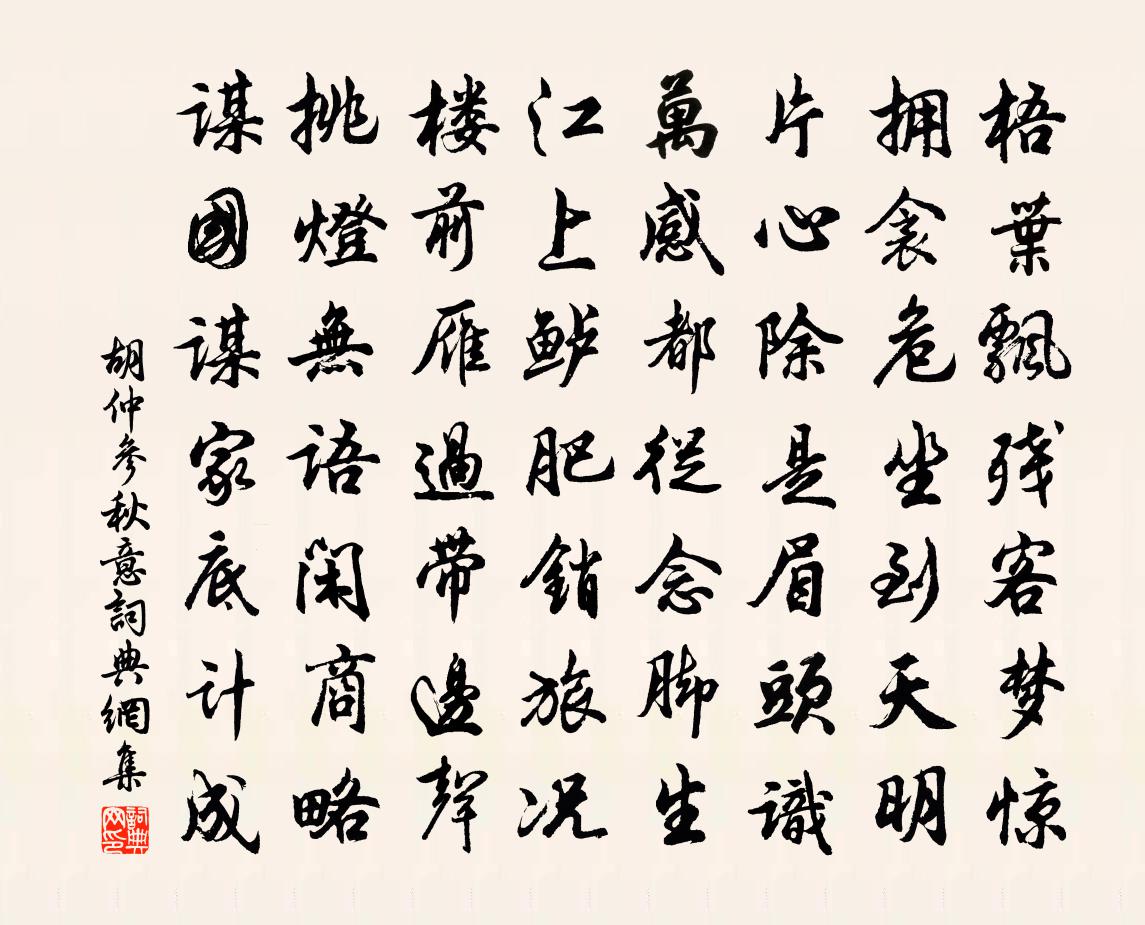 詩詞名句歷史字典書法欣賞書法字典國語詞典說文解字康熙字典古漢語字典標 題 作 者 詩 句 秋意作者:胡仲參 朝代:宋代秋意原文梧葉飄殘客夢驚,擁衾危坐到天明。片心除是眉頭識,萬感都從念腳生。江上鱸肥銷旅況,樓前雁過帶邊聲。挑燈無語閒商略,謀國謀家底計成。詩詞問答問:秋意的作者是誰?答:胡仲參問:秋意寫於哪個朝代?答:宋代胡仲參秋意書法欣賞秋意書法作品詩詞推薦次韻陸虞仲學士塗中詠雪二首李彌遜〔宋代〕可笑無氈老鄭虔,甘寒忍喜詠豐年。飛花穿樹春疑早,秀麥分岐瑞有先。白玉樓成迷萬井, * 繞認雙川。輕縑柬竹院孚老胡仲參〔宋代〕別來旬日許,又過一分春。因感塵中事,空慚物外人。吟清便境靜,語苦見情真。近況知何似,篇詩得細詢。陪王漕右司游東園章甫〔宋代〕籍甚皇華使,詩清思不群。建台多暇日,領客總能文。花好杯重勸,茶香手自分。禮寬情爛熳,小雨夜深聞。題縣南莊壁晁說之〔宋代〕城下之師莫問天,只將性命托忠賢。效官三黜未為恨,閉戶七奔方可憐。虎變不宜懷猶豫,龍韜豈憚費迍邅。前村北歸渡海折彥質〔宋代〕去日驚濤遠拍天,飛廉幾覆逐臣船。歸舟陡頓能安穩,便覺君恩更煥然。秋興高翥〔宋代〕老去無心世事輕,但從景物略關情。曉看雁陣驚秋晚,夜聽鶴聲知月明。石鼎煮茶論水品,土牆題字記花名。出門秋夜懷彥博審知趙蕃〔宋代〕山深月吐遲,亭亭夜向殘。露氣挾與俱,侵窗迫人寒。團扇甫罷去,布衾已覺單。儻無寒暑期,何以雕我顏。人生沁園春 次張孟功韻許有壬〔元代〕擊楫中流,躍馬長途,今非向年。嘆故人萬里,江東渭北,流光幾度,雁後花前。鬢影星星,人情落落,恰念蘇家寄荔枝與盛參政田從易〔宋代〕櫻桃真小子,龍眼是凡姿。橄欖為下輩,枇杷作客兒。閒步仇遠〔宋代〕村逕桑麻合,扶筇信所之。綠陰晴冉冉,白日步遲遲。野繭粘高樹,山雌入破籬。豈無款段馬,常是小兒騎。記小圃花果二十首劉克莊〔宋代〕清旦書窗外,深叢茁一枝。人尋花不見,蝶有鼻先知。登擬峴陸游〔宋代〕翠阜圍平野,朱樓壓繚牆。風回半汀雁,雲護一天霜。有地聊容拙,無方可療狂。白頭詩興在,吟罷意差強。送別周憲使程公許〔宋代〕春風浩蕩龍泓口,逢逢船鼓驚雷吼。皇華使者拜捧徽書,萬里習帆上南斗,岷發報上下十六城,後先持節知幾人。海州道中二首張耒〔宋代〕秋野蒼蒼秋日黃,黃蒿滿田蒼耳長。草蟲咿咿鳴復咽,一秋雨多水滿轍。渡頭鳴舂村徑斜,悠悠小蝶飛豆花。逃屋楊武恭王輓詞樓鑰〔宋代〕父祖成完節,丹心激懦夫。忱戈梟逆虜,撫劍志伊吾。忠孝公何愧,哀榮世所無。從今紫荷橐,接武上亨衢。駕幸親賢宅贈隨駕諸公蘇轍〔宋代〕日日南風夜氣煩,一聲鳴[走畢]萬人看。禁溝飛水清黃道,涼殿分冰遍從官。急雨未成昏觀闕,微飈稍覺泛和鑾挽葛知錄母二首劉宰〔宋代〕青袍綠當映斑衣,幕府風流彼一時。雲馭歸歟可無憾,承家猶有寧馨兒。金石錄後序李清照〔宋代〕 右金石錄三十卷者何?趙侯德父所著書也。取上自三代,下迄五季,鍾、鼎、甗、鬲、盤、彝、尊、敦之款識戲贈表兄崔秀才權德輿〔唐代〕何事年年戀隱淪,成名須遣及青春。明時早獻甘泉去,若待公車卻誤人。愛玉女洞中水既致兩瓶恐後復取而為使者見紿蘇軾〔宋代〕之調水符欺謾久成俗,關市有契繻。誰知南山下,取水亦置符。古人辨淄澠,皎若鶴與鳧。吾今既謝此,但視符有名句推薦少婦今春意,良人昨夜情。沈佺期《雜詩三首·其三》 蓄疑敗謀,怠忽荒政佚名《尚書·周書·周官》 君子內省不疚,無惡於志。君子之所不可及者,其唯人之所不見乎。子思《中庸·第三十三章》 西湖又還春晚,水樹亂鶯啼。仲殊《訴衷情·寶月山作》 津橋春水浸紅霞,煙柳風絲拂岸斜。雍陶《天津橋望春》 百二禁兵辭象闕,三千宮女下龍舟。許渾《汴河亭》 上有愁思婦,悲嘆有餘哀。曹植《明月上高樓》 花時同醉破春愁,醉折花枝作酒籌。白居易《同李十一醉憶元九》 無計奈情何,且醉金杯酒。晏幾道《生查子·輕勻兩臉花》 蕭條庭院,又斜風細雨,重門須閉。李清照《念奴嬌·春情》
