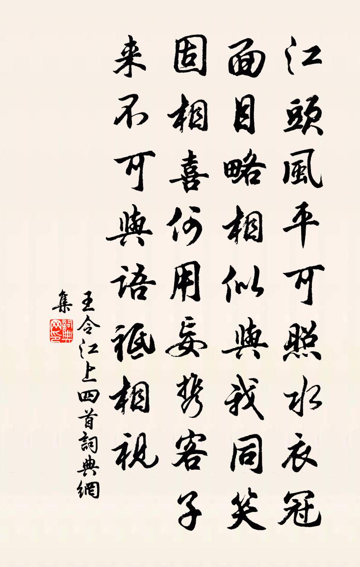 詩詞名句歷史字典書法欣賞書法字典國語詞典說文解字康熙字典古漢語字典標 題 作 者 詩 句 江上四首作者:王令 朝代:宋代江上四首原文江頭風平可照水,衣冠面目略相似。與我同笑固相喜。何用妄攜客子來,不可與語祗相視。詩詞問答問:江上四首的作者是誰?答:王令問:江上四首寫於哪個朝代?答:宋代王令江上四首書法欣賞江上四首書法作品詩詞推薦招隱三章贈李洋洪咨夔〔宋代〕雲氣斂兮天目之顛,濤江線橫兮海門濺濺。扶桑子半兮陽烏翩,可俯而掬兮咽以天井無聲之泉。送杜介歸揚州蘇轍〔宋代〕揚州繁麗非前世,城郭蕭條卻古風。尚有花畦春雨後,不妨水調月明中。東都甲第非嫌汝,北牖羲皇自屬翁。清洛王樂道太丞立春早朝梅堯臣〔宋代〕近臣頭上黃金勝,殿前拜賜東風應。蓼牙疏甲簇春盤,肉抹長絲何亘亘。寬衣武卒轝至庭,人歸下籌殊難稱。我家訴衷情(又和秀老·五之五)王安石〔宋代〕莫言普化祗顛狂。真解作津梁。驀然打個筋斗,直跳過羲皇。臨濟處,德山行。果承當。將他建立,認作心誠,也贈韋德卿秀才趙蕃〔宋代〕蚌繇珠剖孰為冤,鶴豈鳴皋且唳天。對策未居金馬上,夜書猶即短檠邊。子誠異嗜如昌歜,我愧沉痾非藉船。永好李寅之招飲同登九江城方回〔宋代〕清湍嚴子灘,僻塢任公寺。荒涼茅屋居,蹇淺石田蒔。危蹤璧偶完,暮景駕已稅。閒門幸常關,奧帙尚多味。送楊閒侍御拜命赴上都劉商〔唐代〕賀客移星使,絲綸出紫微。手中霜作簡,身上繡為衣。驄馬朝天疾,台烏向日飛。親朋皆避路,不是送人稀。瑞鷓鴣王哲〔元代〕石中火隱怎生昭。水裡金藏要卻遭。石火須恁心火取,水金決得肺金淘。火教鍛鍊真鉛汞,金要增添快劍也。二件雁兒落帶得勝令·飲中閒詠康海〔明代〕數年前也放狂,這幾日全無況。閒中件件思,暗裡般般量。真箇是不精不細醜行藏,怪不得沒頭沒腦受災殃。從今次韻孟師翰鳳兒花滴滴金張榘〔宋代〕物理紛以移,血或化為碧。安知秋草英,不作金點滴。非由冶者鑄,芳葩自光澤。誤彼市中攫,一過一目逆。和張文裕安寒十首司馬光〔宋代〕何處初寒好,初寒噴玉泉。折水流谷口,飛溜落雲邊。雀噪聚林杪,樵歌下石巔。尋幽不思返,坐嘯夕陽偏。早春滻水送友人溫庭筠〔唐代〕青門煙野外,渡滻送行人。鴨臥溪沙暖,鳩鳴社樹春。殘波青有石,幽草綠無塵。楊柳東風裡,相看淚滿巾。淮上亂後寄子都兄五詩李洪〔宋代〕殘臘倉皇間道奔,相逢悲喜語還吞。巡檐慘澹梅花月,壽酒淋漓柏葉樽。禦敵孤城存即墨,還家聚首似羌村。見幾次韻王鞏見寄蘇轍〔宋代〕觸事如棋一一低,昏然一睡更何知。賈生流落南遷後,陶令衰遲歸去時。去住由人真水母,簞瓢粗足亦山雌。年來薦冰陳至〔唐代〕凌寒開涸沍,寢廟致精誠。色靜澄三酒,光寒肅兩楹。形鹽非近進,玉豆為潛英。禮自春分展,堅從北陸成。藉茅訪嚴坦叔戴復古〔宋代〕 * 山下泊,城郭帶煙霞。攜刺投詩社,移船傍酒家。沙禽時弄水,櫸柳夏飛花。小酌未能了,西樓日又斜。松皮香鼎李洪〔宋代〕南山長鬣五大夫,峨冠織翠華襟裾。老藏山澤骨相臞,捐軀鼎鼐計不疏。偶向寒窗伴腐儒,坦腹聳身止坐隅。鼻觀游道林寺詩三首張嵲〔宋代〕萬畦霜稻臣黃雲,小徑縈紆接寺門。不見高人空像設,更無衲子辯風幡。樓觀遠岫秋增媚,窗枕寒溪夜更喧。他日壽運使芹庵〔宋代〕炎蒸忽逐火雲斂,爽氣俄隨玉露瀼。不是真賢生間世,爭教煩暑變清涼。偈二十二首釋洵〔宋代〕吾君收得中原寶,塞外煙塵淨如掃。萬國歌謠賀太平,家家門館長安道。名句推薦故人書報,莫因循、忘卻蓴鱸。辛棄疾《漢宮春·會稽秋風亭觀雨》 迢遞路回清野,人語漸無聞,空帶愁歸周邦彥《夜飛鵲·河橋送人處》 清明天氣。永日愁如醉。杜安世《鶴沖天·清明天氣》 海燕歲微渺,乘春亦暫來。張九齡《歸燕詩》 事雖小,勿擅為。苟擅為,子道虧。李毓秀《弟子規·入則孝》 一騎紅塵妃子笑,無人知是荔枝來。杜牧《過華清宮絕句三首》 運籌帷幄之中,制勝於無形司馬遷《史記·七十列傳·太史公自序》 幾度東風吹世換,千年往事隨潮去。戴復古《滿江紅·赤壁懷古》 吾於天下,無去也,無就也,惟道之從。王通《中說·卷二·天地篇》 樹挪死,人挪活。佚名《增廣賢文·下集》