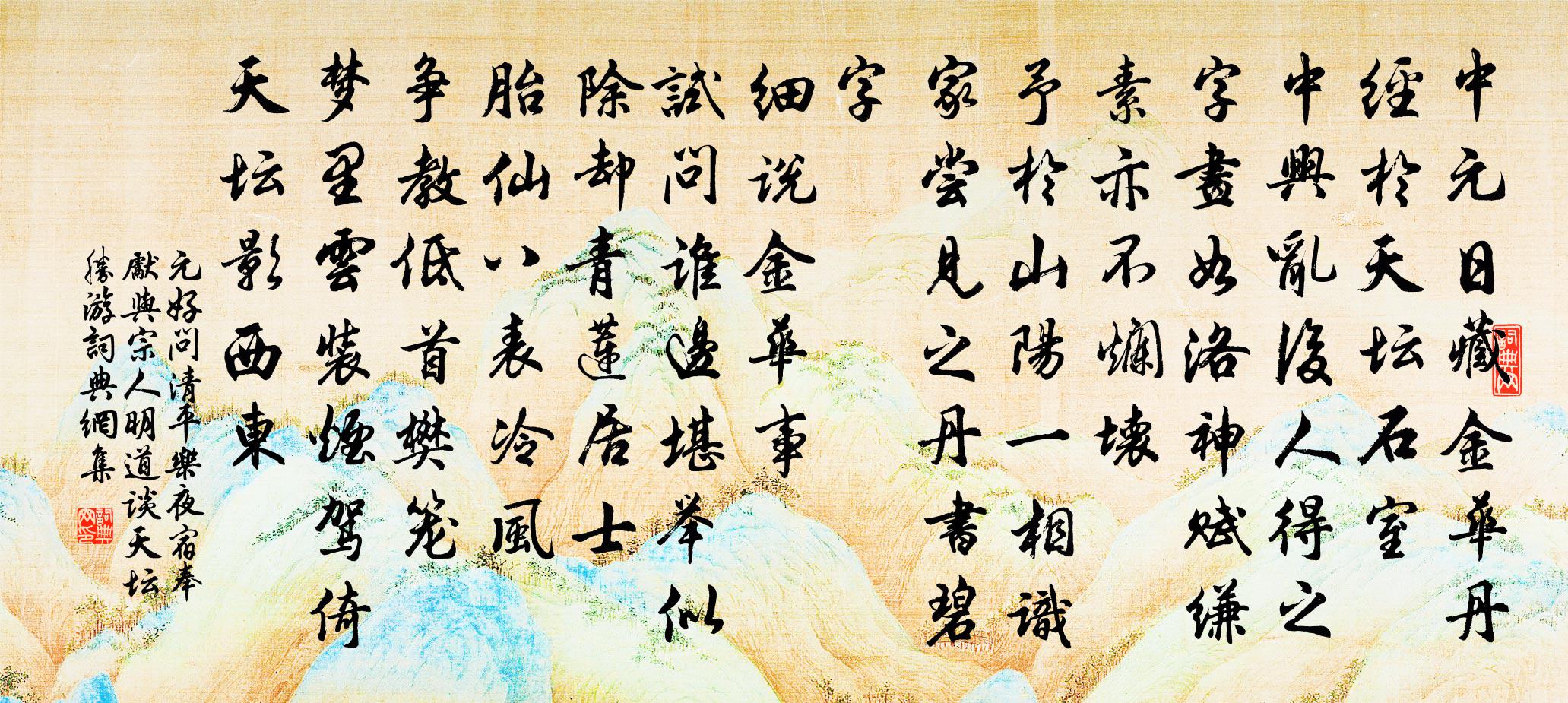 夢裡雲裝煙駕,倚天壇影西東。