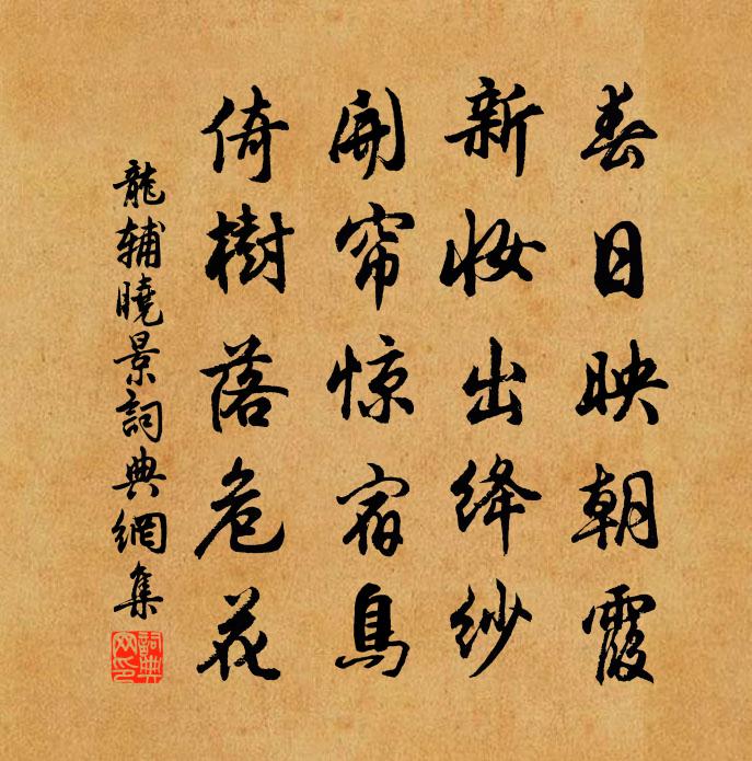 詩詞名句歷史字典書法欣賞書法字典國語詞典說文解字康熙字典古漢語字典標 題 作 者 詩 句 曉景作者:龍輔 朝代:宋代曉景原文春日映朝霞,新妝出絳紗。開簾驚宿鳥,倚樹落危花。詩詞問答問:曉景的作者是誰?答:龍輔問:曉景寫於哪個朝代?答:宋代龍輔曉景書法欣賞曉景書法作品詩詞推薦裂衣書詩寄弟趙卯發〔宋代〕城池不高深,無財又無兵。惟有死報國,來生作弟兄。長門怨黃順之〔宋代〕錦瑟新添一歲塵,寶鸞空負百年身。建章萬戶鶯花好,只有長門更不春。次周尚書八首許月卿〔宋代〕溫州今似古青州,溫飽能輕百戶侯。沃力泉源那擇地,歲寒砥柱屹中流。要知蟬□三公府,便是黃扉四狀頭。萬事柳梢青(和趙顯祖)趙師俠〔宋代〕漠漠輕陰。養花天氣,乍暗還明。曲徑風微,蜂迷紅片,蝶趁遊人。平蕪極目青青。謾悵望、誰招斷魂。柳外愁聞再韻寄元齡弟二首裘萬頃〔宋代〕季也東歸何太遲,伯兮西望屢吟詩。茅檐昨夜雪深尺,人在篷窗知不知。尚書新創敵樓二首方乾〔唐代〕下馬政成無一事,應須勝地過朝昏。笙歌引出桃花洞,羅繡擁來金谷園。十里水雲吞半郭,九秋山月入千門。常聞次韻酬率翁方岳〔宋代〕戍樓夢不到中州,杜牧新愁亦倦遊。留得荷鋤雙手在,山寒芋栗要人收。題黃司直園戴叔倫〔唐代〕為憶去年梅,凌寒特地來。門前空臘盡,渾未有花開。已亥雜詩 233龔自珍〔清代〕燕蘭識字尚聰明,難遣當筵遲暮情。且莫空山聽雨去,有人花底祝長生。送十八兄章甫〔宋代〕故園別去踰三紀,男子生來志四方。千里勞君雙足趼,百窮笑我兩眉長。雪深客舍衣裘冷,春晚家山杖履香。歸省送林伯虎除國子監丞赴闕趙汝鐩〔宋代〕璣衡占東南,老人方昭回。明庭聚耆德,公難臥蒿萊。行行出東門,丹心趨玉階。雪棹乘興爾,雲岫何心哉。了卻城東看柳陳郁〔宋代〕翻暖為寒一信風,畫橋南北岩西東。春歸楊柳無私意,深淺青黃自不同。入谷馬上文同〔宋代〕群山護秦隴,轉去轉幽深。嵐氣重壓眼,秋光清徹心。憑鞍吟絕壁,解帶坐高林。愛此岩泉好,臨流浣俗襟。送范漕赴召八絕洪咨夔〔宋代〕走卒兒童口是碑,百年幾見好監司。浣花鏡月經行處,草木江山亦去思。詠懷白居易〔唐代〕冉牛與顏淵,卞和與馬遷。或罹天六極,或被人刑殘。顧我信為幸,百骸且完全。五十不為夭,吾今欠數年。知分綿州官池贈別同賦灣字盧照鄰〔唐代〕輶軒遵上國,仙佩下靈關。尊酒方無地,聯綣喜暫攀。離言欲贈策,高辨正連環。野徑浮雲斷,荒池春草斑。殘花相國寺祈雨馬上口占宋祁〔宋代〕青鴛剎下天香集,丞相車前佛月低。知有風人無限思,火城催向五門西。淳化中朝會二十三首佚名〔宋代〕軒昊方同德,成康粗比肩。素風惟普暢,皇道本無偏。陰魄重輪滿,陽精五色圓。要荒鹹率服,卓越聖功全。鄉人呂正之教三子連中童子科盛哉前此無有也嚴煥〔宋代〕千秋萬歲聖賢話,盡掛諸郎齒頰閒。發縱指南知有自,昂霄聳壑定非艱。靈椿挺挺元未老,珠樹樅樅孰可攀。過我詩贈晚學李君邢仙老〔宋代〕丹雄初伏櫃方靈,萬里蓬壺第一程。神室下封添夜火,金砂新浴煉真形。稚川篋里藏丹訣,鴻寶方中檢藥名。既得名句推薦舊時茅店社林邊,路轉溪橋忽見。辛棄疾《西江月·夜行黃沙道中》 柳外斜陽,水邊歸鳥,隴上吹喬木。辛棄疾《念奴嬌·登建康賞心亭呈史致道留守》 水隔淡煙修竹寺,路經疏雨落花村。楊徽之《寒食寄鄭起侍郎》 彈淚別東風,把酒澆飛絮:化了浮萍也是愁,莫向天涯去!蔣春霖《卜運算元·燕子不曾來》 卷峭寒萬里,平沙飛雪。吳文英《暗香疏影·夾鍾宮賦墨梅》 總是愁媒,欲訴誰消遣蘇軾《蝶戀花·蝶懶鶯慵春過半》 月黑見漁燈,孤光一點螢。查慎行《舟夜書所見》 奇卓異非至人,至人只是常。洪應明《菜根譚·概論》 枝上流鶯和淚聞,新啼痕間舊啼痕。秦觀《鷓鴣天·枝上流鶯和淚聞》 戰士軍前半死生,美人帳下猶歌舞。高適《燕歌行》