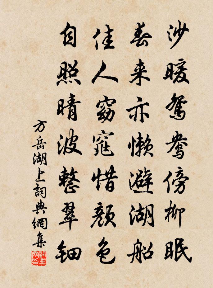 詩詞名句歷史字典書法欣賞書法字典國語詞典說文解字康熙字典古漢語字典標 題 作 者 詩 句 湖上作者:方岳 朝代:宋代湖上原文沙暖鴛鴦傍柳眠,春來亦懶避湖船。佳人窈窕惜顏色,自照晴波整翠鈿。詩詞問答問:湖上的作者是誰?答:方岳問:湖上寫於哪個朝代?答:宋代問:湖上是什麼體裁?答:七絕方岳湖上書法欣賞湖上書法作品詩詞推薦挽少保王平章二首陳著〔宋代〕氣貌古心盎,淵源早學成。三朝尊汲直,四海頌夷清。憂國生如死,誠身實過名。巍巍叔季世,人重泰山輕。頌古一百則釋正覺〔宋代〕 * 禪版對龍牙,何事當機不作家。未意成褫明目下,恐將流落在天涯。虛空那掛劍,星漢卻浮槎。不萌草解藏香西齋秋感二十首方回〔宋代〕寂靜無所為,宴坐觀我天。此心儼不動,豈即非聖賢。孰謂軻也死,斯文遂無傳。鳳麟有嘴角,煎膠寄遺編。斂之奉和虢州劉給事使君三堂新題二十一詠竹徑韓愈〔唐代〕無塵從不掃,有鳥莫令彈。若要添風月,應除數百竿。八識詩徐天錫〔宋代〕兄弟八個一個痴,其中一個最蹺蹊。五個向外能經紀,止留一個看家計。浩浩三藏不可窮,淵深七浪景為風。愛口憶秦娥張翥〔元代〕金杯側。東風易醉多情客。多情客。送君南浦,送春南陌。落花巧妒羅裙色。舞紅變盡休輕拆。休輕拆。待他歸看酹江月/念奴嬌林正大〔宋代〕杏花春晚,散餘芳、著處縈簾穿箔。喚起幽人明月夜,步月褰衣行樂。置酒花前,清香爭發,雪挽長條落。山城薄和陶怨詩示龐鄧蘇軾〔宋代〕當歡有餘樂,在戚亦頹然。淵明得此理,安處故有年。嗟我與先生,所賦良奇偏。人間少宜適,惟有歸耘田。我昔麼趙秉文〔元代〕乘興兩三甌,揀溪山好處追游。但教有酒身無事,有花也好,無花也好,選甚春秋。前調(山中清明後一日大雪)李洪〔宋代〕碧澗蒼崖玉四圍。東君剪水散明璣。半開桃杏不勝威。疑是群仙遊閬苑,歌雲舞蝶高飛。珠幢玉節送人歸。春曉汪莘〔宋代〕曉來雨初晴,天宇淨如拭。隔籬見花柳,春氣亂五色。東君渾不管,但為閒者得。我方獵鵾鵬,溟南復溟北。晚泊富春寄友人喻坦之〔唐代〕江鍾寒夕微,江鳥望巢飛。木落山城出,潮生海棹歸。獨吟霜島月,誰寄雪天衣。此別三千里,關西信更稀。西江月王哲〔元代〕人要修行猛做,我心除盡堪為。不將筋力謾胡施。閒里真清漸自。白雪變成奼女,黃芽養就嬰兒。兩般訊息有誰知偈十首釋正覺〔宋代〕萬像之中獨露身,唯人自肯乃方親。昔年謬向途中覓,今日觀來火里冰。次韻朱晦翁十梅早梅王炎〔宋代〕皎皎姑射仙,縞衣而黃里。一別如許時,見之先失喜。別三十弟彥臣梅堯臣〔宋代〕朝辭都城裡,暮止汴堤頭。滿目非相親,寂默對河流。雨後書懷舒邦佐〔宋代〕策策西風兩鬢秋,瘦藤獨倚思悠悠。送涼小雨勾牽睡,潑面新醅斷送愁。涉世已經三折臂,浮生空白一分頭。流行送梵才上人歸天台張環〔宋代〕往問維摩疾,來探般若心。本源雖自在,因地亦行深。灑落溪山色,蒼涼竹樹陰。宦途如磨蟻,何日重登臨。揚州雜詠七首晁補之〔宋代〕舶商不入古鹽溝,疏鑿才爭土一抔。未說興圩灌田事,且還歌吹舊揚州。除草李新〔宋代〕綠茵春葄暖無加,醉眼蒙茸纈萬花。聞道芟夷殊不惡,直須著意認蘭芽。名句推薦何處合成愁。吳文英《唐多令·惜別》 青海陣雲匝,黑山兵氣沖。高適《塞下曲》 最是多情汴堤柳,春來依舊帶棲鴉!曾棨《維揚懷古》 樂者,所以道樂也,金石絲竹,所以道德也;樂行而民鄉方矣。荀子《荀子·樂論》 人之情多矯,世之俗多偽,豈可信乎?來俊臣《羅織經·閱人卷第一》 忘身辭鳳闕,報國取龍庭。王維《送趙都督赴代州得青字》 新歡不抵舊愁多,倒添了、新愁歸去范成大《鵲橋仙·七夕》 偶因一著錯,便為人上人。曹雪芹《紅樓夢·第二回》 當年得意如芳草。日日春風好。辛棄疾《虞美人·賦虞美人草》 二十餘年如一夢,此身雖在堪驚。陳與義《臨江仙·夜登小閣憶洛中舊遊》