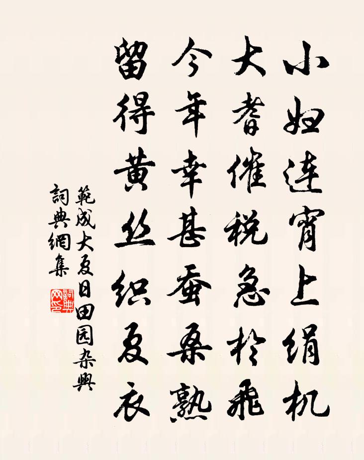 小婦連宵上絹機,大耆催稅急於飛。今年幸甚蠶桑熟,留得黃絲織夏衣。