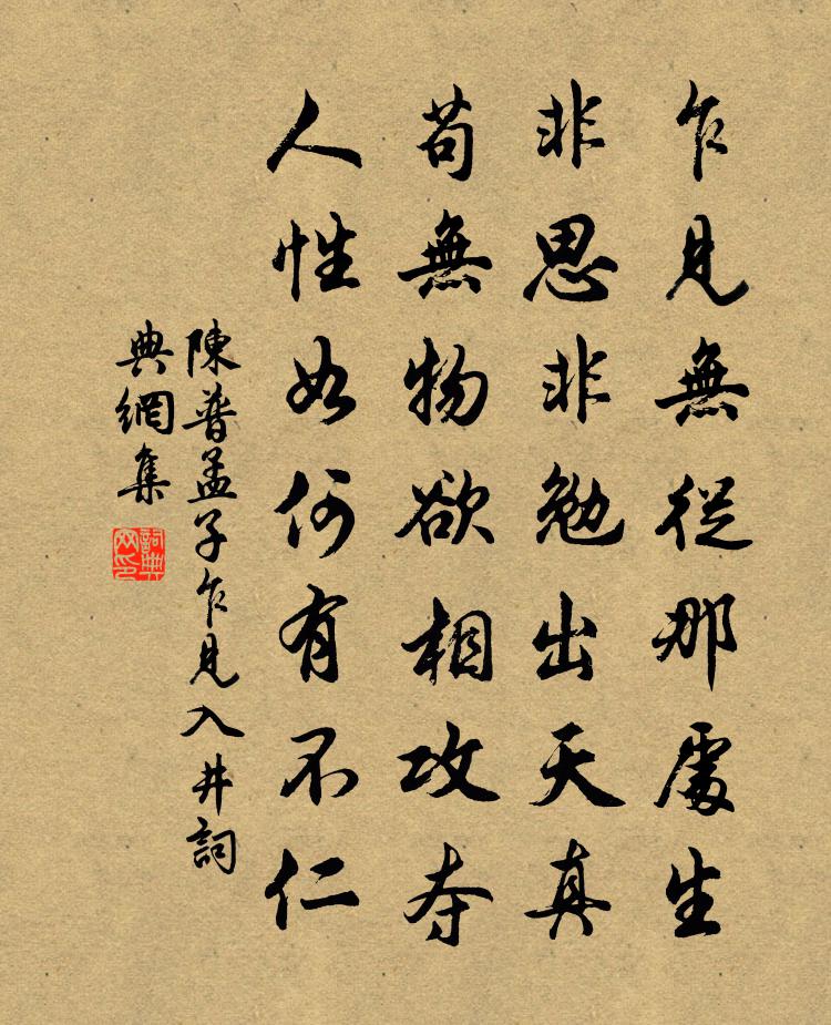 詩詞名句歷史字典書法欣賞書法字典國語詞典說文解字康熙字典古漢語字典標 題 作 者 詩 句 孟子乍見入井作者:陳普 朝代:宋代孟子乍見入井原文乍見無從那處生,非思非勉出天真。苟無物慾相攻奪,人性如何有不仁。詩詞問答問:孟子乍見入井的作者是誰?答:陳普問:孟子乍見入井寫於哪個朝代?答:宋代陳普孟子乍見入井書法欣賞孟子乍見入井書法作品詩詞推薦舟還浯溪再留二絕留筠〔宋代〕自笑塵埃賦□忙,佳山招我莫徜徉。何當了卻痴兒事,來伴高人枕碧湘。哭僕射鄂公楊再思李乂〔唐代〕端揆凝邦績,台階闡國猷。方崇大廈棟,忽逝巨川舟。白日銘安在,清風頌獨留。死生恩命畢,零落掩山丘。送越倅楊屯田赴闕林逋〔宋代〕越中分治罷,山水別來初。詩景多留石,船痕半載書。野程江樹遠,公宴郡樓虛。看塞嚴徐召,清風滿直廬。蝶戀花張之翰〔元代〕往歲相從今幾許。今歲逢君,愈見真誠處。除卻交情無別語。匆匆忍上歸舟雲。醉里猶歌長短句。醒後軒窗,歷歷分題牡丹吳錫疇〔宋代〕此花誰實與封王,公道東皇有品量。宿露低垂蒼玉佩,暄風輕振紫羅裳。精神因為得春久,富貴何妨到晚芳。醉把次野雲南和尚雪竇錦鏡韻釋師範〔宋代〕萬象融一奩,九色猶未多。圓淨出良范,羅紋非巧梭。有樣不可制,無痕安有磨。試問江影亡,如何復如何。招圖機吃槐葉冷淘有狐泉之句輒復為謝晁說之〔宋代〕野狐泉畔昔人集,朱亥墓南今日豪。慚愧曾槐誰細摘,蹔拋湯餅屬吾曹。謙仲好古攜酒見過伯氏以詩謝之次韻王洋〔宋代〕我生南北本殊津,邂逅相逢若聚苹。故納破愁成一笑,應憐對影只三人。居嫌人邑猶分袂,醉覺同心只異身。送客呈楊方叔姜特立〔宋代〕老醜慵看鏡,清狂愛作詩。雖酬真得侶,衰白亦相宜。深居陸游〔宋代〕作吏難堪簿領迷,深居聊復學幽棲。病來酒戶何妨小,老去詩名不厭低。零落野雲寒傍水,霏微山雨晚成泥。自憐病中雜詠十首陸游〔宋代〕擊壤林間送此生,欣欣東作到西成。泥深宿麥苗初長,葉落柔桑眼已生。枹鼓無聲盜衰息,文書簡出吏清平。西遊換崔舍人耿秉〔宋代〕足躡修門甫十年,惟余篇翰富流傳。橫經趣得陳編外,草制雄夸落筆先。爭美冰銜塵不染,忍觀華□□隨遷。忠輸寄王尊師張祜〔唐代〕天台南洞一靈仙,骨聳冰棱貌瑩然。曾對浦雲長昧齒,重來華表不知年。溪橋晚下玄龜出,草露朝行白鹿眠。猶憶觀王主簿家酴醾黃庭堅〔宋代〕肌膚冰雪薰瀋水,百草千花莫比芳。露濕何郎試湯餅,日烘荀令炷爐香。風流徹骨成春酒,夢寐宜人人枕囊。輸與重陽後二日徐僑〔宋代〕我來不及赴重陽,孤負清幽獨自芳。夾徑也能隨意白,出牆無柰著情黃。亟邀舊友將余玩,細酌新醪對汝嘗。懸知洞仙歌 贈宜春官妓趙佛奴阮閱〔宋代〕趙家姊妹,合在昭陽殿。因甚人間有飛燕。見伊底,盡道獨步江南,便江北、也何曾慣見。惜伊情性好,不解嗔人和襲美釣侶二章陸龜蒙〔唐代〕一艇輕撶看曉濤,接罒離拋下漉春醪。相逢便倚蒹葭泊,更唱菱歌擘蟹螯。雨後沙虛古岸崩,魚梁移入亂雲層。歸扇子詩李石〔宋代〕機鋒相拄不爭多,父舞三台子唱歌。若問一時同啐啄,菩提般若六波羅。黃鶴洞中仙 俗喝馬卜運算元王哲〔元代〕正被離家遠。衰草寒煙染。水隔孤村兩三家,你不牽上他馬,獨立沙汀岸。叫得船離岸。舉棹波如練。漁叟停船問鷓鴣天元好問〔金代〕拋卻浮名恰到閒。卻因猥懶得顢頇。從教道士夸懸解,未信禪和會熱謾。山院靜,草堂寬。一壺濁酒兩 * 。題詩名句推薦伯牙鼓琴,志在高山佚名《伯牙鼓琴/伯牙絕弦》 燕子歸來依舊忙。憶君王,月破黃昏人斷腸。謝克家《憶君王·依依宮柳拂宮牆》 清漏漸移相望久,微雲未接過來遲。李商隱《辛未七夕》 空自覺、圍羞帶減,影怯燈孤。張炎《渡江雲·山陰久客一再逢春回憶西杭渺然愁思》 長恨春歸無覓處,不知轉入此中來。白居易《大林寺桃花》 落魄江南載酒行,楚腰纖細掌中輕。杜牧《遣懷》 力田不如逢年,善仕不如遇合。司馬遷《史記·佞幸列傳》 牧人驅犢返,獵馬帶禽歸。王績《野望》 風蕭蕭兮易水寒,壯士一去兮不復還。佚名《荊軻歌 / 渡易水歌》 紛披乍依迥,掣曳或隨風。李世民《詠興國寺佛殿前幡》