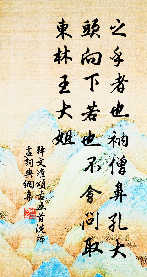 詩詞名句歷史字典書法欣賞書法字典國語詞典說文解字康熙字典古漢語字典標 題 作 者 詩 句 頌古五首洗缽盂作者:釋文準 朝代:宋代頌古五首洗缽盂原文之乎者也,衲僧鼻孔,大頭向下。若也不會,問取東林王大姐。詩詞問答問:頌古五首洗缽盂的作者是誰?答:釋文準問:頌古五首洗缽盂寫於哪個朝代?答:宋代釋文準頌古五首洗缽盂書法欣賞頌古五首洗缽盂書法作品詩詞推薦八聲甘州湯恢〔宋代〕想當年、龍舟鳳,樂宸游、搖曳錦帆斜。傷心是,御香染處,樹樹棲鴉。秋風入我戶徐寶之〔宋代〕秋風入我戶,翩翩動床帷。咄唶中夜起,奈何我心悲。四海豈不大,傷哉無己知。贈趙六貞固二首陳子昂〔唐代〕回中烽火入,塞上追兵起。此時邊朔寒,登隴思君子。東顧望漢京,南山雲霧裡。赤螭媚其彩,婉孌蒼梧泉。昔者游靈泉呈性老王灼〔宋代〕曉發雲靈山,千憩靈泉山。兩山信有靈,相對各開顏。阿師達磨孫,文字昔所刪。戲出香積供。憐我半生孱。時維都堂試貢士日慶春雪李損之〔唐代〕春雪晝悠揚,飄飛試士場。綴毫疑起草,沾字共成章。匝地如鋪練,凝階似截肪。鵝毛縈樹合,柳絮帶風狂。息疫賀新郎蔣捷〔宋代〕妾有琵琶譜。抱金槽、慢拈輕拋,柳梢鶯妒。羽調六么彈遍了,花底靈犀暗度。奈敲斷、玉釵纖股。低畫屏深朱戶西園黃杞〔宋代〕何處西園好,樓雄說媚川。村環春色水,樹帶夕陽天。客促雲間棹,漁吹浦外煙。且來窮燕賞,著句剩流傳。李都尉古劍白居易〔唐代〕古劍寒黯黯,鑄來幾千秋。白光納日月,紫氣排鬥牛。有客借一觀,愛之不敢求。湛然玉匣中,秋水澄不流。至寶和元之述夢見寄梅堯臣〔宋代〕高秋枕席涼,晝寢還清曠。不嘲君腹便,獨夢予爾訪。豈忘相規言,仍記群小訪。始知端正心,寐語尚不誑。{左春集東園詩賦得筍字宋祁〔宋代〕茂氣遍春逵,結客並游軫。勝踐屬園墟,歡言駐騶引。跼情適野豁,遠目向天盡。林馥樹纔花,町疏篁未筍。飲來次韻朱少章潭雷鋒馬上口占洪皓〔宋代〕燕國由來士女都,家家行樂集城隅。豈無魚鳥如靈沼,若有傳鱸似太湖。我縶南冠嘗獨到,君邀北使欲相呼。驅車再和題黃免耕吟藁許月卿〔宋代〕免耕遺藁九京幽,宿諾吾方負仲田。宿諾斜陽悲宿草,沉思一旦落沉浮。池生春草虛堂夢,楓落吳江何處舟。有子游東堂詠桐詩謝朓〔南北朝〕孤桐北窗外。高枝百尺余。葉生既婀娜。葉落更扶疏。無華復無實。何以贈離居。裁為珪與瑞。足可命參墟。贈何明府趙湘〔唐代〕陶家宜寂寞,多醉復多才。鎖印秋山入,移琴夜雨來。試茶還掃葉,買樹亦和苔。妙句鄰僧乞,仍聞得藥回。送王待制知陝府梅堯臣〔宋代〕東周尊夾輔,西漢重行春。風化本從召,河山來自秦。選良出舊詔,出守必名臣。導從馳千騎,朱丹照兩輪。宴杯送窮張耒〔宋代〕年年瀝酒拜清晨,風俗新正競逐貧。不用為文送窮鬼,直須圖事祝錢神。洛陽春白居易〔唐代〕洛陽陌上春長在,昔別今來二十年。唯覓少年心不得,其餘萬事盡依然。再游張鎡〔宋代〕曉日晴崗路未分,昔年鐘磬隔林聞。龍歸古洞千岩雨,人臥空山半榻雲。異草靈苗交晚翠,野蘭芳芷雜秋芬。何時和洪秀才八首胡寅〔宋代〕自昔超群者,無非遠大猷。要令心似鏡,莫遣氣橫秋。末學多牆面,深窺異瞽眸。君看顏氏子,何以過商游。九日道中悽然憶潘邠老之句方岳〔宋代〕滿城風雨近重陽,城腳誰家菊自黃。又是江南離別處,寒煙吹雁不成行。名句推薦穠艷一枝細看取,芳心千重似束。蘇軾《賀新郎·夏景》 秋曉上蓮峰,高躡倚天青壁陸游《好事近·秋曉上蓮峰》 春水滿四澤,夏雲多奇峰。陶淵明《四時》 更被夕陽江岸上,斷腸煙柳一絲絲。韋莊《江外思鄉》 世有伯樂,然後有千里馬。千里馬常有,而伯樂不常有。韓愈《雜說四·馬說》 人者多欲,其性尚私。來俊臣《羅織經·閱人卷第一》 白髮悲明鏡,青春換敝裘。岑參《武威春暮聞宇文判官西使還已到晉昌》 暗燈涼簟怨分離,妖姬,不勝悲。閻選《河傳·秋雨》 明朝游上苑,火速報春知。武則天《臘日宣詔幸上苑 / 催花詩》 半夜呼兒趁曉耕,羸牛無力漸艱行。顏仁郁《農家》
