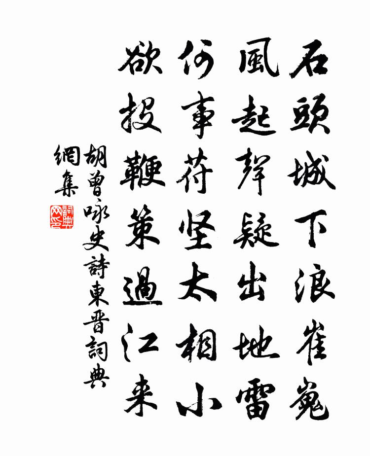 詩詞名句歷史字典書法欣賞書法字典國語詞典說文解字康熙字典古漢語字典標 題 作 者 詩 句 詠史詩東晉作者:胡曾 朝代:唐代詠史詩東晉原文石頭城下浪崔嵬,風起聲疑出地雷。何事苻堅太相小,欲投鞭策過江來。詩詞問答問:詠史詩東晉的作者是誰?答:胡曾問:詠史詩東晉寫於哪個朝代?答:唐代問:詠史詩東晉是什麼體裁?答:七絕胡曾詠史詩東晉書法欣賞詠史詩東晉書法作品注釋全唐詩:卷647-38詩詞推薦送岳師歸贛川余靖〔宋代〕千里起歸思,翛然物外身。海山經處霧,梅嶺到時春。藥更開新楮,庭應長舊筠。年衰重方術,聊此送行人。句石安民〔宋代〕明朝江上一回首,二十四峰何處尋。句張釜〔宋代〕為語邦人休眷戀。次韻吳守四首陳造〔宋代〕園林落粉吹香雪,魏光黃獨步春。明日插花同一醉,小閒譚麈岸綸巾。中秋月寄子由三首蘇軾〔宋代〕舒子在汶上,閉門相對清。鄭子向河朔,孤舟連夜行。頓子雖咫尺,兀如在牢扃。趙子寄書來,水調有餘聲。悠哉洞霄宮良泓孫副宮二首岳珂〔宋代〕養生須及早,器破輒難全。鑒止存心地,涵虛詠性天。寓言隨虢虢,至理本淵淵。玩物先觀象,如師況少年。哨遍(春詞)蘇軾〔宋代〕睡起畫堂,銀蒜押簾,珠幕雲垂地。初雨歇,洗出碧羅天,正溶溶養花天氣。一霎暖風回芳草,榮光浮動,掩皺銀璩授京兆府參軍戲書以示兼呈獨孤郎權德輿〔唐代〕見爾府中趨,初官足慰吾。老牛還舐犢,凡鳥亦將雛。喜至翻成感,痴來或欲殊。因慚玉潤客,應笑此非夫。詠史二首曾鞏〔宋代〕賜也相國尊,子思終不慕。乃知古今士,輕重複內顧。杜少陵祠李流謙〔宋代〕赤紱銀章玉骨寒,焚香再拜淚汍瀾。黃花郪縣仍羞見,好月鄜州只獨看。可是一生長客路,故應千古恨儒官。蚤知夜坐有感並簡與訥教授李新〔宋代〕青燈微火照寒更,不信儒冠誤此生。翻覺廣文官未冷,始聞工部辟初行。三年宦競秋蕭瑟,一枕時情夢戰爭。思過縣學秋試呂祖平〔宋代〕細雨輕寒弄曉晴,紛紛鵠立擁書黌。廣庭賸欲先耆艾,小試聊煩喚弟兄。韞櫝此時增玉價,傳家有子勝金籝。雞蟲放鷓鴣羅鄴〔唐代〕好傍青山與碧溪,刺桐毛竹待雙棲。花時遷客傷離別,莫向相思樹上啼。滿江紅(題快閣和徐宰韻)劉仙倫〔宋代〕快閣東西,鷗邊問、晚晴可喜。鷗解語、既盟之後,兩翁曾倚。笛弄慣聽黃魯直,履聲深識徐淵子。添我來、相對尚書省受誓誡貽太廟裴丞儲光羲〔唐代〕皇家有恆憲,齋祭崇明祀。嚴車伊洛間,受誓文昌里。沉沉雲閣見,稍稍城烏起。曙色照衣冠,虛庭鳴劍履。裴回小渚宋祁〔宋代〕輕煙變渚色,寒浪齧堤痕。鳥去枝猶動,沙頹水暫渾。游山步陸游〔宋代〕蹇驢渺渺過雲邊,旋了三生物外緣。平日視家真逆旅,此行出戶若登仙。飢從野店烹葵飯,困就僧床借枕眠。所恨偈頌一百零一首釋慧性〔宋代〕初三十一,中九下七。更不囊藏,當陽拈出。一氣轉洪鈞,八方開壽域。戲呈南池同游諸兄劉宰〔宋代〕方池事南郊,勝踐又西風。多稼天連碧,芳蓮水映紅。漁歌來席上,鳥影度屏中。想見垂楊里,詩成又暮鍾。江亭鄧深〔宋代〕村舍隨山遠,沙寮傍岸還。輕煙魚復浦,殘雪手巾山。名句推薦怯於邑斗,而勇於寇戰。商鞅《商君書·戰法》 楓林凋翠,寒雁聲悲。趙長卿《柳梢青·過何郎石見早梅》 心心視春草,畏向階前生。王維《雜詩三首 / 雜詠三首》 恨入空帷鸞影獨,淚凝雙臉渚蓮光,薄情年少悔思量。顧敻《浣溪沙·荷芰風輕簾幕香》 燈前目力雖非昔,猶課蠅頭二萬言。陸游《讀書》 不可同日而語畢沅《續資治通鑑·宋紀·宋紀七十三》 一年之計在於春,一日之計在於寅。佚名《增廣賢文·上集》 離人心上秋。吳文英《唐多令·惜別》 名不徒生,而譽不自長。功成名遂。墨子《墨子·02章 修身》 村北村南,穀雨才耕遍。秀麥連岡桑葉賤。范成大《蝶戀花·春漲一篙添水面》