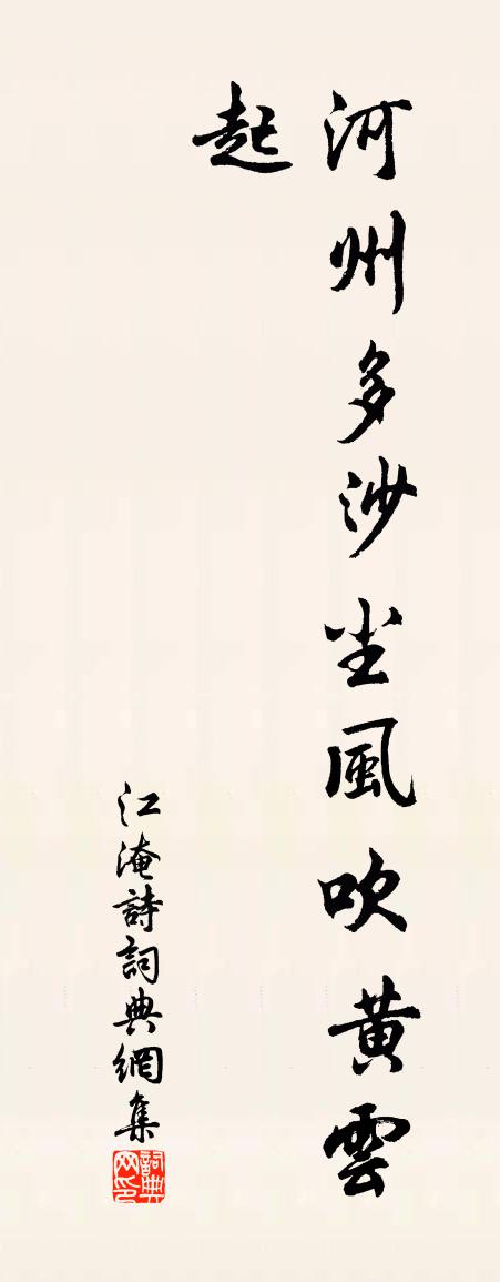 詩詞名句歷史字典書法欣賞書法字典國語詞典說文解字康熙字典古漢語字典標 題 作 者 詩 句 詩作者:江淹 朝代:南北朝詩原文河州多沙塵。風吹黃雲起。詩詞問答問:詩的作者是誰?答:江淹問:詩寫於哪個朝代?答:南北朝問:江淹的名句有哪些?答:江淹名句大全江淹詩書法欣賞詩書法作品詩詞推薦樂府雜曲。鼓吹曲辭。君馬黃李白〔唐代〕君馬黃,我馬白,馬色雖不同,人心本無隔。共作遊冶盤,雙行洛陽陌。長劍既照曜,高冠何赩赫。各有千金裘,送張蘄縣陳師道〔宋代〕接祿才余歲,為邦近故園。案圖三萬戶,鎮靜五千言。雪盡春泥滑,風生沙水昏。猶須放琴客,坐席稍能溫。追感往事陸游〔宋代〕文章光焰伏不起,甚者自謂宗晚唐。歐曾不生二蘇死,我欲痛哭天茫茫!減字木蘭花沈瀛〔宋代〕氣開氣止。引得丹元童子喜。耳里聞風。知是泥丸一竅通。危樓宴酒。不覺黃芽生蕊壽。牙長如何。只覺金花罩體午寢劉錡〔宋代〕寓跡唐興寺,幽窗得晝眠。西風縈破夢,落日亂殘蟬。歲月俄如此,功名豈偶然。五湖秋欲好,誰在釣魚船。風雪晁說之〔宋代〕風雪三冬北,江潮二月時。怪今阿那事,不得作春詩。夜飲頤齋以燈前細雨檐花落為韻分得前字又得胡仲弓〔宋代〕春去如惜別,淚雨滴檐前。酒病思盧橘,吟魂逐杜鵑。堂虛香穗直,風定燭花圓。萬籟沈清夜,瓦溝聞落泉。和趙南塘離支五絕劉克莊〔宋代〕輦轂嘗新著價高,土人棄擲梗弁髦。不嗔園客工榆竊,絕喜天公享老饕。謁岳王墓袁枚〔清代〕江山也要偉人扶,神化丹青即畫圖。賴有岳於雙少保,人間才覺重西湖。酹江月(和江南惜春)何夢桂〔宋代〕三分春色,更消得風雨,幾番零落。年少不來春老去,空負省薇階藥。燕子飛忙,杜鵑啼殺,總為誰悲樂。臨春結同李魯二郎中游三茅觀王炎〔宋代〕路入疏梅密竹間,俯看水墨畫湖山。玉妃妒我清游好,剪水飛花作苦寒。永遇樂王仲甫〔宋代〕風折新英,雨肥繁實,又還如豆。玉核初成,紅腮尚淺,齒軟酸透。粉牆低亞,佳人驚見,不管露沾襟袖。一枝釵麥積山李師中〔宋代〕路入青松翠靄間,斜陽倒影入溪灣。此中猿鶴休相笑,謝傅東歸自有山。癸丑生朝舟行有感楊冠卿〔宋代〕懸弧初度日,鞠育念劬勞。未了詩書債,見輕兒女曹。爭知兩蝸角,等是一鴻毛。所貴盡忠考,結交英與豪。南歌子郭世模〔宋代〕玉醆浮瓊蟻,金奩吐翠虬。醉鄉歸路接溫柔。暗卜幽期低約、笑藏鬮。索去眉先鎖,將言淚已流。小窗移火更遲留和酬張井見贈魏野〔宋代〕溪上閒居四十春,春溪蘭佩蕙為紳。自知吟詠非經濟,誰道機謀學渭濱。三尺焦桐勝面友,數家老叟是比鄰。少年夏日題方師院施肩吾〔唐代〕火天無處買清風,悶發時來入梵宮。只向方師小廊下,回看門外是樊籠。代張京尹賀皇太子生辰三首彭龜年〔宋代〕青禁羅雞戟,朱明出虎闈。布宣當浩穰,簡樂著精微。有志窺成畫,無材守一圻。徒能歌聖子,重潤更重暉。送史殿省典封州林逋〔宋代〕馬援疏蠻色,銅標何可窮。人煙時亦有,海色自如空。髭發梅分白,旌旗瘴減紅。惟應蒔藥罷,都在酒醪中。次韻酬杳仲文春日宴集項安世〔宋代〕步屧隨春亦偶來,堂前雙燕莫深猜。明年我自滄浪去,無限人從紫陌回。寶扇臨風聽曲度,繡簾低日看花開。一尊名句推薦唯見鴻雁飛,令人傷懷抱。高適《登百丈峰二首》 日暖泥融雪半消,行人芳草馬聲驕。杜牧《宣州送裴坦判官往舒州時牧欲赴官歸京》 推手遽止之,濕衣淚滂滂韓愈《聽穎師彈琴》 別來春半,觸目柔腸斷。李煜《清平樂·別來春半》 蝴蝶不傳千里夢,子規叫斷三更月。辛棄疾《滿江紅·點火櫻桃》 二十四橋仍在,波心蕩、冷月無聲。姜夔《揚州慢·淮左名都》 才過清明,漸覺傷春暮。李冠《蝶戀花·春暮》 兒女已在眼,眉目略不省。陳師道《示三子》 無言獨上西樓,月如鉤。寂寞梧桐深院鎖清秋。李煜《相見歡·無言獨上西樓》 明眸皓齒誰復見,只有丹青余淚痕。蘇軾《虢國夫人夜遊圖》