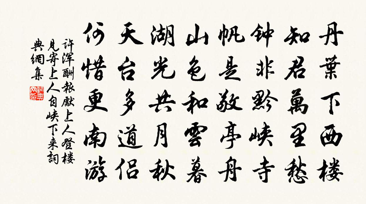 丹葉下西樓,知君萬里愁。鍾非黔峽寺,帆是敬亭舟。
