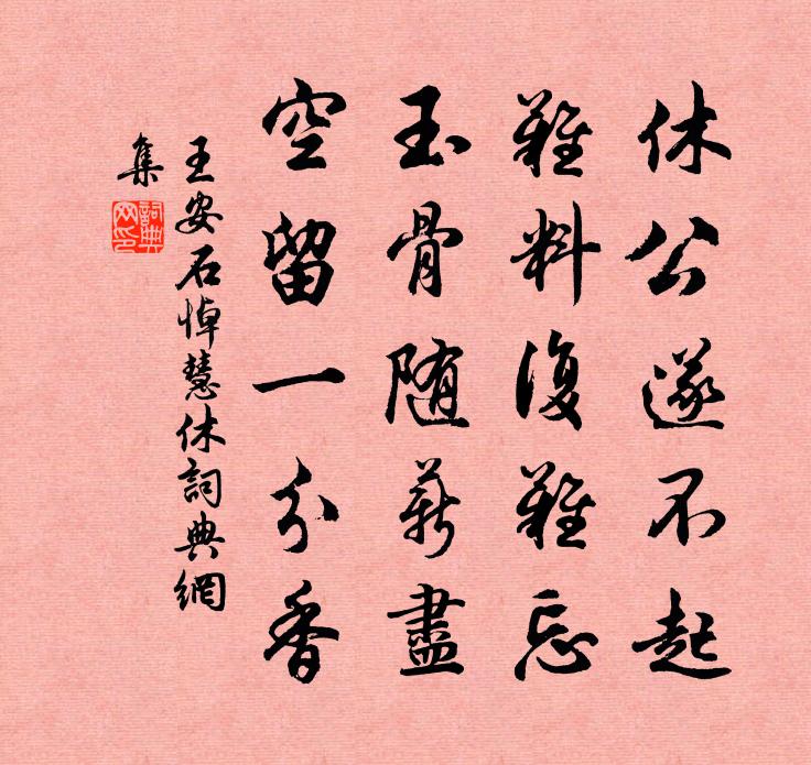 詩詞名句歷史字典書法欣賞書法字典國語詞典說文解字康熙字典古漢語字典標 題 作 者 詩 句 悼慧休作者:王安石 朝代:宋代悼慧休原文休公遂不起,難料復難忘。玉骨隨薪盡,空留一分香。詩詞問答問:悼慧休的作者是誰?答:王安石問:悼慧休寫於哪個朝代?答:宋代問:王安石的名句有哪些?答:王安石名句大全王安石悼慧休書法欣賞悼慧休書法作品詩詞推薦春意釋行海〔宋代〕生來不識舊京春,望斷春風滿眼塵。二月西湖好花柳,相逢都是太平人。契丹帳蘇頌〔宋代〕馬牛到處即為家,一卓穹廬數乘車。千里山川無土著,四時畋獵是生涯。酪漿羶肉夸希品,貂錦羊裘擅物華。種類題來將軍括蒼送行卷方回〔宋代〕將軍從元戎,六年守襄陽。大小百餘戰,裂衣裹金瘡。相逢說往事,須髯猶奮張。歲晚不得志,巡邏分窮鄉。窮鄉和徐徑坂趙汝騰〔宋代〕予歸假闔廬,守白於我館。風雨已遁逃,雲山況奇觀。徑坂形聲詩,蓬萊名遂遠。求仁居之安,是宅靡有間。鐵壁釋慧開〔宋代〕巍然一座黑金城,縫罅全無及戶扃。堪笑英雄難進步,聖凡到此絕途程。思岳禪人求贊釋宗杲〔宋代〕兩耳卓朔口門窄,兩眼皮薄鼻露竅。一生大本謾瀾翻,何曾唱得胡家調。客懷李燾〔宋代〕壯矣府中縣,索如城外村。墨池今掃跡,石筍舊余根。風急漢弦斷,雨多秦鏡昏。新秋一懷古,情緒若為論。囉嗊曲·那年離別日劉采春〔唐代〕那年離別日,只道往桐廬。桐廬人不見,今得廣州書。和程大卿新辟諸寺門陳襄〔宋代〕政絕多門寺卻通,靈山勝境盡牢籠。應憐去魯遲遲意,令遍諸天國土中。送翰林張學士嶺南勒聖碑司空曙〔唐代〕漢恩天外洽,周頌日邊稱。文獨司空羨,書兼太尉能。出關逢北雁,度嶺逐南鵬。使者翰林客,餘春歸灞陵。和趙郎中見戲二首(趙以徐妓不如東武詩中見戲雲只有當時燕子樓)蘇軾〔宋代〕燕子人亡三百秋,捲簾那復似揚州。西行未必能勝此,空唱崔徽上白樓。我擊藤床君唱歌,明年六十奈君何。醉顛馴鹿歐陽修〔宋代〕朝渴飲清池,暮飽眠深柵。◇媿主人恩,自非殺身難報德。主人施恩不待報,哀爾胡為網羅獲。南山藹藹動春陽,送趙仲禮入大理寺簿孫應時〔宋代〕決科遄入幕,更秩遂登朝。龍化無重浪,鵬摶即九霄。仙凡端有命,一壤一何遼。願踵門庭盛,勛庸日月昭。小閣晨起陳與義〔宋代〕紙帳不知曉,雅鳴吾當興。開窗面老松,相對寒崚嶒。幸無公家責,欲懶還不能。汲井頮我面,銅盆旋敲冰。梳頭元衡過邢園同廣聲終日坐於習堂梅樹之下得長趙蕃〔宋代〕一聞茅屋數株梅,三徑頻成為我開。剩有游蜂能掠蕊,寂無飢雀下行苔。長吟共惜頻驚落,久坐何妨晚始回。為語太平州陳大監挽章周南〔宋代〕人稱扁畫更傳詩,飛到青冥卻自遲。今代人門能有幾,傷心年壽遽如斯。百年喬木虬枝在,千里棠陰曉角悲。日暮試院和陳蕃仲酴醿兩絕葛立方〔宋代〕幽姿不分不山叢,合在江梅季盂中。香破鶴林真{上穴下左爿右臬}語,肯教七七擅神通。頌古九十八首釋印肅〔宋代〕徹見無私慾度人,如張羅網罩飛禽。千萬之中不得一,好申供養老婆心。湘中送人余靖〔宋代〕離謳方揭耳,別緒已悽然。草蔚湘纍浦,花殘蜀魄天。嶷山晴拂漢,啼竹冷澄煙。後夜思君意,空歌皓月篇。和賈陶二老二首胡寅〔宋代〕節物匆匆度,邊烽幸不傳。名花空雨墜,秀樹已雲連。孤負杯蓮倒,蕭條燭蕊偏。但欣民小泰,凝寢有爐煙。名句推薦上苑風煙好,中橋道路平。白居易《洛橋寒食日作十韻》 天地無全功,聖人無全能,萬物無全用。列子及其弟子《列子·天瑞》 坡謂西湖,正如西子,濃抹淡妝臨鏡台。劉過《六州歌頭·寄稼軒承旨》 眼前直下三千字,胸次全無一點塵。于謙《觀書》 客子光陰詩卷里,杏花訊息雨聲中。陳與義《懷天經智老因訪之》 莫信直中直,須防仁不仁。佚名《增廣賢文·上集》 寺憶曾游處,橋憐再渡時。杜甫《後游》 冰合大河流,茫茫一片愁。納蘭性德《菩薩蠻·白日驚飈冬已半》 陰陰溪曲綠交加,小雨翻萍上淺沙。晁沖之《春日·陰陰溪曲綠交加》 檳榔無柯,椰葉無陰。左思《三都賦》