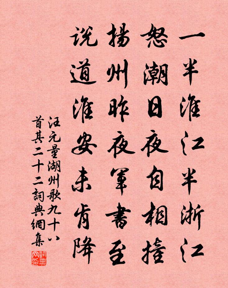 一半淮江半浙江,怒潮日夜自相撞。揚州昨夜軍書至,說道淮安未肯降。