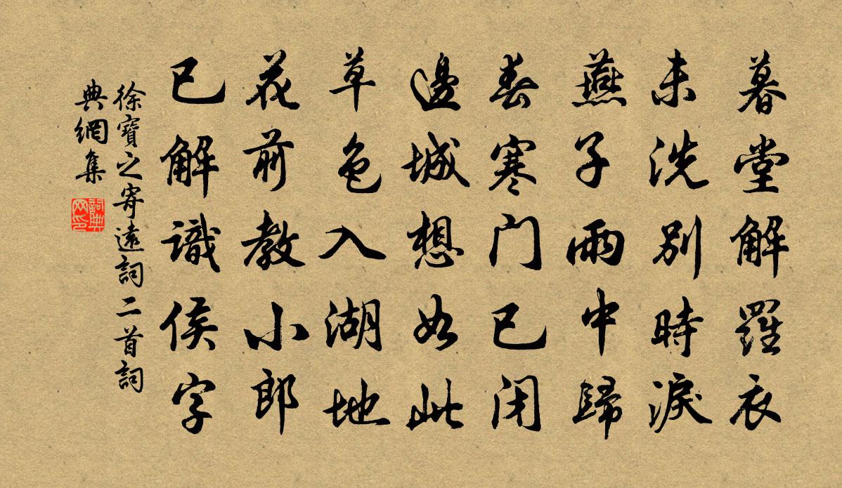 詩詞名句歷史字典書法欣賞書法字典國語詞典說文解字康熙字典古漢語字典標 題 作 者 詩 句 寄遠詞二首作者:徐寶之 朝代:宋代寄遠詞二首原文暮堂解羅衣,未洗別時淚。燕子雨中歸,春寒門已閉。邊城想如此,草色入湖地。花前教小郎,已解識侯字。詩詞問答問:寄遠詞二首的作者是誰?答:徐寶之問:寄遠詞二首寫於哪個朝代?答:宋代徐寶之寄遠詞二首書法欣賞寄遠詞二首書法作品詩詞推薦魚遊春水張元乾〔宋代〕芳洲生苹芷。宿雨收晴浮暖翠。煙光如洗,幾片段預告飛點淚。清鏡空餘白髮添,新恨誰傳紅綾寄。溪漲岸痕,浪吞沙仙姑對奕圖黃庚〔宋代〕碧玉花冠素錦裳,對拈棋子費思量。終年不下神仙著,想是蓬萊日月長。坐池上看水偶成五絕句宋庠〔宋代〕橋腳時依樹,階唇便作河。初無心可洗,誰作洗心歌。謁雩都靈濟大師白玉蟾〔宋代〕雪裡僧伽已寂然,不知香火幾何年。殷勤琢雪雕冰語,懺悔嘲風弄月愆。林壑煙霞容有分,廟堂鐘鼎得無緣。天池憶江南·江南好白居易〔唐代〕江南好,風景舊曾諳。日出江花紅勝火,春來江水綠如藍。能不憶江南。雨霰作雪不成大風散雲月色皎然陸游〔宋代〕數間茅屋寄蓬蒿,天遣來歸息我勞。月可一庭陳素練,風酣萬木起驚濤。病侵齒髮才雖盡,酒挾江山氣尚豪。安得宿大明寺郭印〔宋代〕歷覽成終日,禪房處處深。野僧應怪見,俗客可幽尋。煙竹寒垂幄,風松靜鼓琴。清談不知寐,明月到天心。初夏病中錢易〔宋代〕抱病經清暑,空庭掃紫苔。花籬妨蝶過,桐井引禽來。徒有文園渴,更有漳浦才。可憐余滯骨,無復動心灰。送劉時可縣丞奉母游岷山程公許〔宋代〕西爽抗層霄,南牆回見招。乘春扶鶴馭,披霧過龍橋。香火祈親壽,煙霞遠俗囂。歸來索吟稿,起我意逍遙。子規劉克莊〔宋代〕一聲聲勸人歸去,啼血江南幾樹花。我被微官拘束在,汝緣何事不歸家。和史館相公上元觀燈曾鞏〔宋代〕九衢仙仗豫游歸,寶燭星繁換夕暉。傳醆未斜清禁月,散花還拂侍臣衣。天香暗度金虬暖,宮扇雙開彩鳳飛。法曲霜天曉角(金山吞海亭)黃機〔宋代〕長江千里。中有英雄淚。卻笑英雄自苦,興亡事、類如此。浪高風又起。歌悲聲未止。但願諸公強健,吞海上、醉招六賢之歌王巳〔宋代〕矩矱兮姱美,風節兮凌厲。鶴媒兮一空,宇宙兮莫窮。六賢去兮不復返,魂漂搖兮渺何在。飛揚知里兮層冰峨峨,霜天曉角吳潛〔宋代〕小山幽徹。遍地堆香雪。只恐今宵入夢,夢到處、魂孤絕。八公頭已雪。淮南分半席。莫道淹留何事,且長嘯、對緣識宋太宗〔宋代〕蔟蔟排弦聲流美,因風獨弄無宮徵。閒庭引思道情中,五音不入行人耳。仰望雲霄聽未足,何期到了不成曲。秋蟬沁園春(和劉潛夫送孫花翁韻)劉鎮〔宋代〕誰似花翁,長年湖海,蹇驢弊裘。想江塵醉帽,青樓歌扇,揮金談笑,惜玉風流。吳下阿蒙,江南老賀,肯為良田平綠軒即事莫若拙〔宋代〕結屋地猶淺,鉤簾景盡還。嵐光煙樹外,野色酒杯間。別墅從渠樂,清吟屬我閒。狎鷗時點白,機事不相關。答韋山人隱起龍文藥瓢歌皎然〔唐代〕野人藥瓢天下絕,全如渾金割如月。彪炳文章智使然,生成在我不在天。若言有物不由物,何意中虛道性全。韋生贈余月心五首文天祥〔宋代〕子心月其明,子術星之數。為月詰眾星,不知何以故。南陽廣文欲於荊襄卜居因而有贈皮日休〔唐代〕地脈從來是福鄉,廣文高致更無雙。青精飯熟雲侵灶,白礻劫裘成雪濺窗。度日竹書千萬字,經冬朮煎兩三缸。鱸名句推薦鶯初解語,最是一年春好處。蘇軾《減字木蘭花·鶯初解語》 草草興亡休問,功名淚、欲盈掬。黃機《霜天曉角·儀真江上夜泊》 稚子金盆脫曉冰,彩絲穿取當銀鉦。楊萬里《稚子弄冰》 愁因薄暮起,興是清秋發。孟浩然《秋登蘭山寄張五》 金井梧桐秋葉黃,珠簾不捲夜來霜。王昌齡《長信怨》 渡頭楊柳青青。枝枝葉葉離情。晏幾道《清平樂·留人不住》 莫道不銷魂,簾卷西風,人比黃花瘦。李清照《醉花陰·薄霧濃雲愁永晝》 信言不美,美言不信。老子《老子·德經·第八十一章》 總是愁媒,欲訴誰消遣蘇軾《蝶戀花·蝶懶鶯慵春過半》 歲暮鋤犁傍空室,呼兒登山收橡實。張籍《野老歌 / 山農詞》