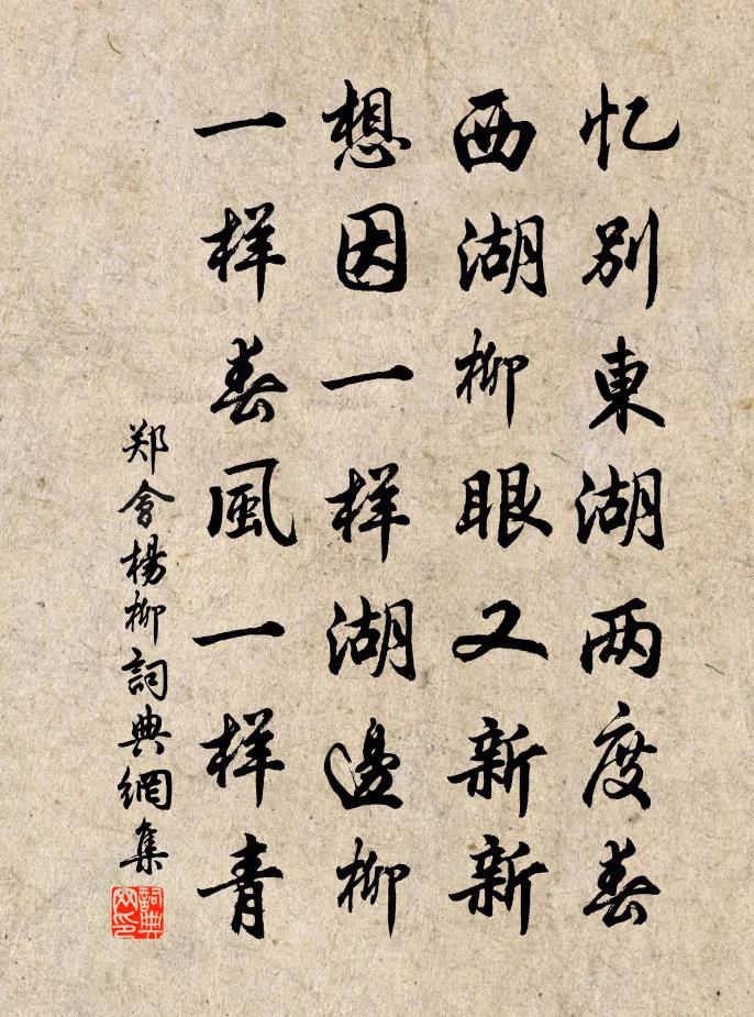 詩詞名句歷史字典書法欣賞書法字典國語詞典說文解字康熙字典古漢語字典標 題 作 者 詩 句 楊柳作者:鄭會 朝代:宋代楊柳原文憶別東湖兩度春,西湖柳眼又新新。想因一樣湖邊柳,一樣春風一樣青。詩詞問答問:楊柳的作者是誰?答:鄭會問:楊柳寫於哪個朝代?答:宋代鄭會楊柳書法欣賞楊柳書法作品詩詞推薦六言詩十首 其七嵇康〔兩漢〕東方朔至清。外似貪污內貞。穢身滑稽隱名。不為世累所攖。所欲不足無營。次韻夔府王待制寄示巫山圖喻良能〔宋代〕碧嶂嶙峋夔子國,白雲縹緲昭君鄉。平生不識巫山面,今日巫山到眼傍。淳祐祭海神十六首佚名〔宋代〕籩豆有楚,貳觴斯旅。神其醉飽,式燕以序。百靈秘怪,蜿蜒飛舞。錫我祺祥,有永終古。登西山望硤石湖白居易〔唐代〕菱歌清唱棹舟回,樹里南湖似鑒開。平障煙浮低落日,出溪路細長新苔。居民地僻常無事,太守官閒好獨來。猶憶阮郎歸王炎〔宋代〕幾回幽夢繞家山。怯聞梅弄殘。瀟瀟黃落客氈寒。不禁衣頻寬。身外事,意闌珊。人間行路難。尋思百計不如閒。農謠方岳〔宋代〕春雨初晴水拍堤,村南村北鵓鴣啼。含風宿麥青相接,刺水柔秧綠未齊。武夷漫興二首胡炎〔宋代〕棹轉溪回生面開,此峰竟作別峰猜。雲堆石路迷山腳,忽聽雞聲縹緲來。送趙守備解南漳赴湖北倉陳淳〔宋代〕前年邦人迎公來,人人喜公來何暮。今年邦人送公去,人人恨公去何遽。公在南漳甫三年,仁政率起百年慕。在民偈頌一百二十三首釋崇岳〔宋代〕空手把鋤頭,蚊子上鐵牛。步行騎水牛,黃河水逆流。人從橋上過,猛虎當路坐。橋流水不流,佛祖是仇讎。偈頌二十一首釋堅璧〔宋代〕漚澄巨浸無蹤跡,月轉層巒顯大功。剎海毫芒無欠剩,空山和月撼松風。故邕管安撫李思永挽章三首曹彥約〔宋代〕發廩寧憂歲,防邊不待秋。古為漢循吏,今說李成州。勁氣橫關隴,神光射鬥牛。竹林天下士,一第可無求。寄夾谷書隱何夢桂〔宋代〕巔崖一落費攀躋,汲綆千尋重挈提。往事雪中鴻印跡,舊恩堂上燕銜泥。錢塘東去江濤遠,銀漢西流斗柄低。天地雨師五首佚名〔宋代〕寅恭我神,惟上之使。分成康年,民溪休祉。折俎既登,惡酒既盈。匪薦是專,配以明誠。中秋廣利寺僧〔宋代〕吾心似秋月,碧潭清皎潔。無手堪比倫,教我如何說。鎖窗寒/瑣寒窗王沂孫〔宋代〕出谷鶯遲,踏沙雁少,殢陰庭宇。東風似水,尚掩沈香雙戶。憑莓階、雪痕乍鋪,那回已趁飛梅去。奈柳邊占得,寄贈子正律師釋智圓〔宋代〕威儀閒淡許誰同,苔徑依然絕履蹤。霜井濾泉侵曉色,雪房欹枕夢諸峰。寒生靜榻吟中月,冷答平湖講次鍾。盡日蘿衣洞何澹〔宋代〕蘿衣晴帶護煙蓑,楚國狂夫尚作歌。石影到溪千丈勁,藤痕入目八分少。泉分小白山中雨,衣取雲門寺頂荷。洞口青蓮池上客 景金本注云,二首本名青玉案丘處機〔元代〕重陽羽化登仙路。兄弟如何措。各各勤修生覺悟。通無入有,靜思忘念,密考丹經祖。一時浩劫真容露。放蕩情懷州宴席上賦牡丹得日字薛師石〔宋代〕粉淡與妖紅,占盡陽和出。春去在商量,更費吟人筆。此是洛陽花,尚帶長安日。持上使君墀,寶瓶分甲乙。題驛壁陳杰〔宋代〕驊騮捕鼠不如狸,鏌乾綴履不如錐。過都歷塊成何事,剸虎裁蛟彼一時。名句推薦青青一樹傷心色,曾入幾人離恨中。白居易《青門柳》 飛錫離鄉久,寧親喜臘初。錢起《送外甥懷素上人歸鄉侍奉》 善有善報,惡有惡報。佚名《增廣賢文·上集》 風也蕭蕭,雨也蕭蕭,瘦盡燈花又一宵。納蘭性德《採桑子·誰翻樂府淒涼曲》 一身虜雲外,萬里胡天西。岑參《早發焉耆懷終南別業》 含愁獨倚閨幃,玉爐煙斷香微。毛熙震《清平樂·春光欲暮》 漢兵已略地,四方楚歌聲。虞姬《和項王歌》 君知否,是山西將種,曾系詩盟。劉過《沁園春·張路分秋閱》 團扇不搖風自舉,盈盈翠竹,纖纖白薴,不受些兒暑。文徵明《青玉案·庭下石榴花亂吐》 它山之石,可以攻玉。佚名《鶴鳴》