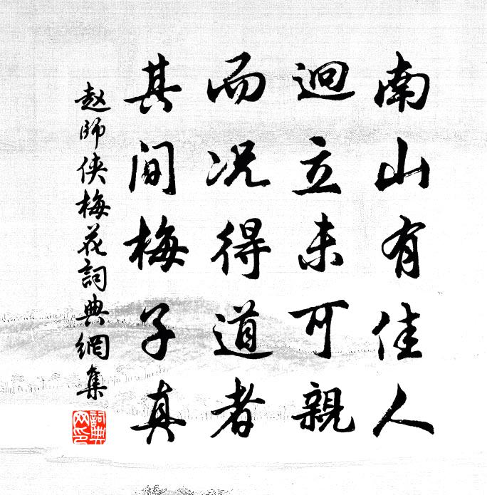 詩詞名句歷史字典書法欣賞書法字典國語詞典說文解字康熙字典古漢語字典標 題 作 者 詩 句 梅花作者:趙師俠 朝代:宋代梅花原文南山有佳人,迥立未可親。而況得道者,其間梅子真。詩詞問答問:梅花的作者是誰?答:趙師俠問:梅花寫於哪個朝代?答:宋代趙師俠梅花書法欣賞梅花書法作品詩詞推薦桃源僧舍看花段成式〔唐代〕前年帝里探春時,寺寺名花我盡知。今日長安已灰燼,忍能南國對芳枝。題金陵長乾寺塔賀鑄〔宋代〕霞構雲扉不著關,甍檐開處見人間。斷牆廢井連東第,白塔青松對北山。昨夜桂娥奔月去,經秋芝蓋御風還。玉虛烏鵲李覯〔宋代〕烏鵲翩翩競羽毛,南飛無樹過良宵。就中管得他人事,祗與天孫倩作橋。立春帖子太上皇帝閣周必大〔宋代〕一年好處是初春,十閣爭先奉聖人。彩勝寶幡簪帽巧,蘭芽蔬甲族盤新。上平西劉處玄〔元代〕想人生,老與少,似春秋。恰幼年、卻變白頭。莫爭空假,無常氣斷臥荒丘。大都三萬六千日,多病多愁。崇真道次李晉仲同游南岩韻程公許〔宋代〕風林舞霜葉,野水收寒溪。旭日愛清美,良友欣招攜。近游南岩麓,遠躡樵人蹊。改未變野處,地已呈榱題。鍊石病告作寄武平湖內翰宋祁〔宋代〕病擁綈袍雪領垂,當關重疊報晨暉。夷吾畏事將成吃,蘧瑗增年轉悟非。宦路風波頻歲劇,故山薇蕨每春肥。餘生山居雜詩九十首曹勛〔宋代〕招客圖客歡,不圖能病客。既醉失匕箸,吐茵墮巾幘。何堪款曲意,貽念風月夕。拂旦往問訊,慚恨見顏色。丹陽送韋參軍嚴維〔唐代〕丹陽郭里送行舟,一別心知兩地秋。日晚江南望江北,寒鴉飛盡水悠悠。清涼寺白雲庵王安石〔宋代〕庵雲作頂峭無鄰,衣月為衿靜稱身。木落岡巒因自獻,水歸洲渚得橫陳。碧泉九日有感胡宏〔宋代〕祝融地勢東南俯,西北星辰拱漢關。冷落山河憑玉幾,凋殘名物損朱顏。西風凜凜鵬空摶,朔雪飄飄雁亦寒。正恐諸家牡丹已謝小圃忽開兩朵皆大如斗戲題二絕劉克莊〔宋代〕地荒豈有雕欄護,日烈元無繡幕遮。九十種俱開謝了,末稍開到後村花。送方漳浦劉克莊〔宋代〕頗聞送者詩盈軸,我有樵歌子試聽。岩邑雖然人所畏,畲民均是物之靈。二升飯了官中事,一字廉真座右銘。見說抵袁陽施德〔宋代〕聲聲啼鳴叫鉤輈,山自巑岏水自流。西望長沙三百里,行人道是古袁州。曲磵縈紆樹密蒙,放船正值楝花風。王程卜居杜甫〔唐代〕浣花流水水西頭,主人為卜林塘幽。已知出郭少塵事,更有澄江銷客愁。無數蜻蜓齊上下,一雙鸂鶒對沉浮。東行吳侍郎生朝宋庠〔宋代〕朝端舊記生賢日,使節臨門恩有秩。詔書感會形溫辭,宴品豐華動私室。降崧孕昴誠不誣,史簡詩絃互褒述。賢人采真洞郭印〔宋代〕竹洞深深處,斯游契采真。故來非俗客,同道是幽人。日暗能休影,風清不受塵。行行無限意,滿目漲修筠。菩薩蠻(題蓮花庵)呂勝己〔宋代〕嶺猿嘯罷千山碧。小庵虛室團團白。庵在小山頭。從來少客游。道人方打坐。舉袖來迎我。問我此來因。拈花與道樂全先生生日,以鐵拄杖為壽,二首蘇軾〔宋代〕二年相伴影隨身,踏遍江湖草木春。擿石舊痕猶在眼,閉門高節慾生鱗。畏途自衛真無敵,捷徑爭先卻累人。遠寄送張僕射朝見畢歸鎮權德輿〔唐代〕青光照目青門曙,玉勒雕戈擁騶馭。東方連帥南陽公,文武吉甫如古風。獨奉新恩來謁帝,感深更見新詩麗。共看名句推薦只有精忠能報國,更無樂土可為家。 * 《元旦口占用柳亞子懷人韻》 讀書法,有三到。心眼口,信皆要。李毓秀《弟子規·餘力學文》 無聊成獨臥,彈指韶光過。納蘭性德《菩薩蠻·新寒中酒敲窗雨》 碧溪影里小橋橫,青簾市上孤煙起。謝逸《踏莎行·柳絮風輕》 患名之不立,不患年之不長。陳壽《三國志·魏書·劉司馬梁張溫賈傳》 京口瓜洲一水間,鐘山只隔數重山王安石《泊船瓜洲》 垂柳不縈裙帶住。漫長是、系行舟。吳文英《唐多令·惜別》 飛錫離鄉久,寧親喜臘初。錢起《送外甥懷素上人歸鄉侍奉》 奢侈者鮮有不敗李大師、李延壽《南史·列傳·卷四十五》 不知庭霰今朝落,疑是林花昨夜開。宋之問《苑中遇雪應制》