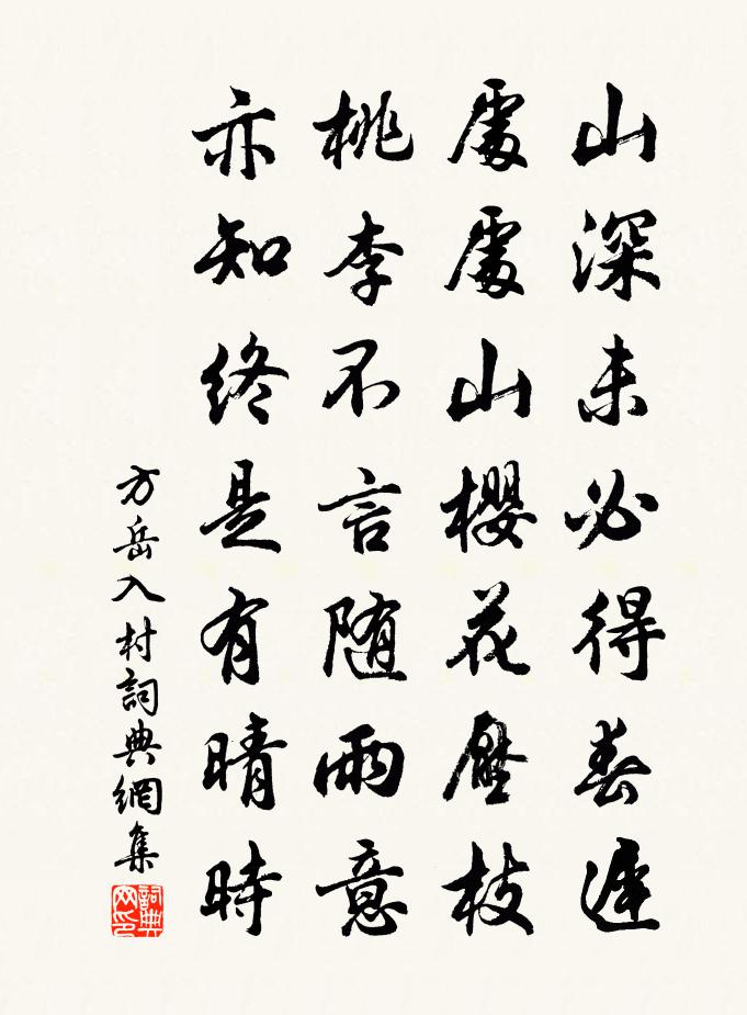詩詞名句歷史字典書法欣賞書法字典國語詞典說文解字康熙字典古漢語字典標 題 作 者 詩 句 入村作者:方岳 朝代:宋代入村原文山深未必得春遲,處處山櫻花壓枝。桃李不言隨雨意,亦知終是有晴時。詩詞問答問:入村的作者是誰?答:方岳問:入村寫於哪個朝代?答:宋代方岳入村書法欣賞入村書法作品詩詞推薦趙知監惠牡丹二首鄭剛中〔宋代〕遠沖嵐霧香如故,再照春陽色轉紅。親手滿瓶添淨水,一時回獻梵王宮。李商叟秀才求齋名於王元渤以養源名之求詩曾幾〔宋代〕學問直須富有,文章政要深藏。玉在山中輝潤,蘭生林下芬芳。和安秀才次晉昌居士留題壁石林逋〔宋代〕岑寂衡門題鳳處,嶺雲庭樹似無依。湖濱儜立應相望,一信樵風晚未歸。水調歌頭(留別茶漕二使者)京鏜〔宋代〕數月已辦去,今日始成行。天公憐我,特地趁曉作霜晴。萬里賓士為米,四載淹留為豆,自笑太勞生。父老漫遮道浣溪沙·霜日明霄水蘸張孝祥〔宋代〕霜日明霄水蘸空。鳴鞘聲里繡旗紅。淡煙衰草有無中。 萬里中原烽火北,一尊濁酒戍樓東。酒闌揮淚向悲風。贈永崇李將軍充襄陽制置使李洞〔唐代〕拜官門外發輝光,宿衛陰符注幾行。行處近天龍尾滑,獵時陪帝馬鬃香。九城王氣生旗隊,萬里寒風入箭瘡。從此徐師川典祀廬山延真觀用送駒父韻餞別四首王銍〔宋代〕徐稚前風在,何勞白首歸。書來寄文錦,詩報守寒機。駑驥難同力,鸞凰任自飛。前村幽獨意,且放酒淋衣。西廟古檜和卞南仲韻仇遠〔宋代〕奇木有古意,愛古人亦奇。嘉禾老君觀,毗陵烈帝祠。二檜棟樑物,俱逐劫火移。朅來溧城西,見此鐵石姿。靈狸以右軍書數種贈邱十四黃庭堅〔宋代〕邱郎花氣如春景晴,風暄百果草木生。眼如霜鶻齒玉冰,擁花環坐愛花明。松花泛硯摹真行,字身藏穎秀勁清,問姑蘇台上月曹勛〔宋代〕姑蘇台上月,倒景浮生河。石樑臥長洲,垂虹躍金波。叢薄散蘭麝,水底流笙歌。歌聲示斷樽前舞,越兵夜入三江清平樂晁補之〔宋代〕寒風雁度。聲向千門去。也到文闈校文處。也到文君繡戶。背燈解帶驚魂。長安此夜秋聲。早是夜寒不寐,五更風送楊寘序歐陽修〔宋代〕予嘗有幽憂之疾,退而閒居,不能治也。既而學琴於友人孫道滋,受宮聲數引,久而樂之,不知其疾之在體也。夫蝶戀花黃庭堅〔宋代〕海角芳菲留不住。筆下風生,吹入青雲去。仙籍有名天賜與。致君事業安排取。要識世間平坦路。當使人人,各有登南紀樓胡寅〔宋代〕西望巫峽峰,東望洞庭湖。南望大江橫,北望楚王墟。平時十萬戶,鴛瓦百賈區。夜半車擊轂,差鱗銜舳艫。麥麻頌古十七首釋道行〔宋代〕落葉歸根,鐵牛當路。來時無口,索監得醋。金槌不動落群機,列聖叢中第六祖。秋閨怨詩陰鏗〔南北朝〕獨眠雖已慣。秋來只自愁。火籠恆暖腳。行障鎮床頭。眉含黛俱斂。啼將粉共流。誰能無別恨。唯守一空樓。和{矮去女換幾}齋雜詠趙希逢〔宋代〕急風狂雨三月頭,門前一水漲清流。幾回送客滄江上,愁逐亂紅飛遠洲。次韻子由所居六詠蘇軾〔宋代〕堂前種山丹,錯落馬腦盤。堂後種秋菊,碎金收辟寒。草木如有情,慰此芳歲闌。幽人正獨樂,不知行路難。詩人減蘭十梅(並序·總題)佚名〔宋代〕竊以花雖多品,梅最先春。始因暖律之潛催,正直冰澌之初泮。前村雪裡,已見一枝;山上驛邊,亂飄千片。寄江重陽後絕句五首方回〔宋代〕梧桐疏葉間微黃,年例江南未肯涼。菊自此花三兩月,樽前日日是重陽。名句推薦臨官莫如平,臨財莫如廉。劉向《說苑·政理》 夜市賣菱藕,春船載綺羅。杜荀鶴《送人游吳》 萬里乘雲去復來,隻身東海挾春雷。秋瑾《黃海舟中日人索句並見日俄戰爭地圖》 玉門山嶂幾千重,山北山南總是烽。王昌齡《從軍行七首》 士有妒友,則賢交不親;君有妒臣,則賢人不至。荀子《荀子·大略》 故人書報,莫因循、忘卻蓴鱸。辛棄疾《漢宮春·會稽秋風亭觀雨》 長風連日作大浪,不能廢人運酒舫。元結《石魚湖上醉歌》 此心終合雪,去已莫思量。虛中《送遷客》 晻靄寒氛萬里凝,闌乾陰崖千丈冰。岑參《天山雪歌送蕭治歸京》 黃沙百戰穿金甲,不破樓蘭終不還。王昌齡《從軍行七首·其四》