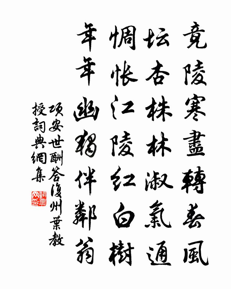 詩詞名句歷史字典書法欣賞書法字典國語詞典說文解字康熙字典古漢語字典標 題 作 者 詩 句 酬答覆州葉教授作者:項安世 朝代:宋代酬答覆州葉教授原文竟陵寒盡轉春風,壇杏株林淑氣通。惆悵江陵紅白樹,年年幽獨伴鄰翁。詩詞問答問:酬答覆州葉教授的作者是誰?答:項安世問:酬答覆州葉教授寫於哪個朝代?答:宋代項安世酬答覆州葉教授書法欣賞酬答覆州葉教授書法作品詩詞推薦喜遷鶯令(送何晉之大著兄趨朝,歌以侑酒)張元乾〔宋代〕文倚馬,筆如椽。桂殿早登仙。舊遊冊府記當年。袞繡合貂蟬。慶天申,瞻玉座,鵷鷺正陪班。看君穩步過花磚。六朝門謝舉周曇〔唐代〕叛奴逃數豈堪留,忠節曾無肯到頭。朱異早能同遠見,青衫寧假帝登樓。八音歌二首答黃魯直晁補之〔宋代〕金丹妙通靈,子有遺世術。石髓不成餐,閔予多滯骨。絲聲紡事暮,搗聲寒事來。竹葉將菊花,及時同一杯。匏器後巫山高一首范成大〔宋代〕凝真宮前十二峰,兩峰娟妙翠插空;余峰競秀尚多有,白壁蒼崖無數重。秋江漱石半山腹,倚天削鐵荒行蹤。造化早起李商隱〔唐代〕風露澹清晨,簾間獨起人。鶯花啼又笑,畢竟是誰春。寄吳處厚邵亢〔宋代〕流年直是隙中駒,別後情懷懶似疏。天上又頒新歲歷,床頭未答故人書。殷勤魚雁功曹檄,狼藉杯盤上客魚。好在送鄧制乾二首項安世〔宋代〕去國逢人避,書門斷客傅。聞知西嶺雪,忙上右襟船。未了情燈話,仍沖白鳥煙。江湖逢倚相,將夢寄渠邊。慶清朝(上樓大參·十一月十五)李廷忠〔宋代〕天啟重光,地鐘上瑞,有人起自東山。當年謝傳,幾曾鶴髮貂冠。不似文章雋老,重來鳴步斗樞間。洪鈞轉,五原春色滿皇州(一作薛能詩)滕邁〔唐代〕藹藹復悠悠,春歸十二樓。最明雲里闕,先滿日邊州。色媚青門外,光搖紫陌頭。上林榮舊樹,太液鏡新流。暖帶娶妻吟邵雍〔宋代〕人之娶妻,容德威儀。儻或生子,不臯則夔。乾道三年九月宴罷胡銓〔宋代〕晚年種德聽和鑾,露冷林深綻錦團。金鳳花殘秋欲半,木犀香遠晚初寒。擬將艾制候朝紱,愧把蘆芽易釣竿。早與錢王郎中赴湖南倉許應龍〔宋代〕明明天子御丹扆,首擇英賢將使指。湖湘以南闕倉台,環顧在廷誰足倚。蓬山蘭省輟名流,禮樂光華共心企。看看寄題從兄坤載村居李鹹用〔唐代〕鄰並無非樵釣者,莊生物論宛然齊。雨中寒樹愁鴟立,江上殘陽瘦馬嘶。說與眾傭同版築,呂將群叟共磻溪。覆巢謝胡繡使招飲趙汝騰〔宋代〕疇昔與公同奉常,余為藉田公社令。是時朔祭拜卿少,余已顏衰公秀瑩。齋房並公揮塵尾,議論風生真纚纚。蜀珍鐵塔寺劉克莊〔宋代〕細認苔間字,方知鑄塔時。不因兵廢壞,似有物扶持。古殿人開少,深窗日上遲。僧言明受事,相對各攢眉。送范憲東叔帥潼川四首陳傅良〔宋代〕相從意氣豪,相知鬢毛斑。細說竟昨非,淺斟始今歡。每懷吾黨多,未捄此世難。一則琢冰雪,再則紉芝蘭。騷人劍門郭思〔宋代〕斲石為梁鐵作樞,武侯於此濟師徒。鞭山怒氣金鰲伏,架壑宏模玉蝀擄。雜詩二十七首曹勛〔宋代〕欣欣花木遞香紅,雲散天容靜碧空。恰是韶華濃似酒,柳絲澹蕩杏花風。水調歌(湘陰簿新居)徐寶之〔宋代〕了卻意中事,卜築快幽情。雨簾雲棟深窈,歌笑靄春生。青嶂碧溪門戶,暖翠浮嵐衿席,前日展湘屏。種竹看霜節又題陸大夫畫逸少遠遊道林晁說之〔宋代〕會稽內史勤筆墨,遠遊中坐無一物。何事支公愛神駿,團揭鼻齒映頂足。拄杖圓笠如意負,蓬髮著巾俱肅肅。相向名句推薦離情被橫笛,吹過亂山東。王安石《江上》 非懷北歸興,何用勝羈愁韓愈《洞庭湖阻風贈張十一署·時自陽山徙掾江陵》 應知早飄落,故逐上春來。何遜《詠早梅 / 揚州法曹梅花盛開》 望千門如晝,嬉笑遊冶。周邦彥《解語花·上元》 花繁柳密處,撥得開,才是手段;風狂雨急時,立得定,方見腳根。陳繼儒《小窗幽記·集醒篇》 寂歷秋江漁火稀,起看殘月映林微。湯顯祖《江宿》 我有三寶,持而保之。一曰慈,二曰儉,三曰不敢為天下先。老子《老子·德經·第六十七章》 已駕七香車,心心待曉霞。李商隱《壬申七夕》 野童扶醉舞,山鳥助酣歌。孟浩然《夏日浮舟過陳大水亭 / 浮舟過滕逸人別業》 奇謀報國,可憐無用,塵昏白羽。朱敦儒《水龍吟·放船千里凌波去》