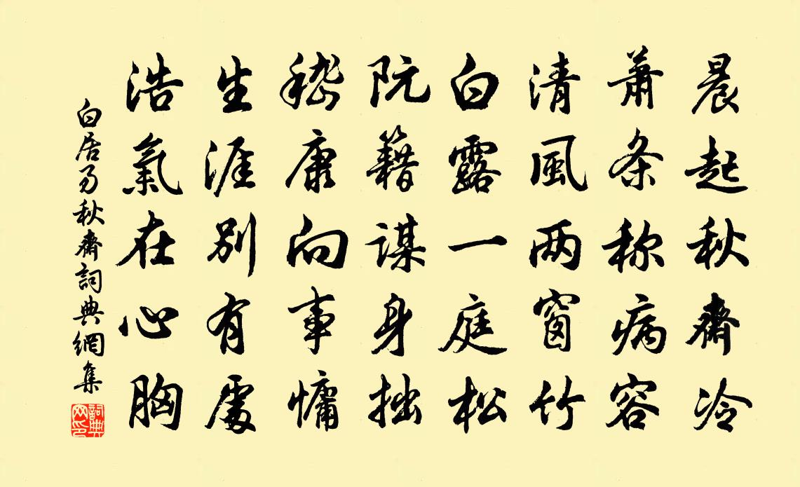 晨起秋齋冷,蕭條稱病容。清風兩窗竹,白露一庭松。