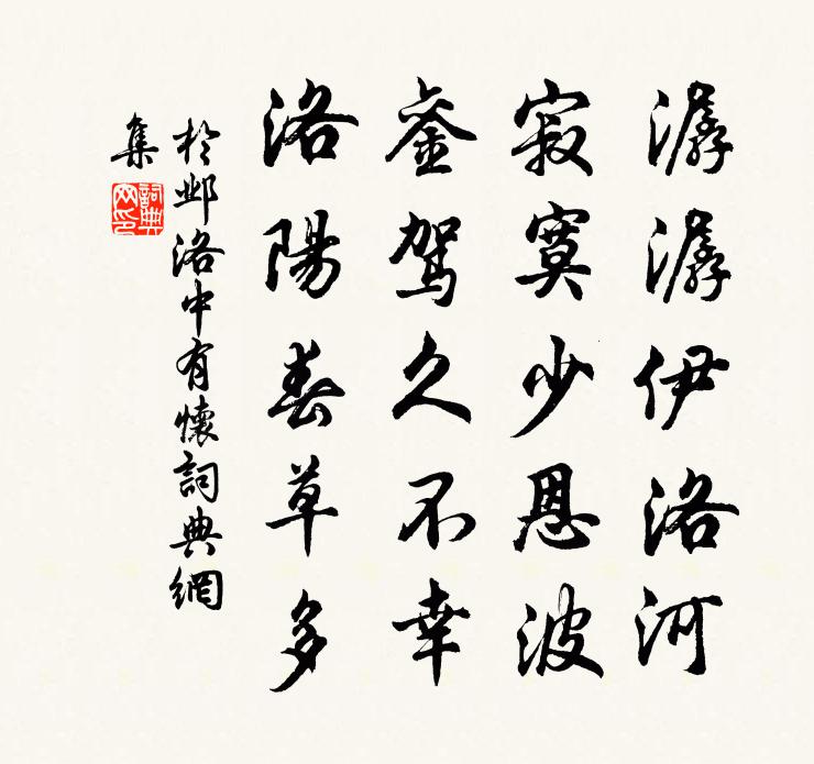 詩詞名句歷史字典書法欣賞書法字典國語詞典說文解字康熙字典古漢語字典標 題 作 者 詩 句 洛中有懷作者:於鄴 朝代:唐代洛中有懷原文潺潺伊洛河,寂寞少恩波。鑾駕久不幸,洛陽春草多。詩詞問答問:洛中有懷的作者是誰?答:於鄴問:洛中有懷寫於哪個朝代?答:唐代問:洛中有懷是什麼體裁?答:五絕於鄴洛中有懷書法欣賞洛中有懷書法作品注釋全唐詩:卷725-12詩詞推薦河傳邵亨貞〔元代〕春畫。倦繡。輕揎羅*。背倚鞦韆。杜鵑。年年惱人三月天。錦箋。空將心事傳。小玉偷移箏上雁。弦索斷。驚起書意示子孫陸游〔宋代〕我閱人間久,深知理惡盈。孳孳訓來裔,堇堇作儒生。仕勿卑曹掾,書才記姓名。茆茨不啻足,此外盡浮榮。寓興十首張至龍〔宋代〕種鞠一百叢,九月開盈枝。莫言無好花,好花開羅遲。菩薩蠻(代贈)毛滂〔宋代〕端端正正人如月。孜孜媚媚花如頰。花月不如人。眉眉眼眼春。沈香添小炷。共挹熏爐語。香解著人衣。君心蝴蝶白居易有望闕雲遮眼思鄉雨滴心之句用其韻為鄭剛中〔宋代〕日落紅練淨,山近空翠滴。爭枝鳥未棲,閉戶人先息。孤坐明月中,寒光入胸臆。衣潤毛骨冷,萬劫塵土滌。誰知寒食前一日寄子瞻蘇轍〔宋代〕寒食明朝一百五,誰家冉冉尚廚煙。桃花開盡葉初綠,燕子飛來體自便。愛客漸能陪痛飲,讀書無思懶開編。秦川趙香台陳天麟〔宋代〕佳木寄深塢,自與春有期。幽姿誰復省,軒軒頗矜持。真賞償已逢,清香襲人衣。士為知已死,此語良不欺。金沙寺曾季貍〔宋代〕古寺同真率,君家更秩筵。酒杯無算飲,橘樹不論錢。勝日攜佳客,曾來是去年。莫嫌頻至此,直為主人賢。感物陸游〔宋代〕小園清曉岸綸巾,物態年光日日新。綠葉自生黃自落,不應秋至始愁人。送西川杜司空赴鎮薛逢〔唐代〕黑眉玄發尚依然,紫綬金章五十年。三入鳳池操國柄,八分龍節付兵權。東周城闕中天外,西蜀樓台落日邊。莫遣塞下感懷朱慶餘〔唐代〕塞下閒為客,鄉心豈易安。程塗過萬里,身事尚孤寒。竟日風沙急,臨秋草木殘。何年方致主,時拂劍塵看。勉吟者宋伯仁〔宋代〕詩不窮人窮乃工,蹇驢宜立灞橋風。安排兩個推敲字,豈在梨花院落中。和仁仲過五溪胡寅〔宋代〕沅水千年非舊波,英風元自振關河。本懷國士知心早,豈念檉函挾恨多。龜固有神寧豫罔,鴻雖高舉畏虞羅。椒蘭秋水閣記錢謙益〔清代〕 閣于山與湖之間,山圍如屏,湖繞如帶,山與湖交相襲也。虞山,嶞山也。蜿蜒西屬,至是則如密如防,環拱三月十六日郊行趙蕃〔宋代〕乍驚風色掃群陰,旋見朝光上遠林。李徑跳蹊愁欲寂,麥畦桑畝秀何深。未雲晨出因迎客,自喜山行不廢吟。春晚讀陸雲西志供定城墓有感書呈子勉總乾三首釋道璨〔宋代〕一艇東來公已仙,午天花柳為誰妍。深培根本存生意,把握春風有阿連。和僧二首胡宏〔宋代〕西風吹我對秋光,要挽銀河萬里長。洗盡世人煩惱障,大家無事得清涼。喜錢申伯病起二首張元乾〔宋代〕一室維摩老,長年法喜游。苦心翻貝葉,痴坐寫蠅頭。可是文園病,何堪杞國憂。我知公健在,骨相合封侯。潤卿遺青飠迅飯兼之一絕,聊用答謝皮日休〔唐代〕傳得三元飠迅飯名,大宛聞說有仙卿。分泉過屋舂青稻,拂霧彯衣折紫莖,蒸處不教雙鶴見,服來唯怕五雲生。草送李質夫之陝府王安石〔宋代〕平世求才漫至公,悠悠羈旅士多窮。十年見子尚短褐,千里隨人今北風。戶外屨貧虛自滿,樽中酒賤亦常空。共嫌名句推薦弱齡寄事外,委懷在琴書。陶淵明《始作鎮軍參軍經曲阿作》 紫陌紅塵拂面來,無人不道看花回。劉禹錫《元和十年自朗州至京戲贈看花諸君子 / 玄都觀桃花》 善者不辯,辯者不善。老子《老子·德經·第八十一章》 昔年多病厭芳尊,今日芳尊惟恐淺。錢惟演《木蘭花·城上風光鶯語亂》 而今才道當時錯,心緒淒迷。納蘭性德《採桑子·當時錯》 乍暖還輕冷。張先《青門引·春思》 語來江色暮,獨自下寒煙。李白《尋雍尊師隱居》 旌蔽日兮敵若雲,矢交墜兮士爭先。屈原《國殤》 酒賤常愁客少,月明多被雲妨。蘇軾《西江月·世事一場大夢》 西子蒙不潔,則人皆掩鼻而過之。雖有惡人,齊戒沐浴,則可以祀上帝。孟子《孟子·離婁章句下·第二十五節》