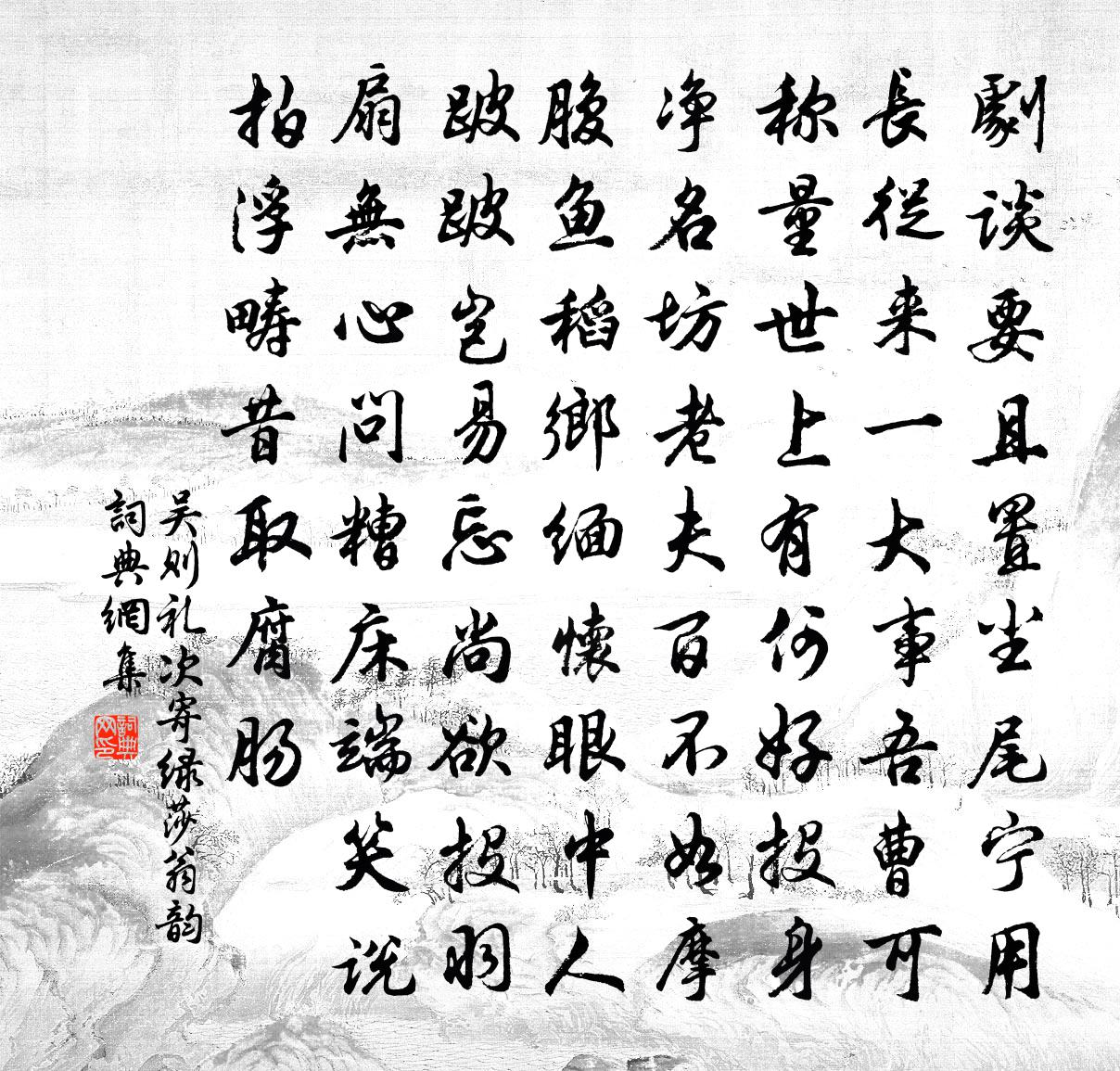 詩詞名句歷史字典書法欣賞書法字典國語詞典說文解字康熙字典古漢語字典標 題 作 者 詩 句 次寄綠莎翁韻作者:吳則禮 朝代:宋代次寄綠莎翁韻原文劇談要且置,塵尾寧用長。從來一大事,吾曹可稱量。世上有何好,投身淨名坊。老夫百不如,摩腹魚稻鄉。緬懷眼中人。跛跛豈易忘。尚欲投羽扇,無心問糟床。端笑說拍浮,疇昔取腐腸。詩詞問答問:次寄綠莎翁韻的作者是誰?答:吳則禮問:次寄綠莎翁韻寫於哪個朝代?答:宋代吳則禮次寄綠莎翁韻書法欣賞次寄綠莎翁韻書法作品詩詞推薦題載雪錄孫惟信〔宋代〕詩字崢嶸照眼開,人隨塵劫挽難回。清苕載雪流寒碧,老我扁舟獨自來。夜賦陸游〔宋代〕老人不食覺魂清,況若身游白玉京。夜靜月驚林鵲起,水涼風颭露荷傾。昏燈一點窺孤夢,畫角三終轉五更。欲醉游朱氏園吳芾〔宋代〕萋萋芳草遍池塘,嘆惜韶華一半強。聞道名園千畝勝,來看浪蕊萬枝芳。渾疑席上紅裙擁,未讓階前綺帳張。坐客送周思道再知漢州三首范祖禹〔宋代〕兩川相望各繁華,二牧蕃宣出一家。衣繡聊為鄉社寵,行看召節向天涯。句孫僅〔宋代〕巴陵山水冠南中。黃無悔輓詞四首陳師道〔宋代〕敏慧仍江夏,風流更妙年。貧焚酒家券,病得里胥錢。精爽來鷹隼,清明瀉澗瀍。無兒傳素業,有淚徹黃泉。木蘭花慢郭居安〔宋代〕聽都人共語,又還是、歲逢庚。記今帖頻催,袞衣將至,繡幰先迎。笙歌六宮齊奏,到而今、猶唱賀昇平。千歲人虞萬州生日魏了翁〔宋代〕滄江深處汲難渾,世味濃枯不見痕。竹影移枰風澹蕩,芰荷搖艇月黃昏。坎離合處靈根峙,剝復機中碩果存。門地送外龍輔〔宋代〕與君非一身,同戶醒相憶。而況出門去,寧知南復北。偈頌三十八首釋如淨〔宋代〕霖霪大雨,害遠大晴。蝦蟆啼,蚯吲鳴,古佛不曾過去,發揮金剛眼睛。咄,葛藤葛藤。午過烏東楊萬里〔宋代〕險盡塗初坦,寒輕日向中。稻雲遲雨碧,蕎雪早霜紅。五日再行役,二年三鞠躬。只言棄官久,卻與在官同。太陽丘葵〔宋代〕太陽一入地,照月還生光。老學儻能勉,繕性豈不臧。偈頌六十八首釋法薰〔宋代〕臘月燒山,火勢炎炎。目前包裹,藉手行拳。若是衲衣下事,猶較十萬八千。御樓看射獵,不是刈茆田。洛陽春吟邵雍〔宋代〕桃李花開人不窺,花時須是牡丹時。牡丹花發酒增價,夜半遊人猶未歸。春晚行樂四首白玉蟾〔宋代〕落紅庭院綠池塘,語燕啼鶯亦可傷。霽柳吹花春已老,暝槐成幄日初長。秋陰至近村陸游〔宋代〕村店閒尋酒,筇枝廋倚肩。雲齊龍捲雨,野曠鶴盤天。露井飄桐後,清觴泛菊前。欲歸還小立,搔首意悠然。劉忠顯輓詞張嵲〔宋代〕臨難不忘死,為忠已足多。全生猶有路,仗節竟如何。可驗平生志,宜令後世歌。諸儒主褒貶,毫髮未容訛。最高樓 暮春薛昂夫〔元代〕花信緊,二十四番愁。風雨五更頭。侵階苔蘚宜羅襪,逗衣梅潤試香篝。綠窗閒,人夢覺,鳥聲幽。按銀箏、學弄延平次趙糾曹韻十四首紫氣陳宓〔宋代〕三尺有正氣,外邪何可乾。功用雖未見,韜藏誰將看。寓京口四首答湯菊莊兼簡分司鄭料院甘露寺武衍〔宋代〕二雄曾向此般還,鼎立功名各未安。留得坐時頑石在,至今人尚說曹瞞。名句推薦日月盈昃,辰宿列張。周興嗣《千字文·全文》 行宮見月傷心色,夜雨聞鈴腸斷聲。白居易《長恨歌》 貞女貴徇夫,捨生亦如此。孟郊《列女操 / 烈女操》 甚愛必大費;多藏必厚亡。故知足不辱,知止不殆,可以長久。老子《老子·德經·第四十四章》 我心匪石,不可轉也。佚名《柏舟》 風絮飄殘已化萍,泥蓮剛倩藕絲縈。納蘭性德《山花子·風絮飄殘已化萍》 酌酒以自寬,舉杯斷絕歌路難。鮑照《擬行路難·其四》 小人肥口,君子肥身。佚名《增廣賢文·下集》 磧里征人三十萬,一時回向月明看。李益《從軍北征》 似此星辰非昨夜,為誰風露立中宵。黃景仁《綺懷》