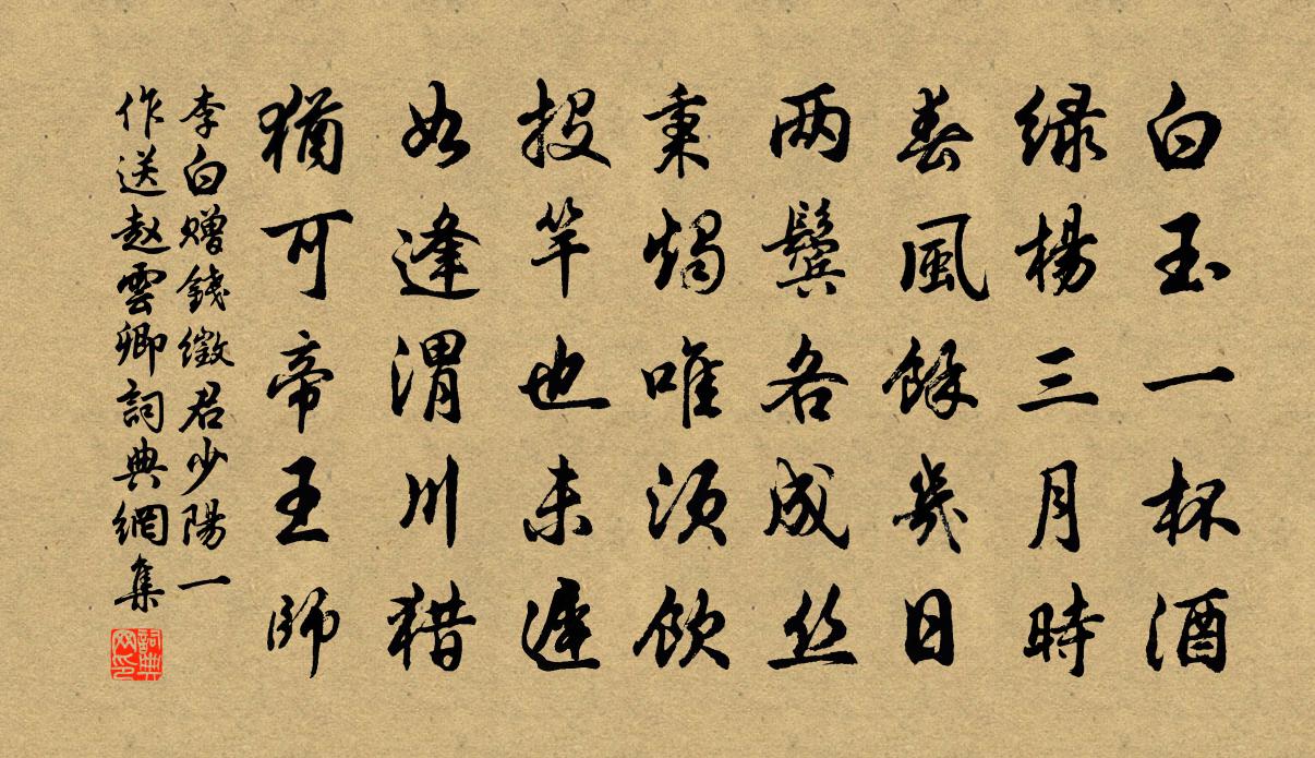 白玉一杯酒,綠楊三月時。春風餘幾日,兩鬢各成絲。