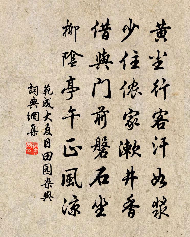 黃塵行客汗如漿,少住儂家漱井香;借與門前磐石坐,柳陰亭午正風涼。詩詞問答