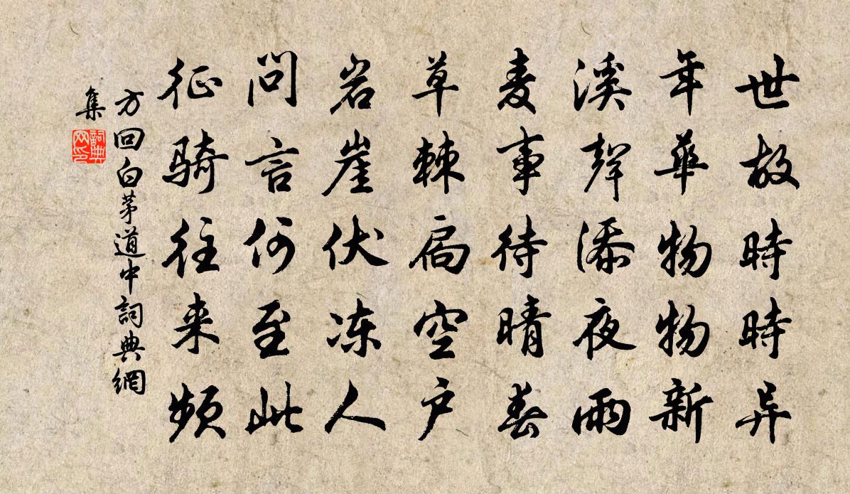 詩詞名句歷史字典書法欣賞書法字典國語詞典說文解字康熙字典古漢語字典標 題 作 者 詩 句 白茅道中作者:方回 朝代:宋代白茅道中原文世故時時異,年華物物新。溪聲添夜雨,麥事待晴春。草棘扃空戶,岩崖伏凍人。問言何至此,征騎往來頻。詩詞問答問:白茅道中的作者是誰?答:方回問:白茅道中寫於哪個朝代?答:宋代方回白茅道中書法欣賞白茅道中書法作品詩詞推薦爇心香 繼重陽韻馬鈺〔元代〕此個扶風。幼習儒風。遇風仙、傳得清風。風狂便做。總笑餘風。這風風風,風得煞,似心風。脫俗宜風,離境收次韻子瞻題郭熙畫秋山黃庭堅〔宋代〕黃州逐客未賜環,江南江北飽看山。玉堂臥對郭熙畫,發興已在青林間。郭熙官畫但荒遠,短紙曲折開秋晚。江村陳家岡方回〔宋代〕倦馬鞍韉破,傭奴糗茹陳。不為終老計,猶作遠行身。惶惑逢岐路,遲留俟過人。經時無可問,極目盡荊榛。青玉案吳潛〔宋代〕十年三過蘇台路。還又是、匆匆去。迅景流光容易度。鷺洲鷗渚,葦汀蘆岸,總是消魂處。蒼煙欲合斜陽暮。付與送王昌齡李頎〔唐代〕漕水東去遠,送君多暮情。淹留野寺出,向背孤山明。前望數千里,中無蒲稗生。夕陽滿舟楫,但愛微波清。舉酒依韻奉和司徒侍中辛亥上巳會許公亭強至〔宋代〕許開壯觀舊平津,今日還延相閣賓。茅社一臨封國地,花亭三見禊杯春。隨車和氣蒙魚鳥,即席高吟動鬼神。西北再招陸龜蒙〔唐代〕遙知道侶談玄次,又是文交麗事時。雖是寒輕雲重日,也留花簟待徐摛。答王甫撫乾和荊江亭韻孫應時〔宋代〕劍鬱氣沖斗,球潛光媚川。丈夫自有在,時俗難為妍。鍾期苟未逢,我琴不須弦。別路渺湖海,想思心炯然。鷓鴣天(詠梅菊呈撫州葛守)廖行之〔宋代〕九日東籬已泛觴。隴頭猶待返魂香。那知此日花神約,得得同登君子堂。迎臘雪,傲晴霜。西湖風韻接柴桑。壽潭游金華洞天釋智愚〔宋代〕颼颼岩溜靜邊聞,到到仙凡咫尺分。鶴駕朝真可日返,洞門終日鎖寒雲。因游華子崗題麻源壁李覯〔宋代〕平生猶未識紅泉,今日才游石磴邊。宿雨地睛秋草濕,困來無處可閒眠。近承琮上人問訊甚勤老懶不能作書以偈答之晁公溯〔宋代〕食時持缽乞諸隣,不用毗耶遣化身。想見堂中慚此老,法累未轉轉飢輪。偈頌一百零一首釋慧性〔宋代〕 * 刀,活人劍,劈破虛空成兩片。千妖百怪盡潛蹤,萬象森羅光影現。艾人與鬥神,端的見不見。拄杖子聊通一念奴嬌(席上即事)趙長卿〔宋代〕精神俊雅,更那堪、天與風流標格。羅綺叢中偏艷冶,偷處教人憐惜。目剪秋波,指纖春筍,新樣冠兒直。高堂雲網戶嘆趙文〔宋代〕江南西風粳稻熟,網夫出門網婦哭。天晴黃雀飛苦高,縣吏椎門怒震屋。哨聲飛空健鶻過,遲速小誤成嗟跎,君庖翡翠齊己〔唐代〕水邊飛去青難辨,竹里歸來色一般。磨吻鷹鸇莫相害,白鷗鴻鶴滿沙灘。飲文氏園是日鵲噪於庭坐上燭花無數就試者凡李流謙〔宋代〕虎變龍騰各有心,諸公高宴盍朋簪。爛開數對迎祥燭,合噪仍來報喜禽。人似月娥元自近,酒名天祿莫辭深。坐中會蓬萊閣秦觀〔宋代〕冠裳藝座灑清凡,軒外時聞韻籜龍。人面春生紅玉液,銀盤煙覆紫駝峰。天涵秋色山山共,樹攪鄉思葉葉重。便欲浣溪沙(以鴛鴦梅送錢漕)洪适〔宋代〕玉頰微醺怯晚寒。可憐凝笑整雙翰。枝頭一點為誰酸。只恐輕飛煙樹里,好教斜插鬢雲邊。淡妝仍向醉中看。對月有懷吳錫疇〔宋代〕破晴斜月入簾陰,鬢影蕭騷老不禁。九十日春風與雨,百千年事後猶今。牡丹紅褪殘妝面,杜宇聲寒故國心。眼底名句推薦賞當其勞,無功者自退;罰當其罪,為惡者戒懼。吳兢《貞觀政要·卷三·論擇官》 河橋送人處,涼夜何其。周邦彥《夜飛鵲·河橋送人處》 白日地中出,黃河天外來。張蠙《登單于台》 松江上,念故人老矣,甘臥閒雲。吳文英《沁園春·送翁賓暘游鄂渚》 女也不爽,士貳其行。士也罔極,二三其德。佚名《氓》 願借天風吹得遠,家家門巷盡成春。李方膺《題畫梅》 應是夜寒凝。惱得梅花睡不成。黃升《南鄉子·冬夜》 凍風時作,作則飛沙走礫。袁宏道《滿井遊記》 舉頭紅日白雲低,四海五湖皆一望。唐寅《伯虎扮乞兒,作詩騙酒》 野曠天清無戰聲,四萬義軍同日死。杜甫《悲陳陶》