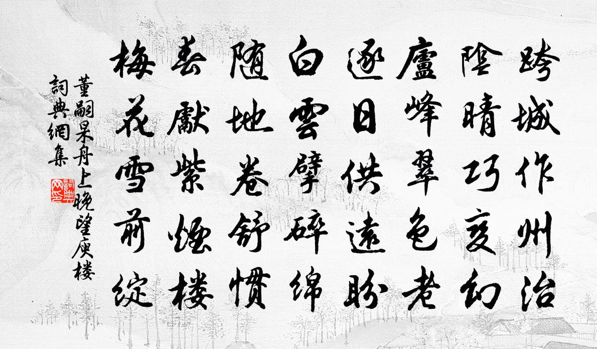詩詞名句歷史字典書法欣賞書法字典國語詞典說文解字康熙字典古漢語字典標 題 作 者 詩 句 舟上晚望庾樓作者:董嗣杲 朝代:宋代舟上晚望庾樓原文跨城作州治,陰晴巧變幻。廬峰翠色老,逐日供遠盼。白雲擘碎綿,隨地卷舒慣。春先紫煙樓,梅花雪前綻。詩詞問答問:舟上晚望庾樓的作者是誰?答:董嗣杲問:舟上晚望庾樓寫於哪個朝代?答:宋代董嗣杲舟上晚望庾樓書法欣賞舟上晚望庾樓書法作品詩詞推薦西風二首劉克莊〔宋代〕老業猶存是苦吟,或投野店憩寒林。西風何處無詩料,水際山顛亦去尋。贈道士參寥孟浩然〔唐代〕蜀琴久不弄,玉匣細塵生。絲脆弦將斷,金徽色尚榮。知音徒自惜,聾俗本相輕。不遇鍾期聽,誰知鸞鳳聲。送黃元吉陳傅良〔宋代〕荷君來意固非因,曾未深交意便傾。語到七篇無欠少,學從三畫已分明。每懷前此傷標置,頗欲從今近老成。為謝芙蓉六言四首劉克莊〔宋代〕羞作太真妃帳,寧為屈大夫裳。帝賞此花高節,別賜一名拒霜。聽蟬八絕句楊萬里〔宋代〕罪過渠儂商略秋,從朝至暮不曾休。莫嫌入夜還休去,自有寒蛩替說愁。夜思中原劉過〔宋代〕中原邈邈路何長,文物衣冠天一方。獨有孤臣流血淚,更無奇傑叫天閶。關河夜月冰霜重,宮殿春風草木荒。猶耿次何愛山喜雨韻劉黻〔宋代〕梵宮默禱托爐煙,火繖愁張六月天。雨倏隨車符蟻垤,水分沃野免龜田。已知簾影多琴暇,更與花封結飯緣。坐聽送楊辟秀才歐陽修〔宋代〕吾奇曾生者,始得之太學。初謂獨軒然,百鳥而一鶚。既又得楊生,群獸出麟角。乃知天下下,所識慚未博。楊生春嬉趙汝鐩〔宋代〕十分晴色趁春嬉,鄰有灰驢惜我騎。舌囀雖然聞翠柳,葉濃卻不見黃鸝。小詩題壁同僧知,丫角攜琴更鶴隨。傍水上史魏公壽三首孫應時〔宋代〕中書考已敵汾陽,神氣清明骨更強。客倒壺觴弄風月,酒闌燈火事文章。傳家正有書千卷,積慶真成笏一床。看取簡劉致中兄弟李處權〔宋代〕祖筆摩空有賦聲,長楊羽獵舊齊名。頗推門第多人物,故作樓居遠世情。我輩一生悲短褐,君家五字倚長城。武陵和於子儀觀見贈二十韻郭印〔宋代〕壯歲悟修性,磨礱謝圭角。隨身塵網中,意氣翔寥廓。動遭白眼觀,罕識黃金諾。聖賢皆吾心,所讀真糟粕。妙處首尾吟邵雍〔宋代〕堯夫非是愛吟詩,雖老精神未耗時。水竹清閒先據了,鶯花富貴又兼之。梧桐月向懷中照,楊柳風來面上吹。被有晚過彥真山亭並呈允升季儀兼屬照鄰二首趙蕃〔宋代〕隔岸看山自足佳,背山仍有碧雲遮。我來政值崚嶒際,卻恨林端已暮鴉。宋永兄見和春懷再賦仍約秉彝兄尋春西郊黃公度〔宋代〕朱轂常懷蹉跌憂,蓽門長苦鬥升謀。此生幸不貧到骨,未死何妨酒入喉。北里人隨春漸老,西郊地與興俱幽。憑君太傅相公深感庭梅再成絕唱曲垂借示倍認知憐…攀和徐鉉〔唐代〕禁省繁華地,含芳自一時。雪英開復落,紅藥植還移。靜想分今昔,頻吟嘆盛衰。多情共如此,爭免鬢成絲。以蓮心茶送鞏使君小詩將之虞儔〔宋代〕採得蓮心苦更嚴,青裙白面退尖纖。竹軒旋碾香塵散,槐夢初回齒頰甜。況是澄泉元帶錫,自應佳句合編簽。直須紹熙壬子勸耕妙勝四首陳造〔宋代〕縣曹文墨厭拘纏,野飯山行舊所便。只道窮途難措足,朝來風日為誰妍。喜遷鶯(代邑士送梁宰觀赴崑山同知)陳著〔宋代〕南廬佳號。是自許孔明,經綸才調。對柳鳴琴,憑花制錦,小試一同談笑。怎知畫簾難駐,忽又星輿催召。但讖得除草杜甫〔唐代〕草有害於人,曾何生阻修。其毒甚蜂蠆,其多彌道周。清晨步前林,江色未散憂。芒刺在我眼,焉能待高秋。霜露名句推薦己欲立而立人,己欲達而達人。孔子弟子《論語·雍也篇》 君子之事親孝,故忠可移於君。孔子及其弟子《孝經·廣揚名》 春雲不變陽關雪,桑葉先知胡地秋。李昂《從軍行》 富貴不能淫,貧賤不能移,威武不能屈。此之謂大丈夫。孟子《孟子·滕文公章句下·第二節》 郴江幸自繞郴山,為誰流下瀟湘去。秦觀《踏莎行·郴州旅舍》 荷葉生時春恨生,荷葉枯時秋恨成。李商隱《暮秋獨游曲江》 舟遙遙以輕颺,風飄飄而吹衣。陶淵明《歸去來兮辭·並序》 白髮三千丈,緣愁似個長。李白《秋浦歌十七首》 先天下之憂而憂,後天下之樂而樂范仲淹《岳陽樓記》 外亂而內整,示飢而實飽,內精而外鈍。姜子牙《六韜·文韜·兵道》