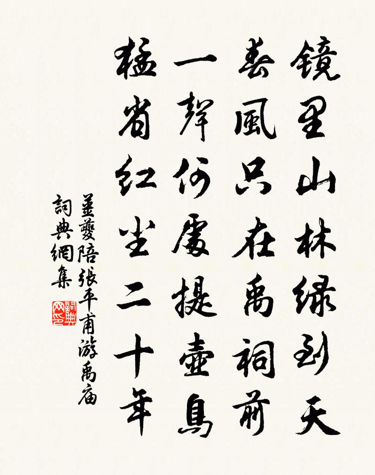 鏡里山林綠到天,春風只在禹祠前。一聲何處提壺鳥,猛省紅塵二十年。