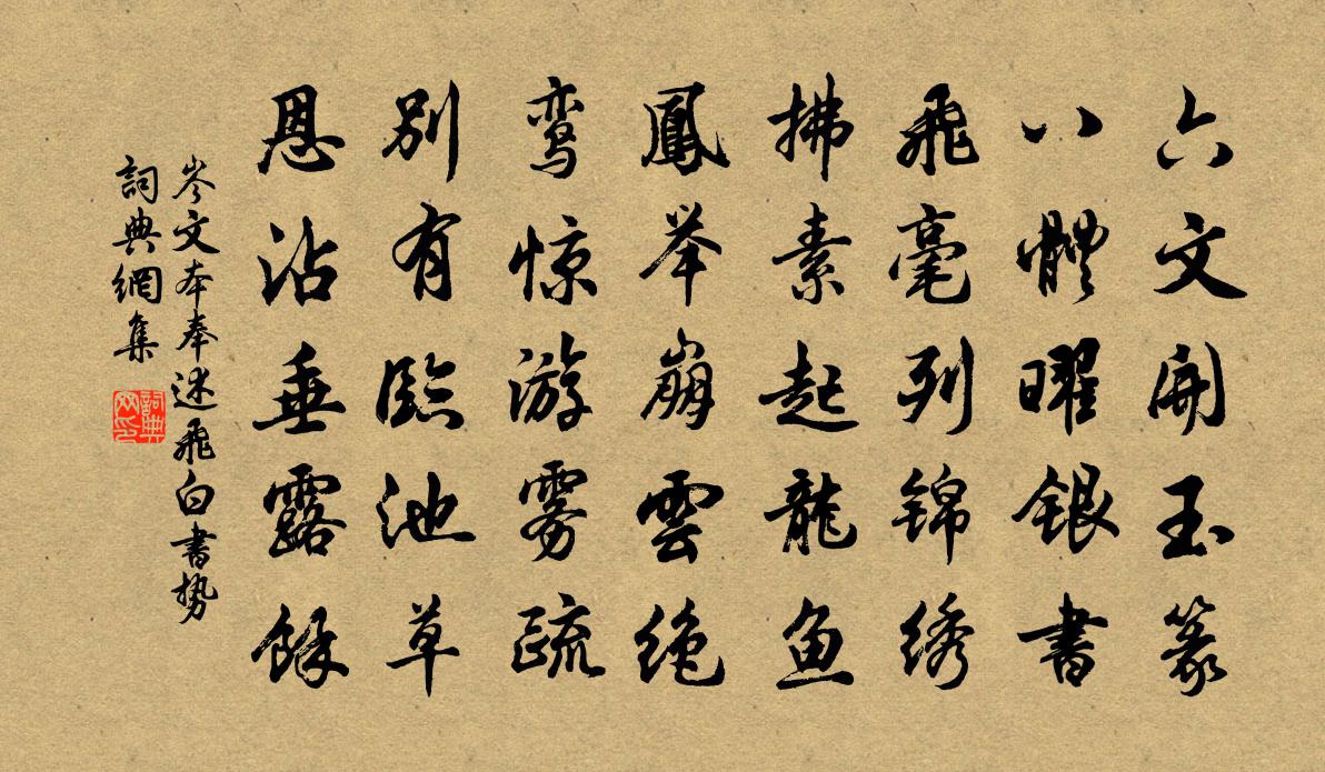 詩詞名句歷史字典書法欣賞書法字典國語詞典說文解字康熙字典古漢語字典標 題 作 者 詩 句 奉述飛白書勢作者:岑文本 朝代:唐代奉述飛白書勢原文六文開玉篆,八體曜銀書。飛毫列錦繡,拂素起龍魚。鳳舉崩雲絕,鸞驚游霧疏。別有臨池草,恩沾垂露餘。詩詞問答問:奉述飛白書勢的作者是誰?答:岑文本問:奉述飛白書勢寫於哪個朝代?答:唐代問:奉述飛白書勢是什麼體裁?答:五古岑文本奉述飛白書勢書法欣賞奉述飛白書勢書法作品注釋全唐詩:卷33_7詩詞推薦句蕭實〔宋代〕萬株翠進根成後,一個閒僧手植初。句滕宗諒〔宋代〕笑語隔幽叢。游金華山禪院貫休〔唐代〕茲地曾棲菩薩僧,旃檀樓殿瀑崩騰。因知境勝終難到,問著人來悉不曾。斜谷暗藏千載雪,薄嵐常翳一龕燈。多慚柳梢青楊無咎〔宋代〕天付風流。相時宜稱,著處清幽。雪月光中,煙溪影里,松竹梢頭。卻憎吹笛高樓。一夜裡、教人鬢秋。不道明朝浣溪沙仲殊〔宋代〕楚客才華為發揚。深林著意不相忘。夢成燕國正芬芳。莫把品名閒議擬,且看青鳳羽毛長。十分領取面前香。嘉禾百詠徐偃王廟張堯同〔宋代〕王有岐夷德,千年貌亦存。我懷三刺史,誰是後來孫。龍湫歌陸游〔宋代〕環湫巨木老不花,奫淪千尺龍所家。爪痕入木欲數寸,觀者心掉不敢嘩。去年大旱綿千里,禾不立苗麥垂死。林神玉燭新(和方時父,並懷孫季蕃)趙以夫〔宋代〕寒寬一雁落。正萬里相思,被渠驚覺。春風字字吹香雪,喚起西湖盟約。當時醉處,仿佛記、青樓珠箔。又不是,古興薛據〔唐代〕投珠恐見疑,抱玉但垂泣。道在君不舉,功成嘆何及。富順解旦〔宋代〕封疆莫歡極西陲,景物尤堪著詠思。亭台處處垂楊影,街巷家家小酒旗。舊同吳楚分梅艷,新比戎瀘有荔枝。鑿井三日曲水侍宴應制閻朝隱〔唐代〕三月重三日,千春續萬春。聖澤如東海,天文似北辰。荷葉珠盤淨,蓮花寶蓋新。陛下制萬國,臣作水心人。書蘇道士江行圖後史彌寧〔宋代〕詩酒漂零自在身,吳檣楚柂往來頻。拂開數匹臨川紙,一一江山是故人。為王師宣子壽釋寶曇〔宋代〕風入床琴帝夢闌,蓬萊為輟老仙官。袖曾有縛於菟手,頭不須簪獬豸冠。桃李無言民自樂,冰霜折指吏應寒。西京憶越州張士遜〔宋代〕稽山岩壑深復高,思之誰妙丹青毫。霜縑若得一千幅,伻圖何必乘蘭舠。答客宋祁〔宋代〕十年通籍向蒼龍,孤直何緣免諱窮。欲識深心似魚鳥,不將山海換池籠。鵲橋仙(戊戌生朝)劉克莊〔宋代〕金風淅淅,銀河淡淡,長少群賢畢會。平生心事麴生知,怪此夕、惺惺相對。玄花生眼,新霜點鬢,不肯遮藏老態二十二弟獲金印晁說之〔宋代〕季也獲金印,籀文秦不如。情知非鬼篆,恨不識天書。池靜龜游罷,庭閒鵲斗余。春風還舊物,疏俊獨憐渠。玄沙和尚贊釋智遇〔宋代〕不出飛猿,皮下有血。釣魚放生,死中得活。譏雪峰用力太過,笑靈雲相底未徹。只知意在鉤頭,不覺眼中著屑。偶成衛宗武〔宋代〕平生夢不遇邯鄲,學道求仙興已闌。旋改詩編入新刻,重尋琴譜發清彈。不慚晚境為寒峻,翻笑當年慕勢官。志業山居即事吳融〔唐代〕小亭前面接青崖,白石交加襯綠苔。日暮松聲滿階砌,不關風雨鶴歸來。名句推薦生無一日之歡,死有萬世之名。列子及其弟子《列子·楊朱》 海角天涯,寒食清明,淚點絮花沾袖。吳文英《花心動·柳》 二月江南花滿枝,他鄉寒食遠堪悲。孟雲卿《寒食》 想烏衣年少,芝蘭秀髮,戈戟雲橫。葉夢得《八聲甘州·壽陽樓八公山作》 唯天下至誠,方能經綸天下之大經,立天下之大本子思《中庸·第三十二章》 雨洗娟娟淨,風吹細細香。杜甫《嚴鄭公宅同詠竹》 咬定青山不放鬆,立根原在破岩中。鄭燮《竹石》 處事最當熟思緩處。熟思則得其情,緩處則得其當。陳繼儒《小窗幽記·集醒篇》 君埋泉下泥銷骨,我寄人間雪滿頭。白居易《夢微之》 悲商叩林,白雲依山。陶淵明《閒情賦》