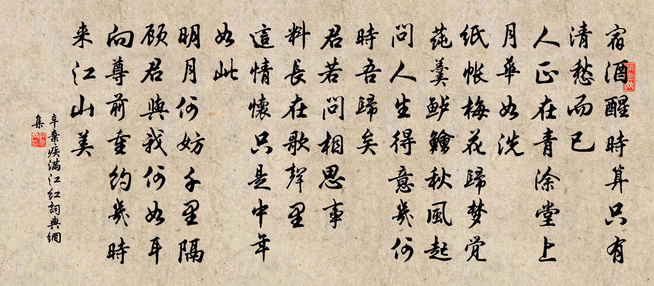 宿酒醒時,算只有、清愁而已。人正在、青塗堂上,月華如洗。