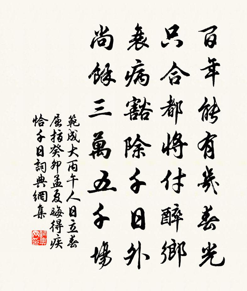 百年能有幾春光,只合都將付醉鄉。衰病豁除千日外,尚餘三萬五千場。