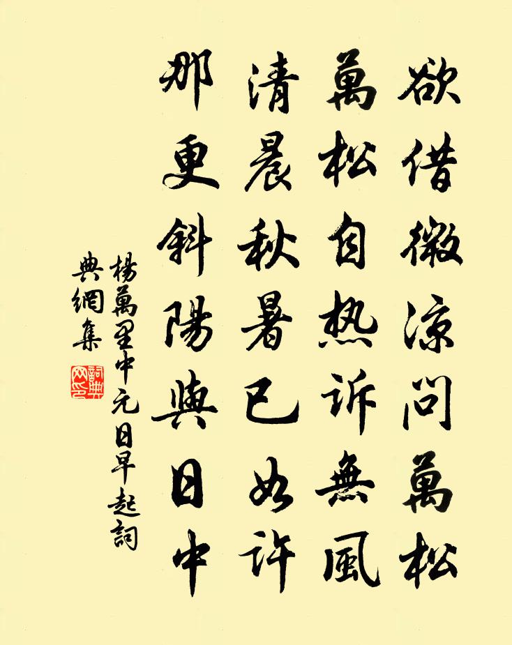欲借微涼問萬松,萬松自熱訴無風。清晨秋暑已如許,那更斜陽與日中。