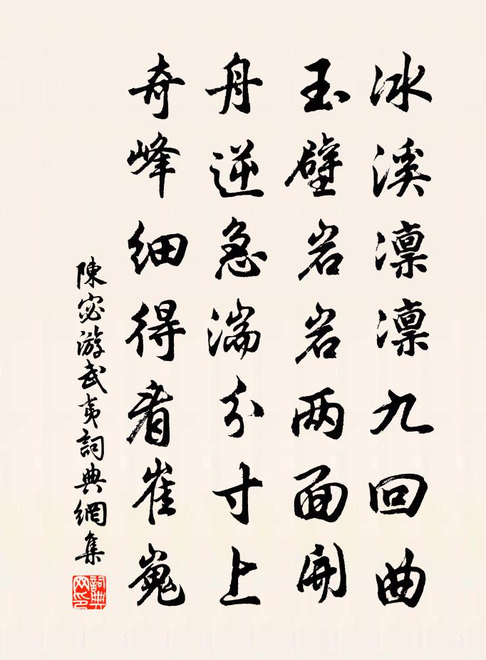 詩詞名句歷史字典書法欣賞書法字典國語詞典說文解字康熙字典古漢語字典標 題 作 者 詩 句 游武夷作者:陳宓 朝代:宋代游武夷原文冰溪凜凜九回曲,玉壁岩岩兩面開。舟逆急湍分寸上,奇峰細得看崔嵬。詩詞問答問:游武夷的作者是誰?答:陳宓問:游武夷寫於哪個朝代?答:宋代陳宓游武夷書法欣賞游武夷書法作品詩詞推薦和張公儀王之道〔宋代〕醉中行草綰秋蛇,十載風欞憶舊家。朋舊亂多從鬼錄,詩書閒益富生涯。稻塍綠合迷秧馬,沙嘴潮回下釣車。歸去寄上荊渚,因夢廬岳,乃圖壁賦詩齊己〔唐代〕夢繞嵯峨里,神疏骨亦寒。覺來誰共說,壁上自圖看。古翠松藏寺,春紅杏濕壇。歸心幾時遂,日向漸衰殘。後出塞五首杜甫〔唐代〕男兒生世間,及壯當封侯。戰伐有功業,焉能守舊丘。召募赴薊門,軍動不可留。千金買馬鞭,百金裝刀頭。閭里過故洛陽城司馬光〔宋代〕煙悉雨嘯黍華生,宮闕簪裳舊帝京。若問古今興廢事,請君只看洛陽城。摸魚子許有孚〔元代〕買陂塘旋栽楊柳,佳人屢輟齋務。扁舟蕩漾亭深處,堪避片雲疏雨。明月渚。有仙子凌波,解佩留芳嶼。園丁亦語送魏君俞知宿遷黃庭堅〔宋代〕魏侯得名能治劇,江湖作吏聲籍籍。人言才似鉅鹿公,詔書擢守二千石。前日見賢后得罪,艾封沾襟復自悔。牛刀天津橋晚望顧非熊〔唐代〕晴登洛橋望,寒色古槐稀。流水東不息,翠華西未歸。雲收中嶽近,鍾出後宮微。回首禁門路,群鴉度落暉。天平山白雲泉范仲淹〔宋代〕靈泉在天半,狂波不能侵。神蛟穴其中,渴虎不敢臨。隱照涵秋碧,泓然一勺深。游潤騰雲飛,散作三日霖。天造頌古釋道顏〔宋代〕小魚吞大魚,門上釘桃符。邪魔俱不入,佛法也消除。十樣花·陌上風光濃處李彌遜〔宋代〕陌上風光濃處。第一寒梅先吐。待得春來也,香銷減,態凝佇。百花休謾妒。陌上風光濃處。繁杏枝頭春聚。艷態郡民以歲稔刑清相率為齋以報善政永嘉聶從事楊億〔宋代〕為郡鹽甌越,雲泉興未乖。歡謠乏襦袴,歸思滿荊柴。偶遂豐年望,潛將樂土偕。流民爭襁負,凶黨絕椎埋。精力用從軍古雲樂為韻賀楊覺甫乾李曾伯〔宋代〕伊昔先賢心,天下等憂樂。時分蜀道弓,慮世漢關鑰。揮刃得屠牛,察脈寬扁鵲。岷峨望不淺,持酒為君酌。荷花劉筠〔宋代〕水國開良宴,霞天湛晚暉。凌波宓妃至,盪槳莫愁歸。妝淺休啼臉,香清願襲衣。即時聞鼓瑟,他日問支機。繡騎鄭顧道惠臘梅二首王洋〔宋代〕長垂月帔別天階,翦作金鐘應律灰。世上語言無入處,好從天上覓詩來。不到太初兄所居遂已十年以詩攀寄王安石〔宋代〕一水衣巾翦翠綃,九峰環佩刻青瑤。生才故有山川氣,卜築兼無市井囂。三葉素風門閥在,十年陳跡履綦銷。歸榮雜題四首劉子翬〔宋代〕積雨生秋意,浮陰放晚晴。鐘聲寒野迥,橋影小溪清。醜奴兒/採桑子陳允平〔宋代〕歲寒時節千林表,獨耐風霜。妒粉欺黃。澹澹衣裳薄薄妝。西湖十二闌乾曲,倚遍寒香。白鷺橫塘。一片孤山幾夕今日何夕曾豐〔宋代〕今夕何夕,粲者如許。日在於參,心在於戶。心與火俱,火為心主。老人在南,蓋得其所。萬山堂呈史察使方回〔宋代〕□□□□□□□,□□□□□□□。□□□□□□□,□予年事雪盈頭。藥岩夏冷水泉潤,茗屋午香窗戶幽。相過酹江月(萬花園用朱行父韻呈制帥趙端明)方岳〔宋代〕花風初逗,喜邊亭依舊,春閒營柳。菸草隋宮歌舞地,誰遣萬紅圍繡。結酒因緣,裝春富貴,也要經綸手。笙簫聲名句推薦身外閒愁空滿,眼中歡事常稀。晏幾道《臨江仙·身外閒愁空滿》 窈窕淑女,君子好逑。佚名《關雎》 我有所念人,隔在遠遠鄉。白居易《夜雨》 今夫天斯昭昭之多,及其無窮也,日月星辰系焉,萬物覆焉。子思《中庸·第二十六章》 五更疏欲斷,一樹碧無情。李商隱《蟬》 關關雎鳩,在河之洲。窈窕淑女,君子好逑。佚名《關雎》 喜看稻菽千重浪,遍地英雄下夕煙。 * 《七律·到韶山》 誓將掛冠去,覺道資無窮。岑參《與高適薛據同登慈恩寺浮圖》 歸鴻聲斷殘雲碧。背窗雪落爐煙直。李清照《菩薩蠻·歸鴻聲斷殘雲碧》 遼東小婦年十五,慣彈琵琶解歌舞。李頎《古意》