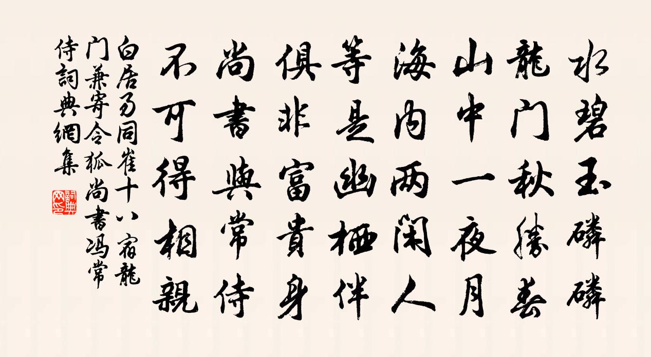 水碧玉磷磷,龍門秋勝春。山中一夜月,海內兩閒人。