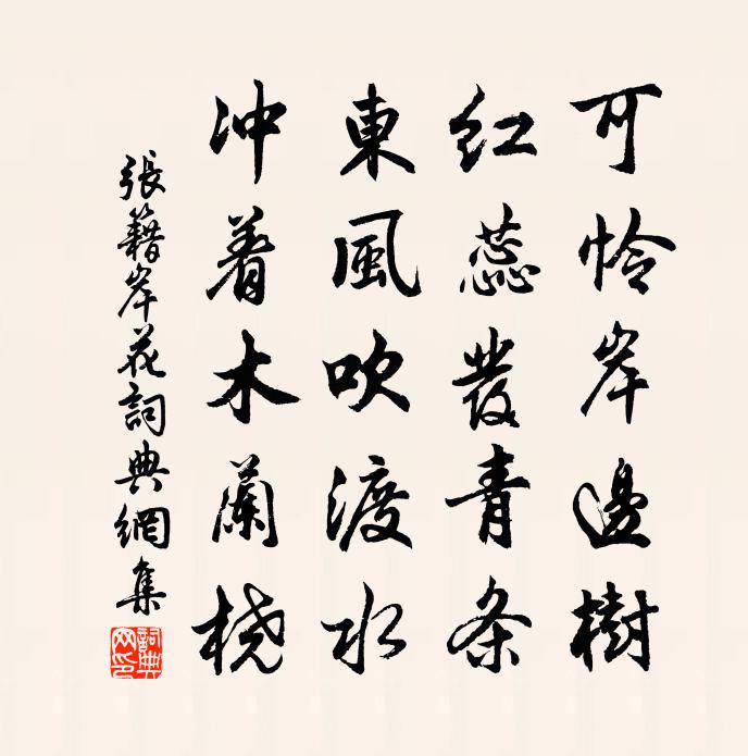 可憐岸邊樹,紅蕊發青條。東風吹渡水,衝著木蘭橈。