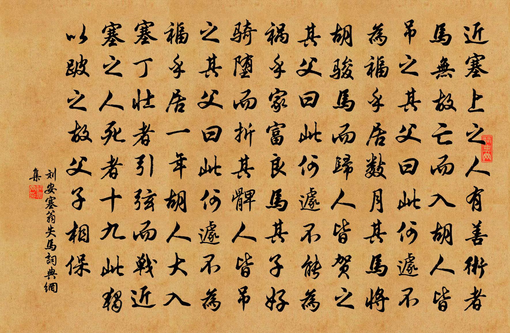靠近邊境一帶居住的人中有一個精通術數的人,他們家的馬無緣無故跑到了胡人的住地。人們都前來慰問他。那個老人說:“這怎么就不能是一件好事呢?”過了幾個月,那匹馬帶著胡人的良馬回來了。人們都前來祝賀他們一家。那個老人說:“這怎么就不能是一件壞事呢?”他家中有很多好馬,他的兒子喜歡騎馬,結果從馬上掉下來摔得大腿骨折。人們都前來安慰他們一家。那個老人說:“這怎么就不能是一件好事呢?”過了一年,胡人大舉入侵邊境一帶,壯年男子都拿起弓箭去作戰。靠近邊境一帶的人,絕大部分都死了。唯獨這個人因為腿瘸的緣故免於徵戰,父子得以保全生命。