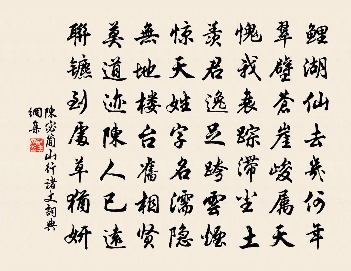 詩詞名句歷史字典書法欣賞書法字典國語詞典說文解字康熙字典古漢語字典標 題 作 者 詩 句 簡山行諸丈作者:陳宓 朝代:宋代簡山行諸丈原文鯉湖仙去幾何年,翠壁蒼崖峻屬天。愧我衰蹤滯塵土,羨君逸足跨雲煙。驚天姓字名濡隱,無地樓台舊相賢。莫道跡陳人已遠,聯鑣到處草猶妍。詩詞問答問:簡山行諸丈的作者是誰?答:陳宓問:簡山行諸丈寫於哪個朝代?答:宋代陳宓簡山行諸丈書法欣賞簡山行諸丈書法作品詩詞推薦道中題梅李處權〔宋代〕山家梅樹出疏籬,好客殷勤折一枝。直是老來風味薄,而今相遇可無詩。寄衛叔剛楊維楨〔元代〕二月春光如酒濃,好懷每與故人同。杏花城郭青旗雨,燕子樓台玉笛風。錦帳將軍烽火外,鳳池仙客碧雲中。憑誰宣城鹿鳴宴吳泳〔宋代〕儒臣簪筆典州麾,重為江山緝舊儀。宴序古來元有禮,鹿鳴廢后更無詩。科名到手還須耐,文字當場莫好奇。更盡中秋近願晴陳普〔宋代〕借得冰輪不敢私,幾多人要露肝脾。浮雲不用欺天下,須信人間有伯夷。百憂方回〔宋代〕病骨真如削,耕疇已盡捐。終隨萬形弊,何用百憂煎。常肯事如意,恐無詩可傳。屈伸判成敗,吾亦聽之天。挽樓文昌母安康太夫人汪氏孫應時〔宋代〕積慶源流遠,娠賢社稷光。斯文今北斗,舉代一文昌。象服山河壽,斑衣日月長。生芻此時事,四海為悲涼。江山道中劉克莊〔宋代〕純綿未覺中年暖,薄酒難禁二月寒。可惜一溪桃李樹,貪程不得過橋看。病中絕句陸游〔宋代〕少時談舌挾風雷,病後逢人口嬾開。安得東皋隱君子,相看無語只銜杯。壁間古木新篁影有可愛走筆戲題汪炎昶〔宋代〕韋偃工古松,與可善枯竹。豈如君家素壁上,有此天然畫兩幅。一株古木欹牆東,狀如峨嵋山巔千歲萬歲之枯松。冬日齋中即事陸游〔宋代〕我老苦寂寥,誰與娛晨暮?狸奴共茵席,鹿麑隨杖屨。歲薄食無餘,恨使鳥雀去。安得粟滿囷,作粥饋行路!寧浦書事六首秦觀〔宋代〕寒暑更拚三十,同歸滅盡無疑。縱復玉關生入,何殊死葬蠻夷。途中題山泉白居易〔唐代〕決決涌岩穴,濺濺出洞門。向東應入海,從此不歸源。似葉飄辭樹,如雲斷別根。吾身亦如此,何日返鄉園?夏日閒坐徐璣〔宋代〕無數山蟬噪夕陽,高峰影裹坐陰涼。石邊偶看清泉滴,風過微聞松葉香。航弟自廣潤省墳金華作二絕句送之韓元吉〔宋代〕烏玄鵠白從來事,兔角龜毛本自無。日用不知何許是,漫言實相與空虛。句熊瑞〔宋代〕海鵬已激三千里,天馬終歸十二閒。偶成雜意四首衛博〔宋代〕方朔出世士,揮斥隘八極。乃與優侏儒,饑飽同一食。調笑劉天子,紿之聊一劇。此意竟不傳,無人子思側。昌英叔門外小樹木犀早開楊萬里〔宋代〕觸鼻無從覓,年林小綴黃。旋開三兩粟,已作十分香。入夜偏相惱,挽先有底忙。移床月枝下,坐對略傅觴。過李季子丈方岳〔宋代〕易在床頭注未成,晦庵往矣與誰評。深衣靜對山逾好,語錄重抄眼尚明。春晚有詩供杖屨,日長無事樂鋤耕。家風騎騾李洪〔宋代〕留城北去去分騾,冷笑親朋駟馬多。賴得勁蹄無可礙,一鞭安穩過沙河。道上梅蘇泂〔宋代〕栗棘蓬邊父老家,不知來歷便橫斜。思量卻是無心種,逢著春風偶自花。名句推薦不管煙波與風雨,載將離恨過江南。鄭文寶《柳枝詞》 雲里帝城雙鳳闕,雨中春樹萬人家。王維《奉和聖制從蓬萊向興慶閣道中留春雨中春望之作應制》 父母之年,不可不知也。一則以喜,一則以懼。孔子弟子《論語·里仁篇》 上有所欲,其神若親,禮下勿辭,拒者無助矣。來俊臣《羅織經·治下卷第三》 年去年來白髮新,匆匆馬上又逢春。于謙《立春日感懷》 人之易其言也,無責耳矣。孟子《孟子·離婁章句上·第二十二節》 芙蓉老秋霜,團扇羞網塵。李白《中山孺子妾歌》 軍中無戲言羅貫中《三國演義·第二十五回》 花門樓前見秋草,豈能貧賤相看老。岑參《涼州館中與諸判官夜集》 佳人重勸千長壽。柏葉椒花芬翠袖。毛滂《玉樓春·己卯歲元日》