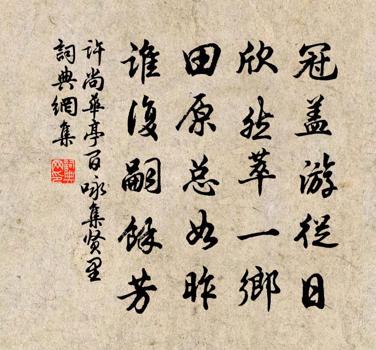 詩詞名句歷史字典書法欣賞書法字典國語詞典說文解字康熙字典古漢語字典標 題 作 者 詩 句 華亭百詠集賢里作者:許尚 朝代:宋代華亭百詠集賢里原文冠蓋游從日,欣然萃一鄉。田原總如昨,誰復嗣余芳。詩詞問答問:華亭百詠集賢里的作者是誰?答:許尚問:華亭百詠集賢里寫於哪個朝代?答:宋代許尚華亭百詠集賢里書法欣賞華亭百詠集賢里書法作品詩詞推薦郊廟歌辭。武后享清廟樂章十首。第五飲福佚名〔唐代〕爰陳玉醴,式奠瓊漿。靈心有穆,介福無疆。上曾安撫二首郭印〔宋代〕萬口爭稱好使君,攜持踴躍看朱輪。入門便灑隨車雨,到處真成有腳春。魚鳥一時生意氣,江山千里有精神。大賢入道詩十九首王慶升〔宋代〕蠅利蝸名是債緣,便須還了聽於天。欠多欠少休貧債,必待豐高又不然。再次武公望雪梅韻五首廖行之〔宋代〕梅邊好與酒杯持,寂寂雅檐短短籬。但有詩人出佳句,絕勝謏墓得金碑。寄丁主簿陳造〔宋代〕江邊聚首偶經旬,自挽園蔬拂甑塵。老檜根株官舍古,涼蟬風露賊曹貧。斑駐去後情無那,紫燕飛還句更新。一舸熊主簿示梅花十絕詩至梅花已過因觀海棠輒次劉克莊〔宋代〕幾樹繁紅映碧灣,薴蘿山下見芳顏。分明消得黃金屋,卻墮荒蹊野徑間。和石明叔喜雪晁補之〔宋代〕解凍南風故未熏,六英先歲無車塵。盡消日觀千岩雪,初破江梅一萼春。立召金閨通籍客,更呼花艷大堤人。使君壽成惠聖慈佑太皇太后閣春帖子衛涇〔宋代〕一德坤元厚,三朝母道尊。含飴供樂事,戲彩見重孫。甲辰閏月初伏快雨涼風晝眠初覺庭前小欄花木蔡襄〔宋代〕閏夏天地熱焰烘,崇朝快雨隨清風。晝軒夢覺開前櫳,畫欄花草意氣雄。側枕遙問數異同,如子微物煩化工。盍各相和歌辭。婕妤怨皇甫冉〔唐代〕由來詠團扇,今與值秋風。事逐時皆往,恩無日再中。早鴻聞上苑,寒露下深宮。顏色年年謝,相如賦豈工。夏日登觀農樓和崔使君皎然〔唐代〕片雨拂檐楹,煩襟四坐清。霏微過麥隴,蕭散傍莎城。靜愛和花落,幽聞入竹聲。朝觀趣無限,高詠寄深情。謫袁州寄子美張群〔宋代〕去年醉到江花老,憂患相寬獨與君。今日天涯又春色,卻尋高處望吳雲。青紅染出化成寺,羅縠翻開秀水紋。風物送祖山人歸山劉得仁〔唐代〕獨來朝市笑浮雲,卻憶煙霞出帝城。不說金丹能點化,空教弟子學長生。壺中瀉酒看雲影,洞裡逢師下鶴迎。料得採桑子佚名〔宋代〕江南春信梅先賦,休道春遲。映竹開時。姑射仙人雪作肌。青樓且莫吹羌管,留勸金卮。折取高枝。香滿名園蝶未次韻太學宋學正遐叔考試小疾見寄晁補之〔宋代〕蕭然如裴叔則,頰毛疏復長。邈然如王夷甫,高致宜廟廊。功名四皓雲泉外,詩賦三閭草木香。君莫夸熙寧登科面贈別項斯〔唐代〕魚在深泉鳥在雲,從來只得影相親。他時縱有逢君處,應作人間白髮身。清遠峽四首楊萬里〔宋代〕峽水都是泉,非雨元自足。不知幾滴珠,成此一川玉。旁將山染翠,仰為天寫綠。何當雪月夜,孤艇葦間宿。講稿公妓飲問政堂有誚予不來者借韻呈司戶同虞儔〔宋代〕孤游冷宦嘆徒然,安得通神十萬錢。南北阮家何似富,東西施子廻爭妍。歌筵憐我應無分,詩債憂君苦太煎。卻憶介之推不言祿左丘明〔先秦〕晉侯賞從亡者,介之推不言祿,祿亦弗及。 推曰:“獻公之子九人,唯君在矣。惠、懷無親,外內棄之。天未四言贈兄秀才入軍詩 其十嵇康〔兩漢〕攜我好仇。載我輕車。南凌長阜。北厲清渠。仰落驚鴻。俯引淵魚。盤於游田。其樂只且。名句推薦浮生長恨歡娛少。宋祁《玉樓春·春景》 夢斷刀頭,書開蠆尾,別有相思隨定。史達祖《齊天樂·中秋宿真定驛》 細雨春蕪上林苑,頹垣夜月洛陽宮。陸游《書憤五首·其二》 懷君屬秋夜,散步詠涼天。韋應物《秋夜寄邱員外 / 秋夜寄丘二十二員外》 人怕三見面,樹怕一墨線。佚名《增廣賢文·下集》 紅豆不堪看,滿眼相思淚。牛希濟《生查子·新月曲如眉》 頭醋不釅徹底薄。施耐庵《水滸傳·第五十一回》 日日雨不斷,愁殺望山人。賈島《望山》 休問梁園舊賓客,茂陵秋雨病相如。李商隱《寄令狐郎中》 不見穿針婦,空懷故國樓。孟浩然《他鄉七夕》