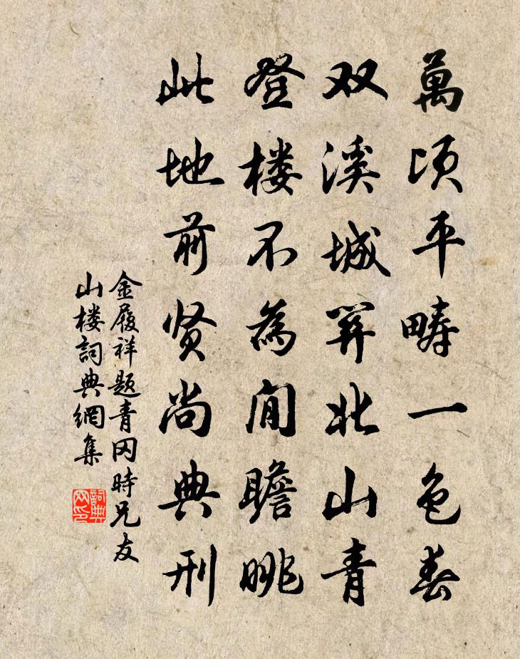 詩詞名句歷史字典書法欣賞書法字典國語詞典說文解字康熙字典古漢語字典標 題 作 者 詩 句 題青岡時兄友山樓作者:金履祥 朝代:宋代題青岡時兄友山樓原文萬頃平疇一色春,雙溪城關北山青。登樓不為閒瞻眺,此地前賢尚典刑。詩詞問答問:題青岡時兄友山樓的作者是誰?答:金履祥問:題青岡時兄友山樓寫於哪個朝代?答:宋代金履祥題青岡時兄友山樓書法欣賞題青岡時兄友山樓書法作品詩詞推薦奉送范司空赴朔方(得游字)呂溫〔唐代〕築壇登上將,膝席委前籌。虜滅南侵跡,朝分北顧憂。抗旌回廣漠,撫劍動旄頭。坐見黃雲暮,行看白草秋。山橫春晚往永和楊萬里〔宋代〕眷事巳如許,山居殊未知。綠光風度麥,白碎日翻池。景好懷翻惡,人嬉我獨悲。郊行聊著眼,興到漫成詩。雜詠八首上禮部李侍郎白鷺劉長卿〔唐代〕亭亭常獨立,川上時延頸。秋水寒白毛,夕陽吊孤影。幽姿閒自媚,逸翮思一騁。如有長風吹,青雲在俄頃。池上曲釋斯植〔宋代〕曉雨生池荷,圓珠漾新綠。入手不成珠,空歌彩蓮曲。次韻沈長官三首蘇軾〔宋代〕家山何在兩忘歸,杯酒相逢慎勿違。不獨飯山嘲我瘦,也應糠核怪君肥。男婚已畢女將歸,累盡身輕志莫違。聞道次韻子瞻和淵明飲酒二十首蘇轍〔宋代〕清秋九日近,菊酒皆可得。永愧陶翁飢,雖飢心不惑。懷忠受正命,賦命本通塞。斯人今苟在,可與同事國。惜哉雜劇·凍蘇秦衣錦還鄉佚名〔元代〕楔子(沖末扮孛老同搽旦、卜兒、淨蘇大、大旦、二旦上)(孛老雲)錢會說話,米會搖擺。無米無錢,失光落彩和同年張唐英懷弟晉英韻二首袁說友〔宋代〕舊學知何補,丹心早已平。過從欣故侶,慨慕熟英聲。笑洽愁腸釋,詩來俗眼清。君家好兄弟,何愧洛中程。鷓鴣天周紫芝〔宋代〕讀盡牙籤玉軸書。不知門外有園蔬。借令未解鑾坡去,也合讎書在石渠。微雨後,小寒初。滿斟長壽碧琳腴。不須藏春峽老圃亭楊時〔宋代〕昔君居隱鱗,投竿拂珊瑚。今來寓谷口,結亭事春鋤。亭下十餘畦,蔚蔚富嘉蔬。野果銜朱蕤,蔓實垂青桴。籬根送安學士守睦州釋惠崇〔宋代〕白浪滿遙程,公衙□□聲。海帆通夜市,山雨遍春耕。古意隨琴遠,離愁對酒輕。三吳窺列宿,知傍隼旟明。朝中措李之儀〔宋代〕臘窮天際傍危欄。密雪舞初殘。表里江山如畫,分明不似人間。功名何在,文章漫與,空嘆流年。獨恨歸來已晚,紹興以後時享二十五首真宗〔宋代〕於皇濬哲,遹駿有聲。率時歸考,丕在位刑。功光大業,道協三靈。永綏厥後,來燕來寧。惜分飛(柳絮)劉學箕〔宋代〕池上樓台堤上路。盡日悠揚飛舞。欲下還重舉。又隨胡蝶牆東去。糝徑飄空無定處。來往綠窗朱戶。卻被春風妒。驀山溪(送蔡元長)李元膺〔宋代〕溪堂歡燕。慣捧玻璃盞。今日祖西城,更忍把、一杯重勸。別離情味,自古不堪秋,催淚雨,濕西風,腸共危弦斷河傳·春淺納蘭性德〔清代〕春淺,紅怨。掩雙環,微雨花間。畫閒,無言暗將紅淚彈。闌珊,香銷輕夢還。斜倚畫屏思往事。皆不是,空作相和浙東童倉使建昌家圃梅花玉雪亭詩三首宋伯仁〔宋代〕要識生涯便有涯,暗香叢裹作人家。紛紛紅紫休相角,別是春曲一樣花。夜池元稹〔唐代〕荷葉團圓莖削削,綠萍面上紅衣落。滿池明月思啼螿,高屋無人風張幕。將入關安陸遇兵寇杜荀鶴〔唐代〕家貧無計早離家,離得家來蹇滯多。已是數程行雨雪,更堪中路阻兵戈。幾州戶口看成血,一旦天心卻許和。四面送奚宰二首陸埈〔宋代〕失學兒俱懶,師資點化開。砭針瘳痼疾,膏馥起枯荄。授□方知緒,從游奈溯洄。武城門下士,應許廁澹臺。名句推薦天明登前途,獨與老翁別。杜甫《石壕吏》 最是繁絲搖落後,轉教人憶春山。納蘭性德《臨江仙·寒柳》 我見君來,頓覺吾廬,溪山美哉。辛棄疾《沁園春·和吳尉子似》 舉善從諫,在上之明規; 進賢謁言,為臣之令范。姚思廉《陳書·本紀·卷五》 安得千尋橫鐵鎖,截斷煙津。陸游《浪淘沙·丹陽浮玉亭席上作》 悲吟雨雪動林木,放書輟劍思高堂。李白《留別於十一兄逖裴十三游塞垣》 金井梧桐秋葉黃,珠簾不捲夜來霜。王昌齡《長信怨》 人生不相見,動如參與商。杜甫《贈衛八處士》 烏啼隱楊花,君醉留妾家。李白《楊叛兒》 如今但暮雨,蜂愁蝶恨,小窗閒對芭蕉展。呂渭老《薄倖·青樓春晚》