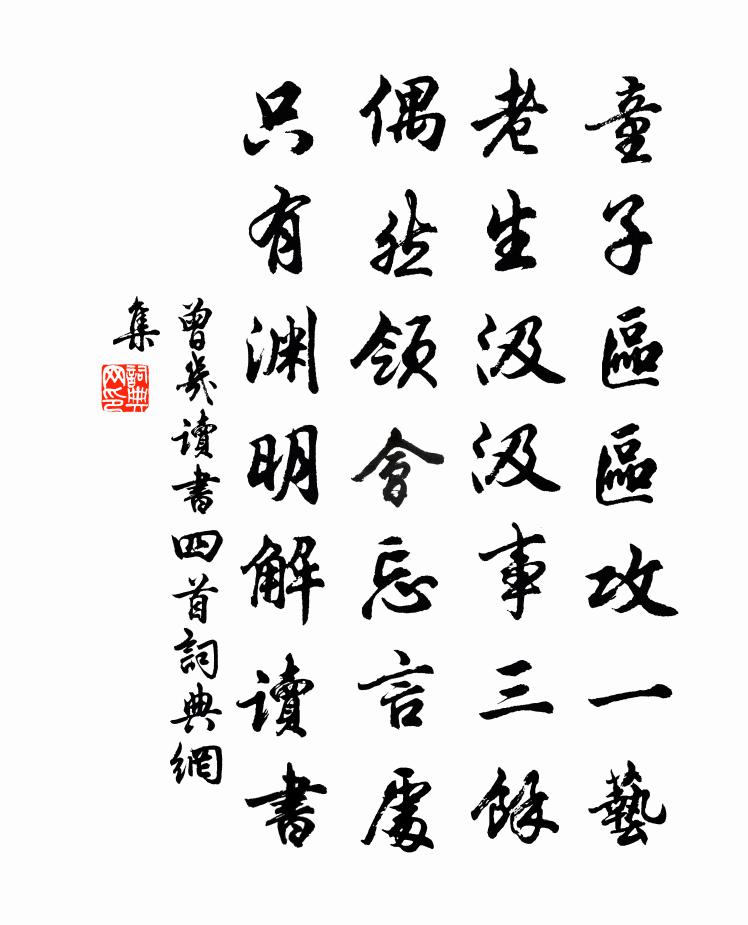 童子區區攻一藝,老生汲汲事三餘。偶然領會忘言處,只有淵明解讀書。
